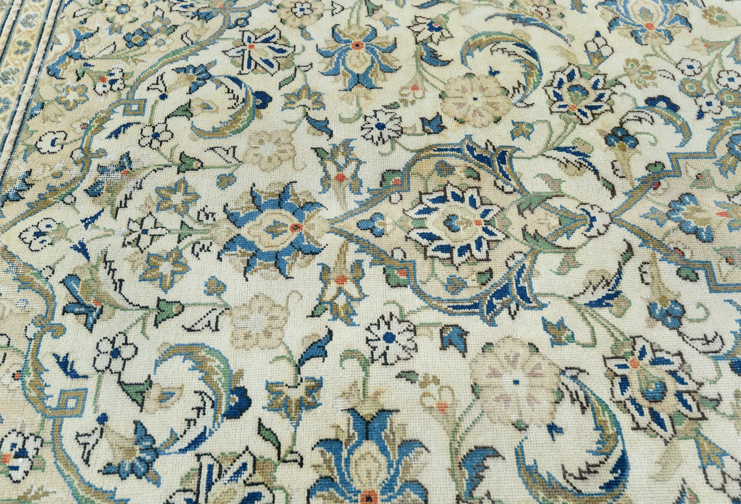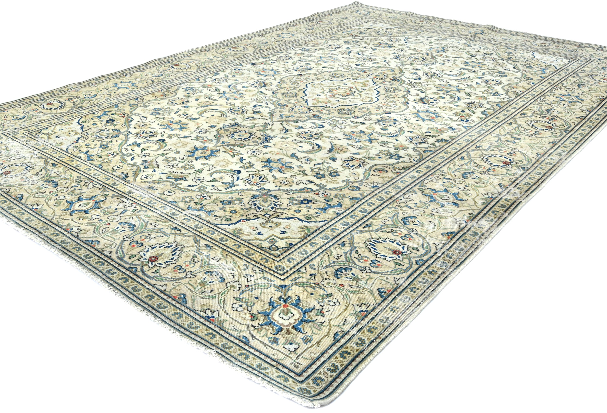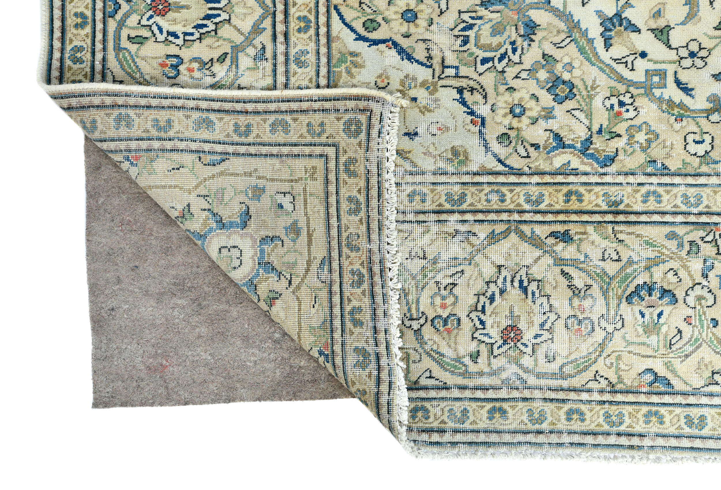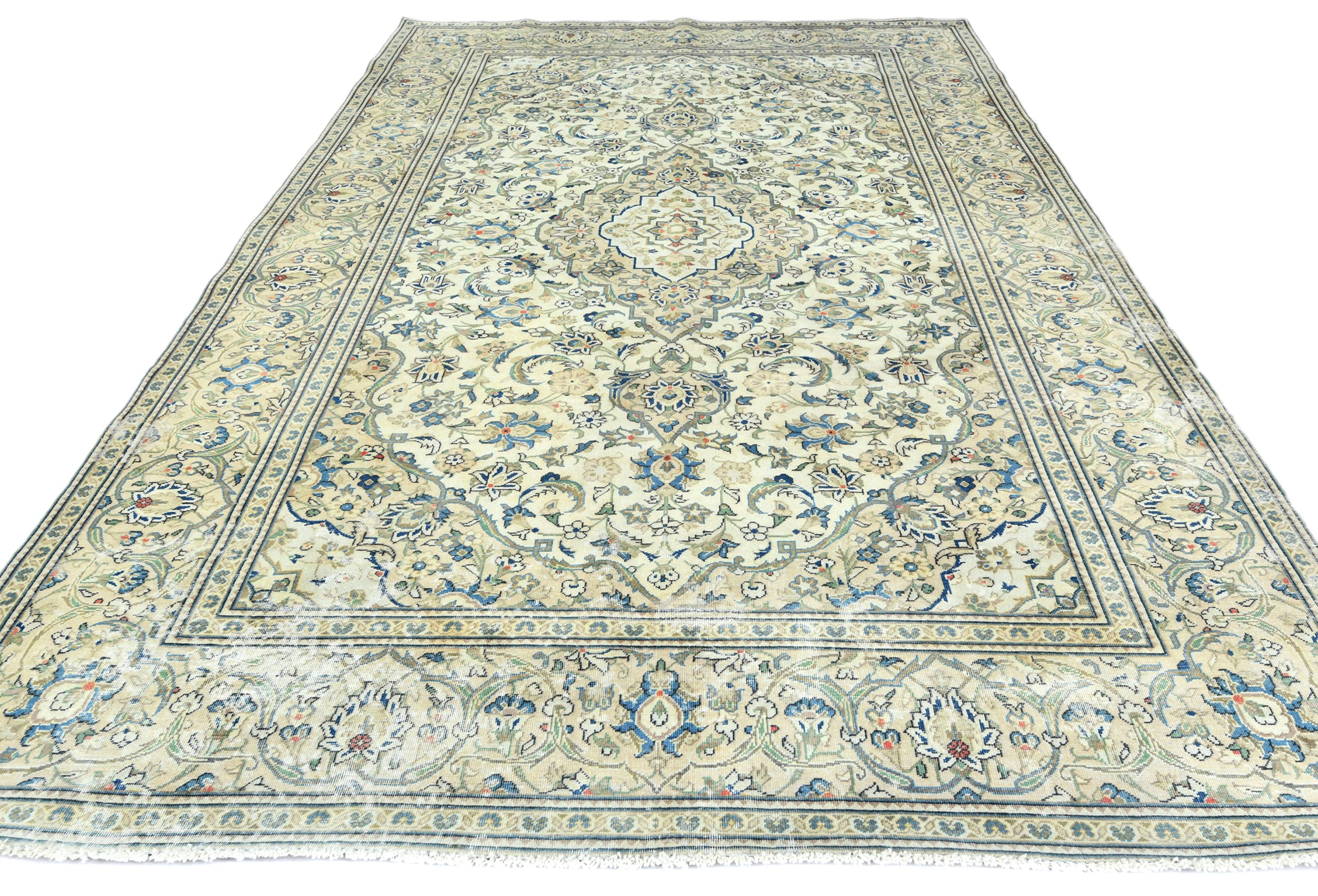 Antique Muted Cream Floral 6'5X9'7 Distressed Vintage Oriental Rug