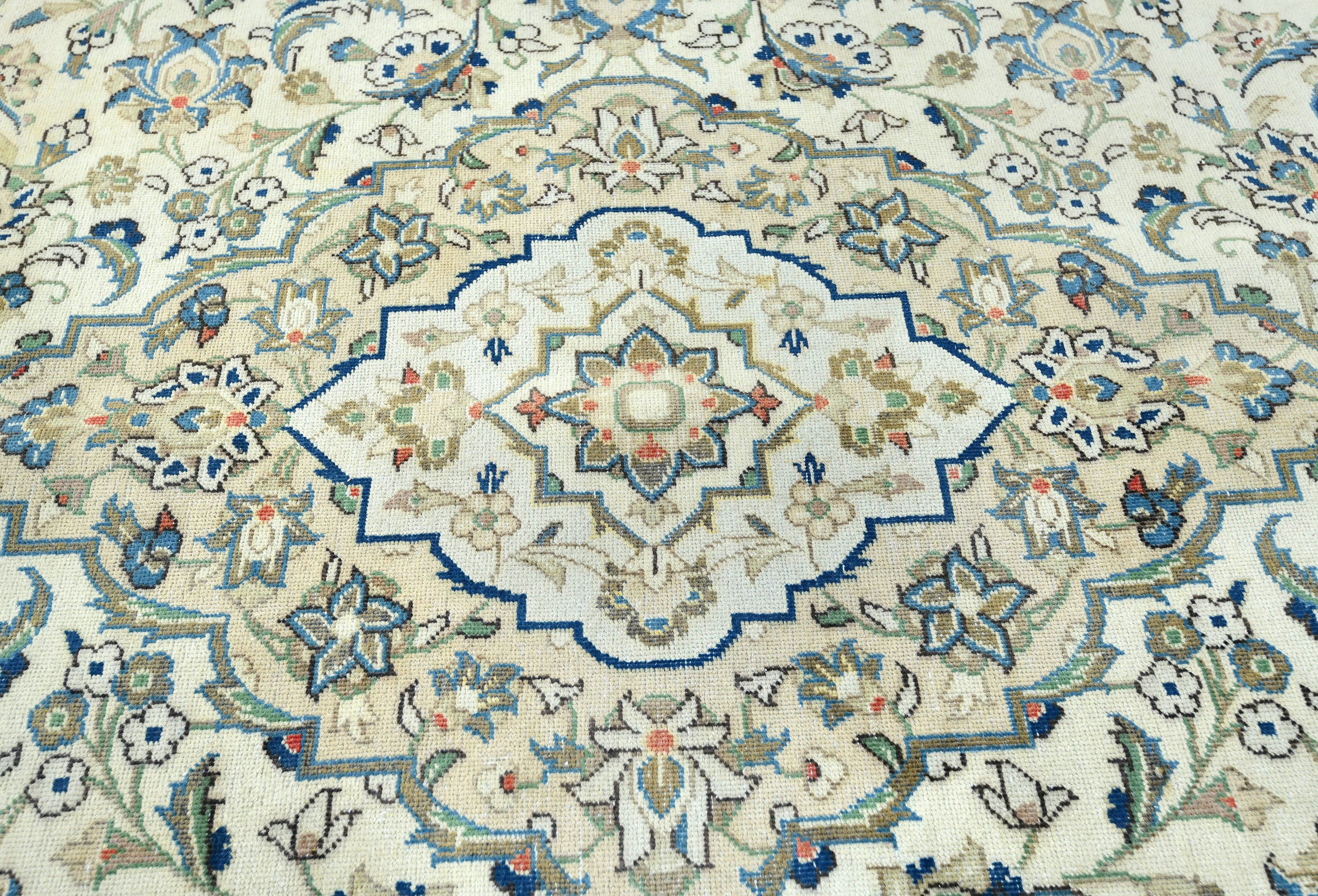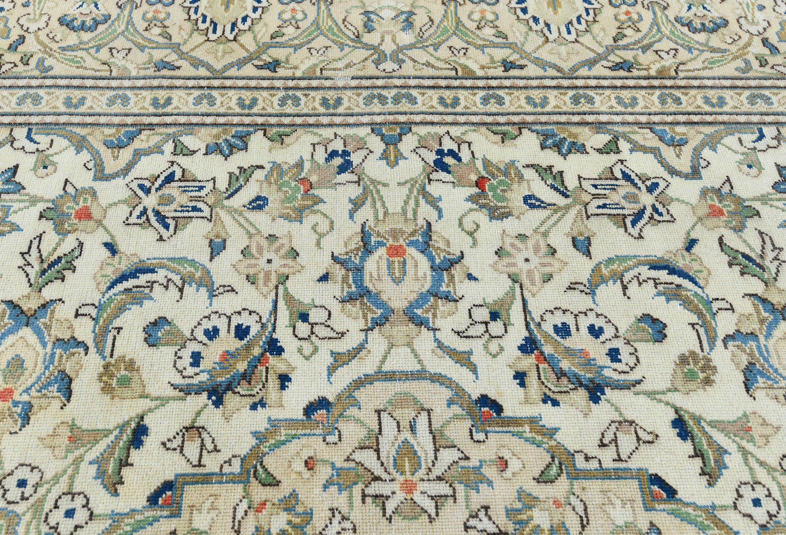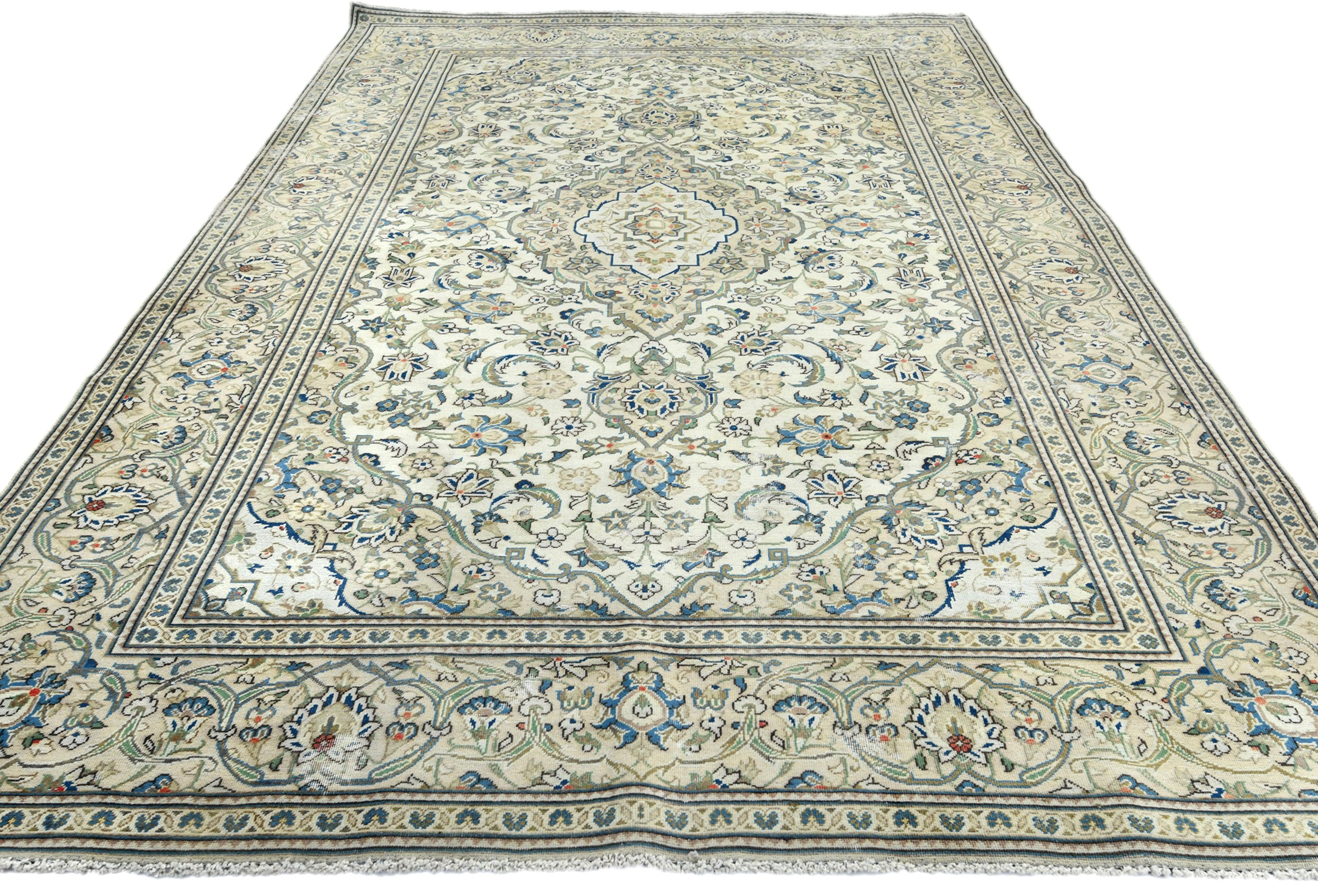 Hand Knotted 6'5X9'7 cream oriental rug made with vegetable dyes (fine wool pile and cotton foundation), superior knot count, and appealing ancient designs. This Oriental rug never will go out of style and would be among your most valuable treasures. RT-6301