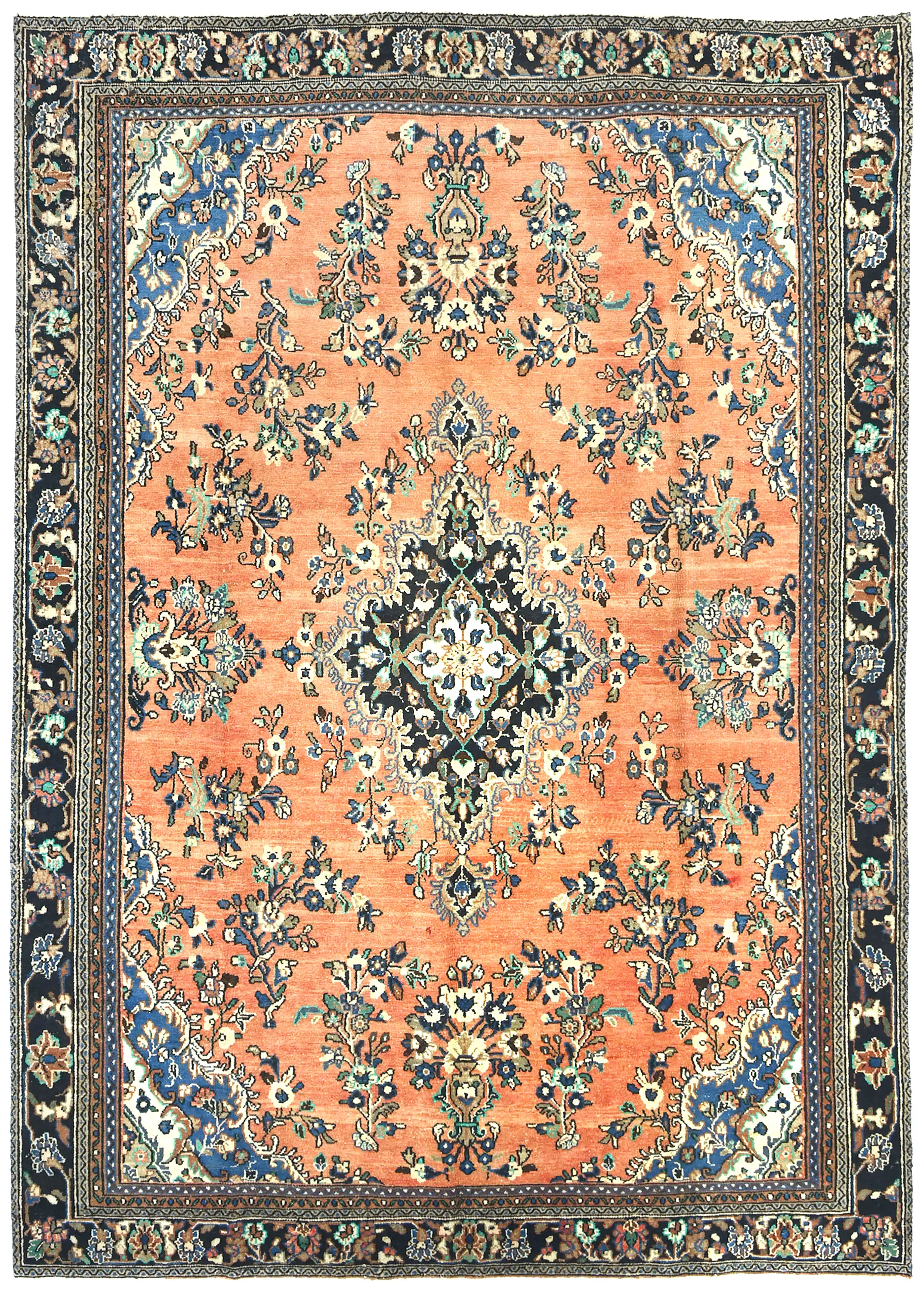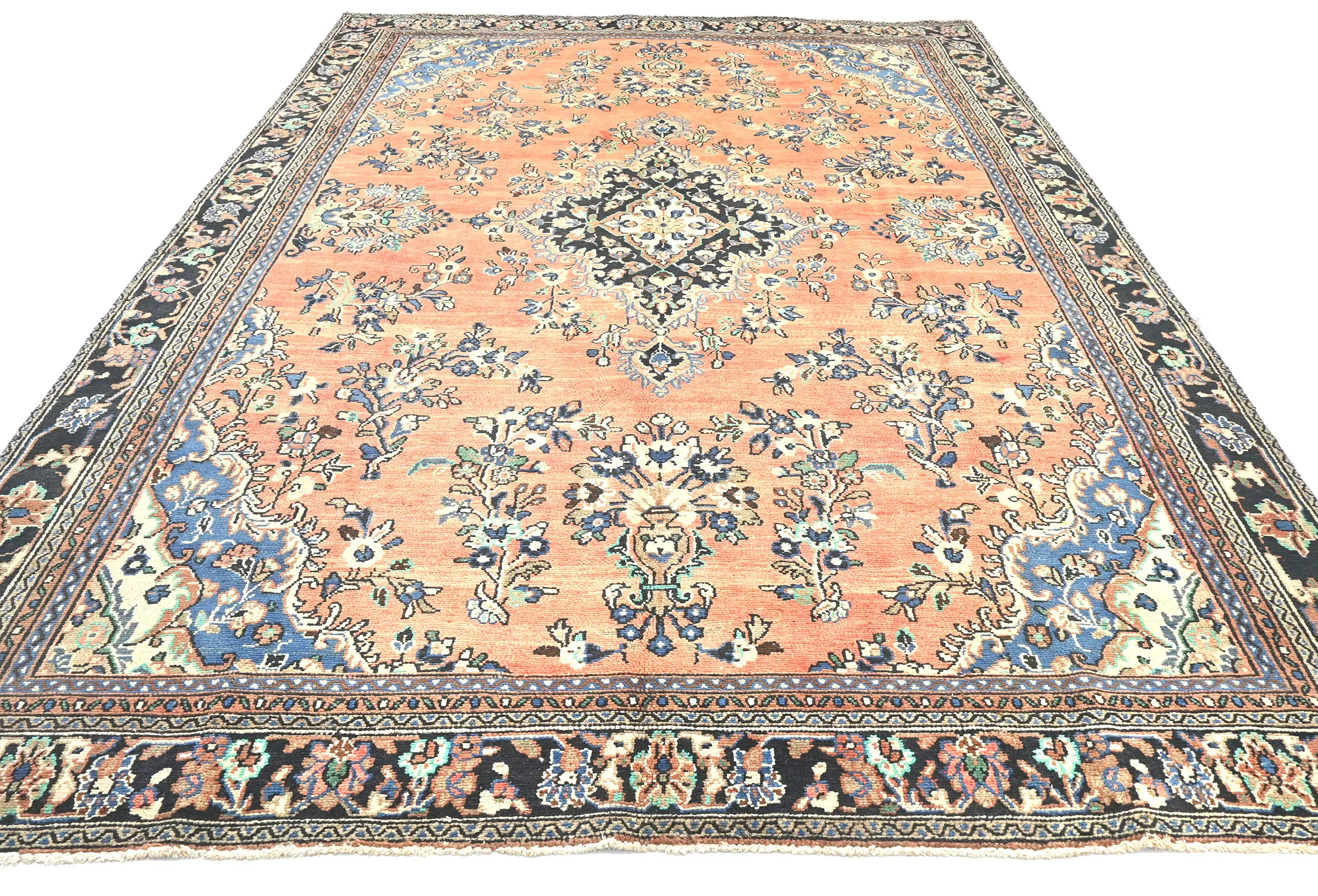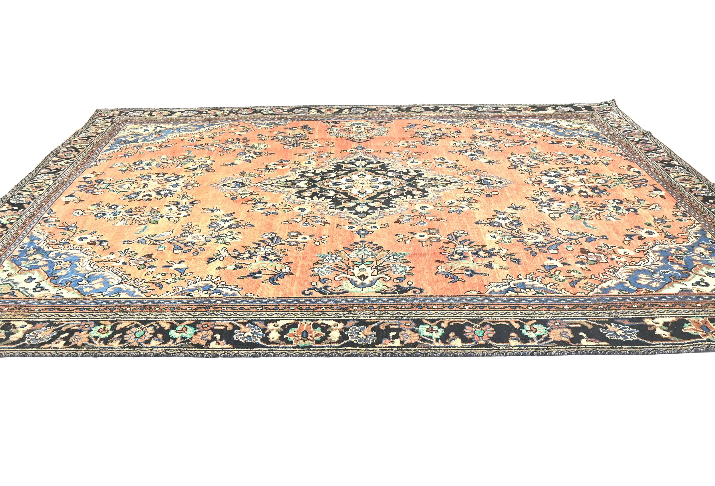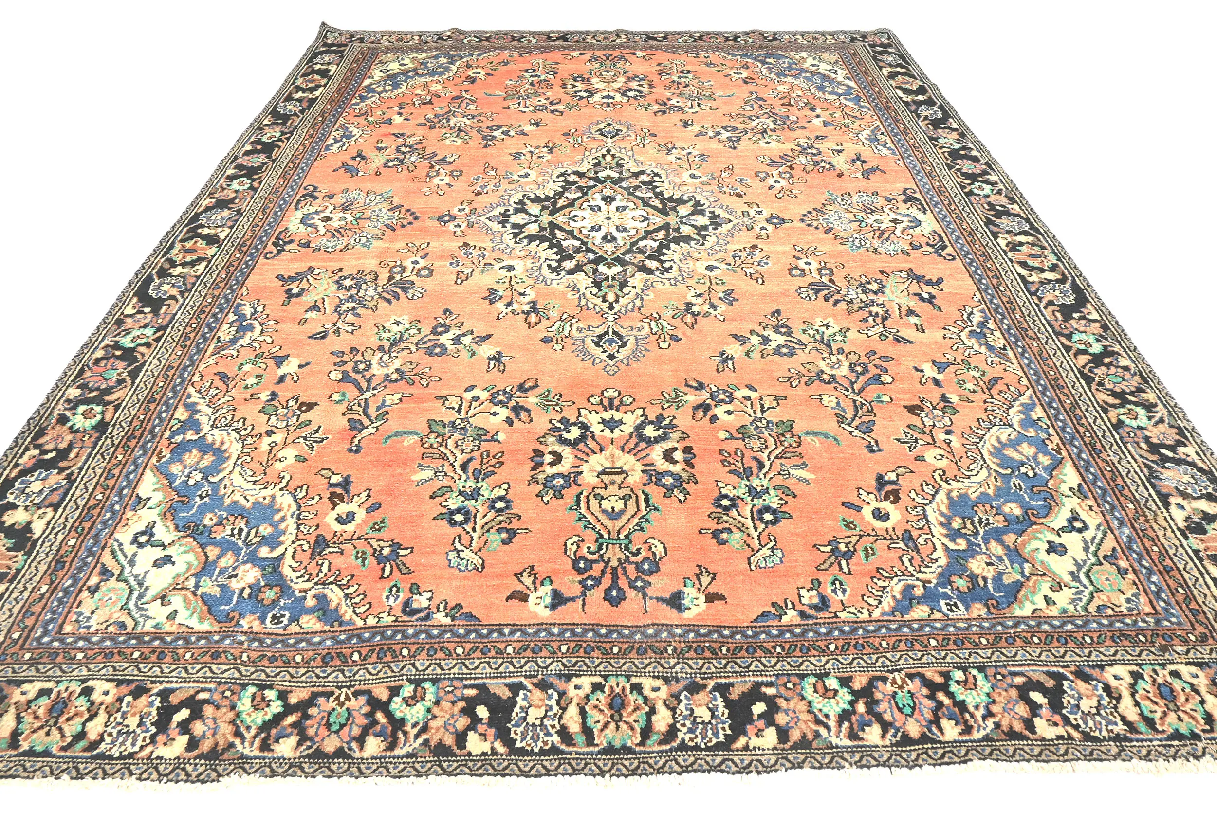This authentic 8X11 Light Salmon vintage Oriental rug was finely knotted by the hands of weavers influenced by a variety of amazing artistic designs, to recreate the aged look of the exceptional piece with a richness of color and embellished floral background field. What set this traditional Oriental area rug from the others are the material and dye used (wool pile and cotton foundation), knot count, antique designs, fantastic grades, and its regional historical connection: it has deep roots, from the story of the people who produced it to the meaning of the symbols and colors displayed across its canvas that have been praised for centuries. This classic home décor carpet will be completely cozy and inviting that never will go out of style! Also, this Oriental rug would be among your most valuable treasures, it is a great investment that increase in value over time, and it will last a lifetime because was woven with high-quality, all-natural wool; it won’t rip, tear, or shed. Eco-friendly, opulent yet affordable; this Persian rug will give you an extra pop of character to help define your home environment with luxury and warmth that will capture the eyes and attention of your audience (homeowners, designers, decorators, family and friends). RT-6875