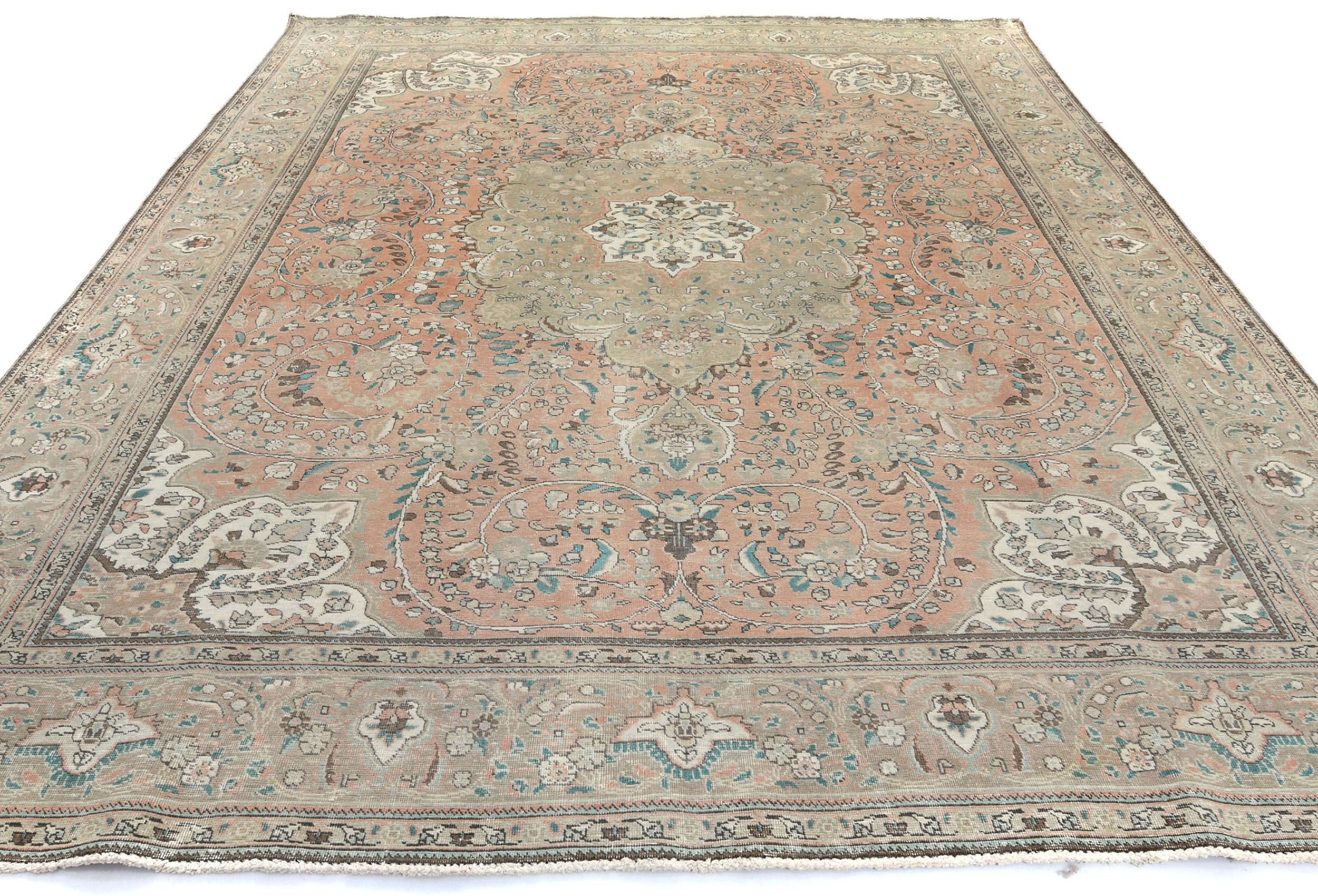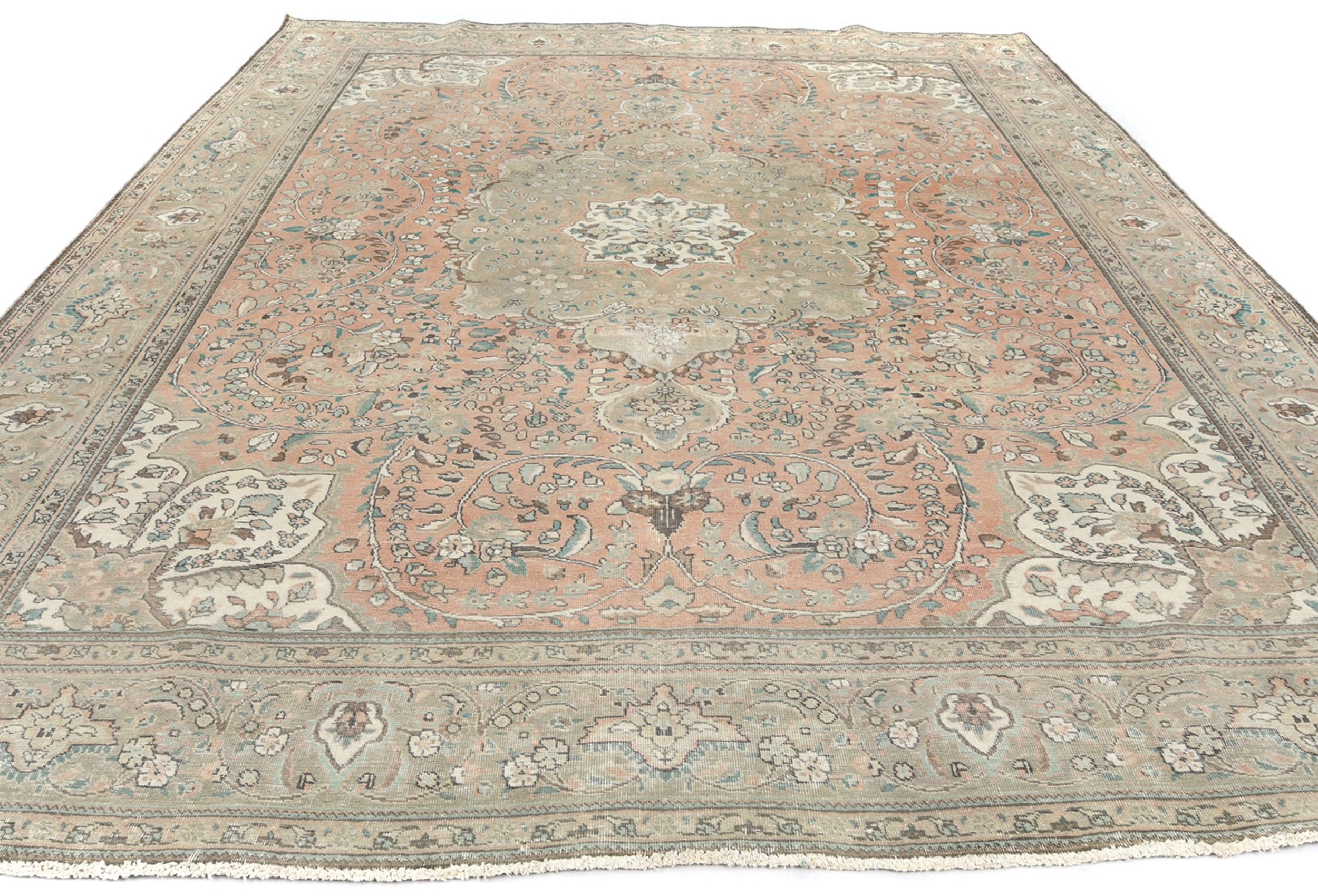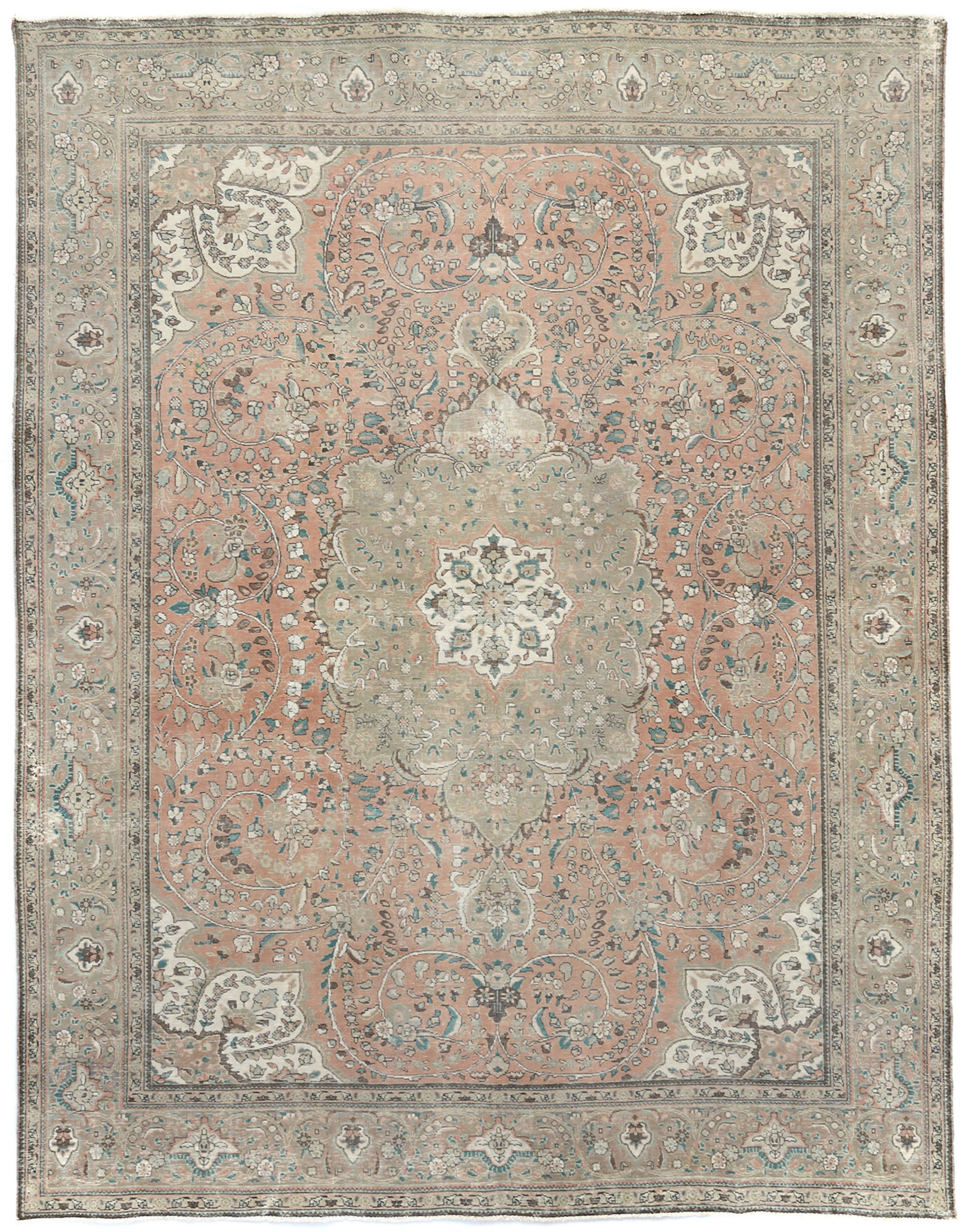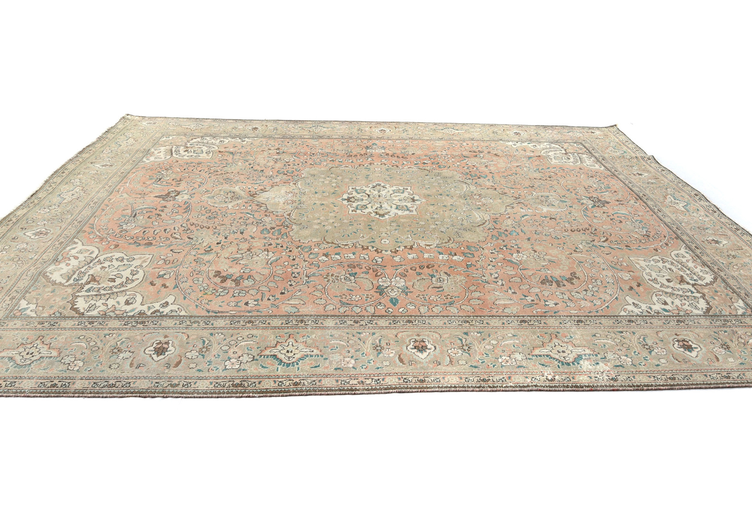 Antique Muted Floral 9'9X12'5 Distressed Vintage Oriental Rug