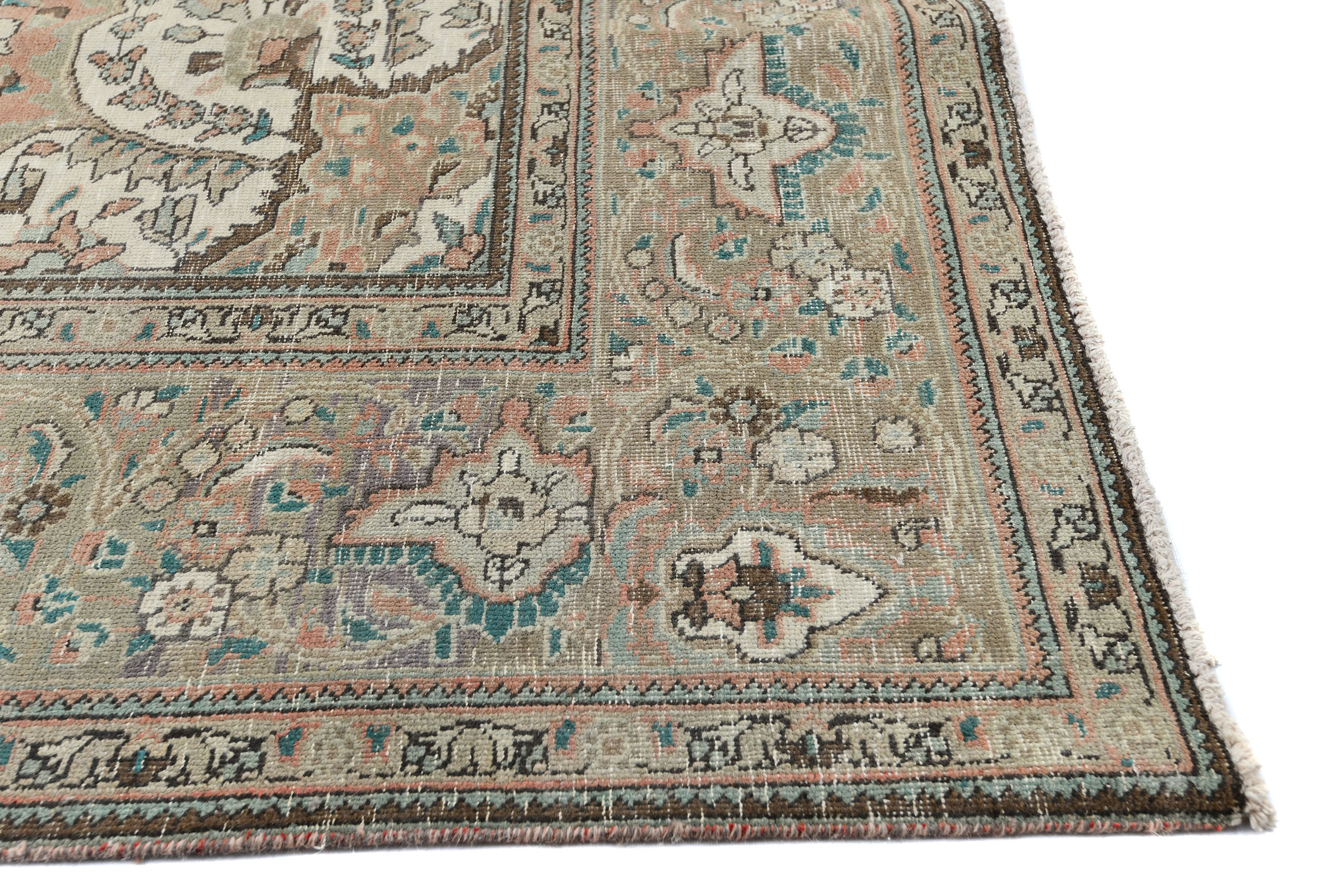 This authentic new 9'9X12'5 beige Oriental rug was crafted by the hands of skilled weavers enthused by a variety of lovely artistic designs, to recreate the aged look of the unique piece with a richness of color and beautifully elaborated background field. What set this vintage style Oriental area rug from the others are the material and dye used (wool pile and cotton foundation), knot count, ancient designs, fantastic grades, and its regional historical connection: it has deep roots, from the story of the people who produced it to the meaning of the symbols and colors displayed across its canvas that have been praised for centuries. This Indian home décor carpet will be completely cozy and inviting that never will go out of style!