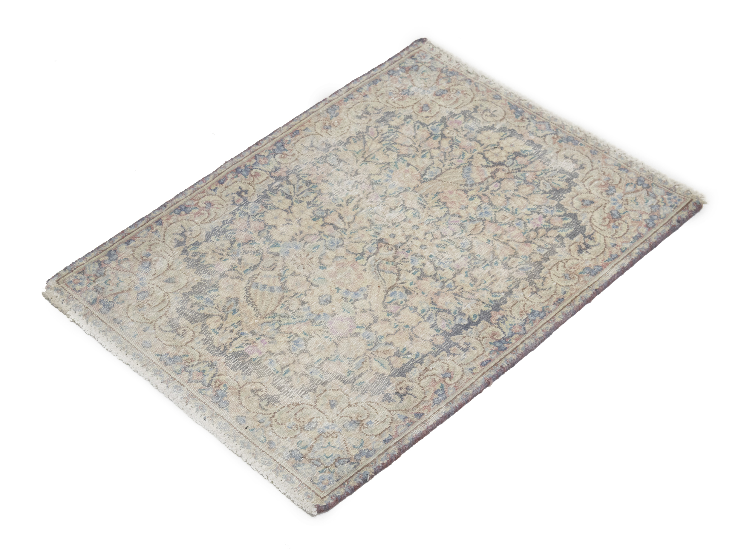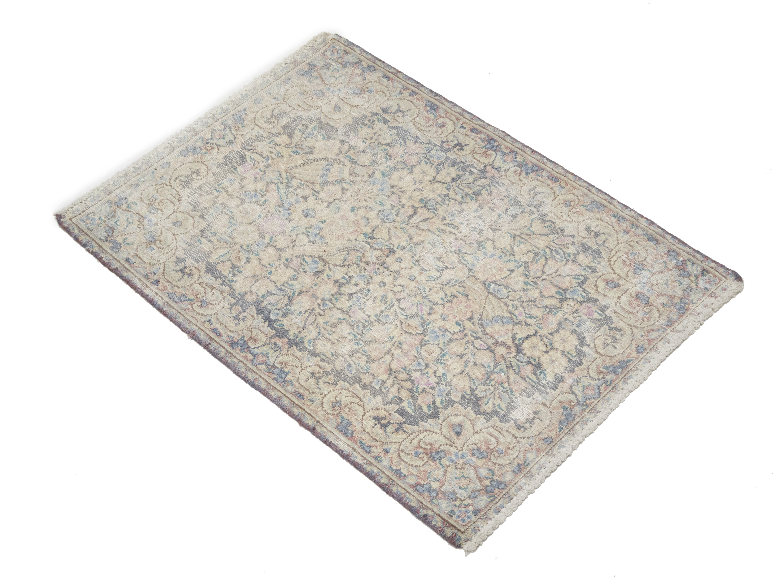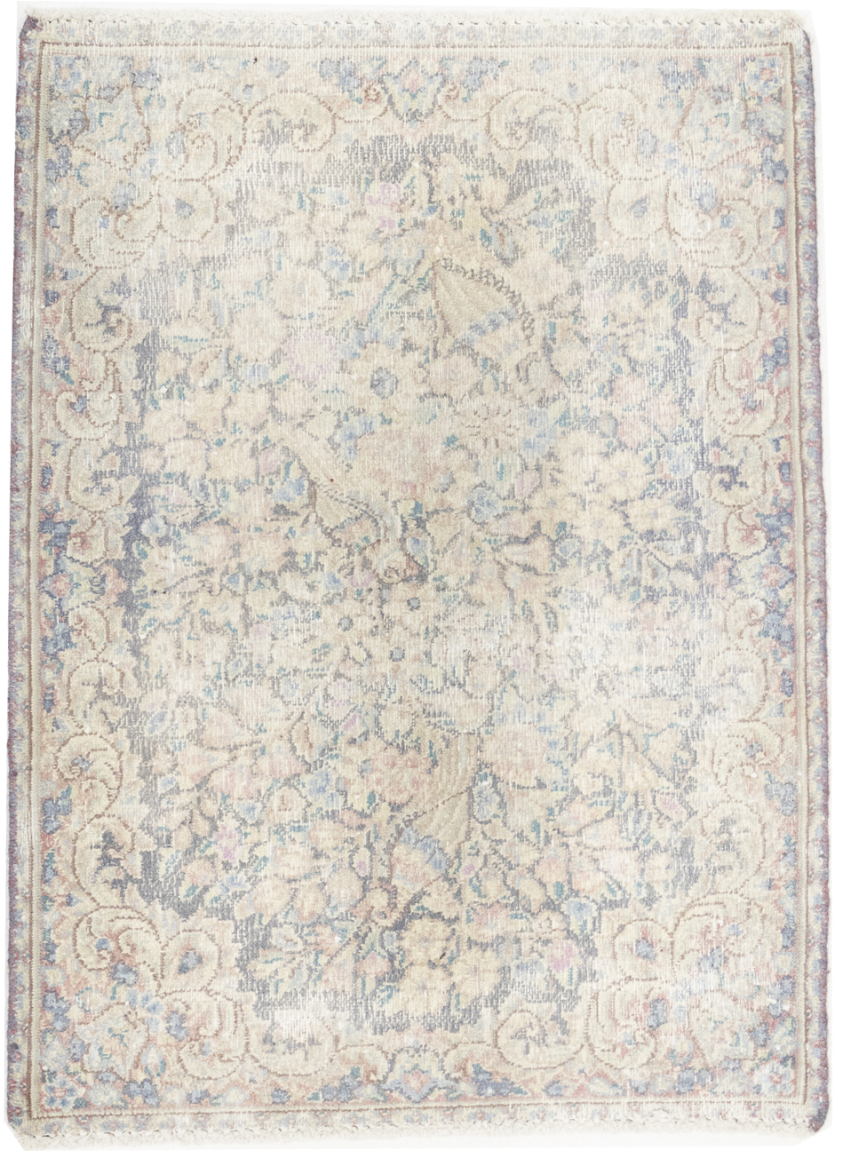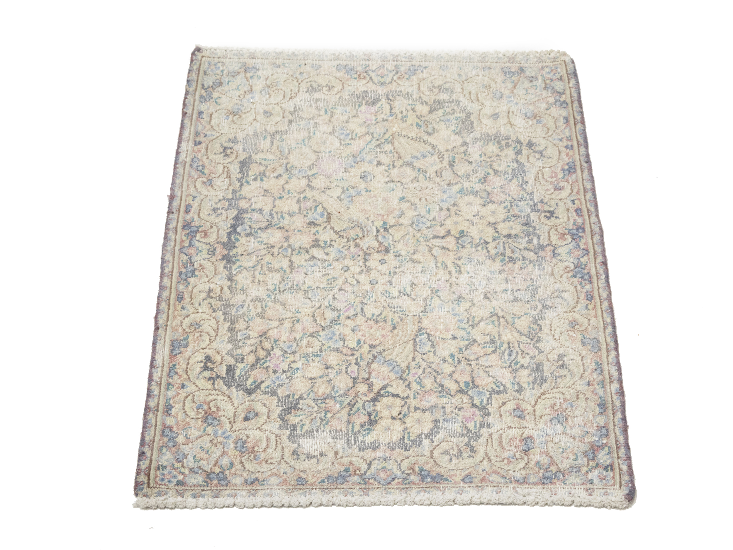 Antique Muted Gray Floral 1'9X2'4 Distressed Vintage Oriental Rug