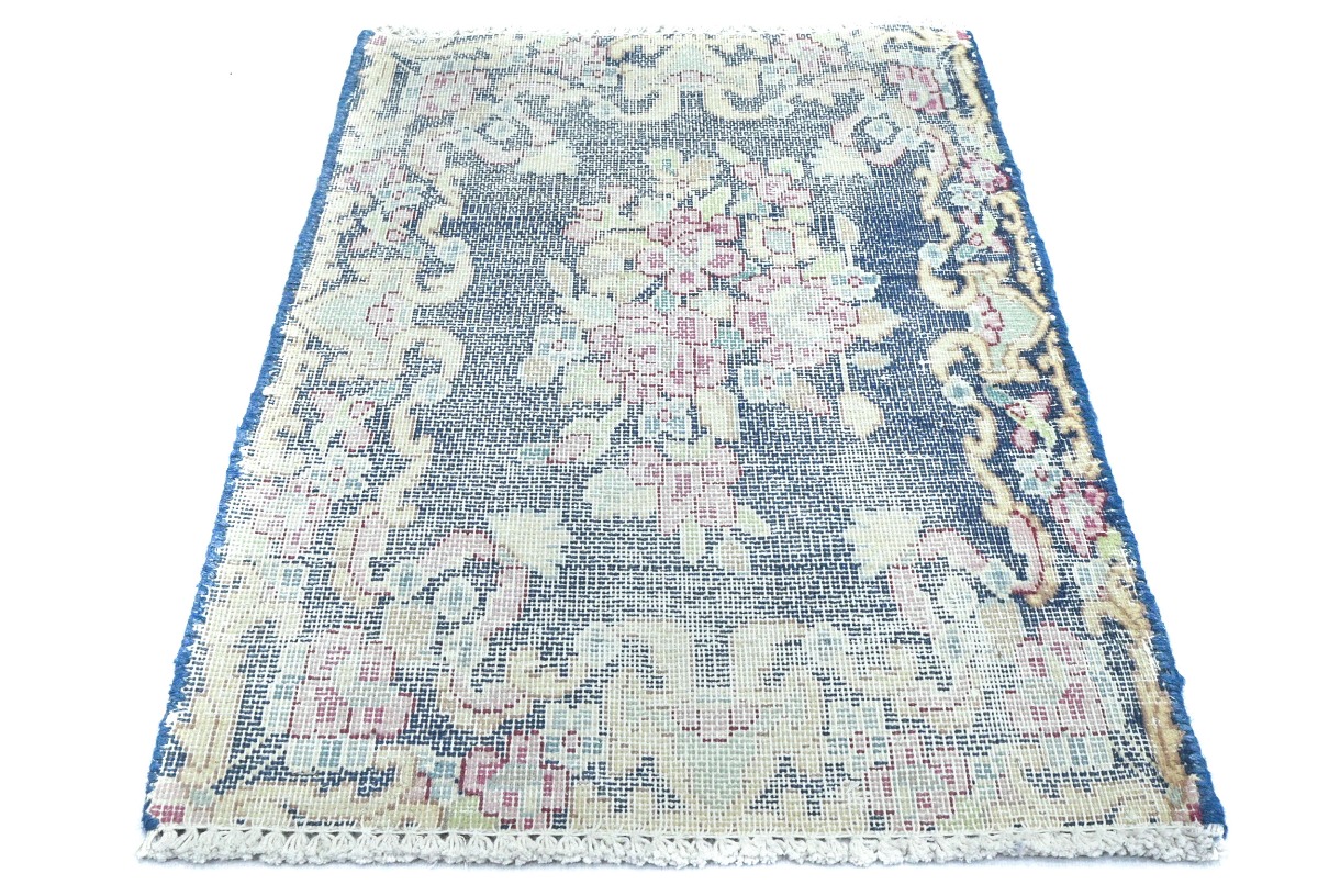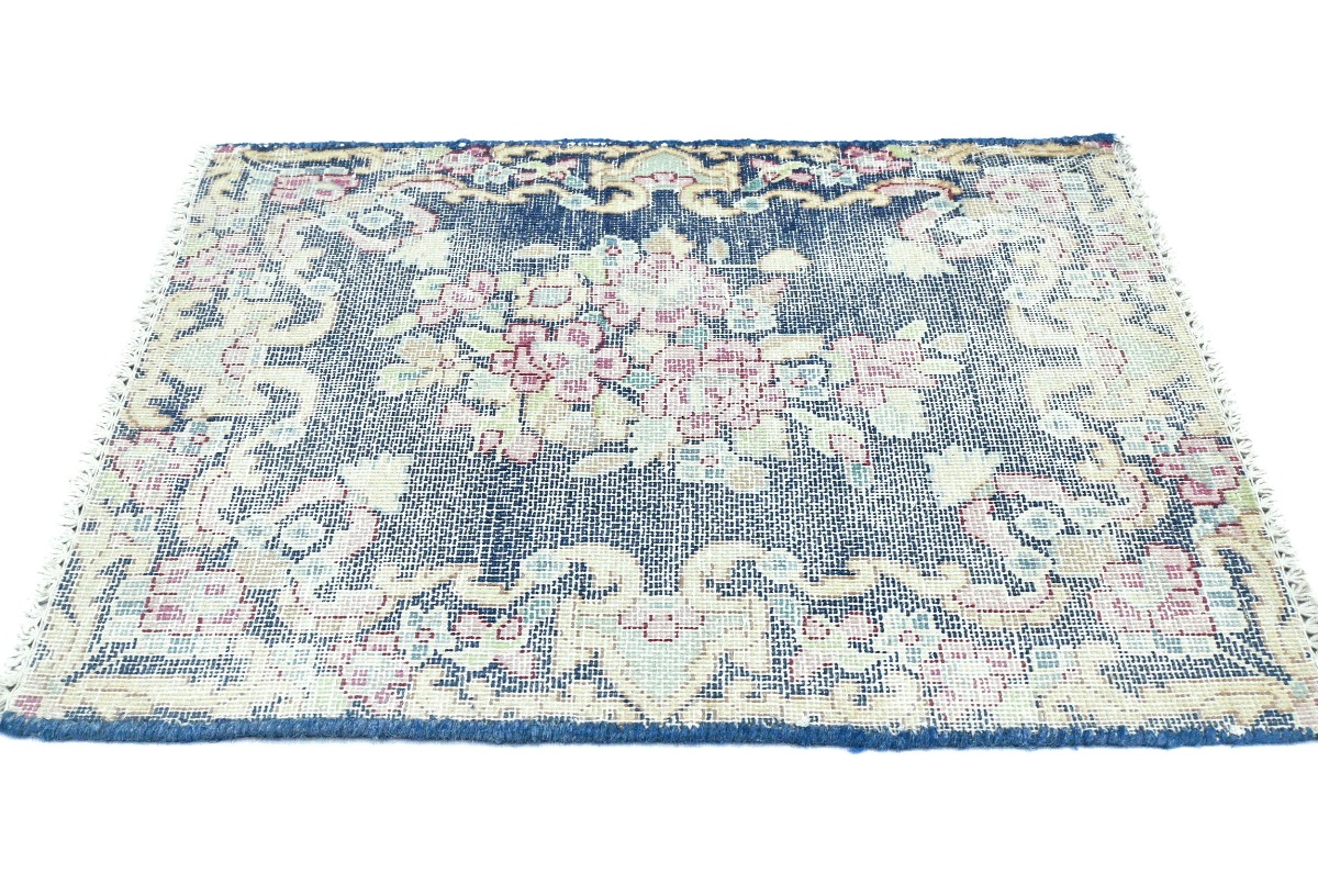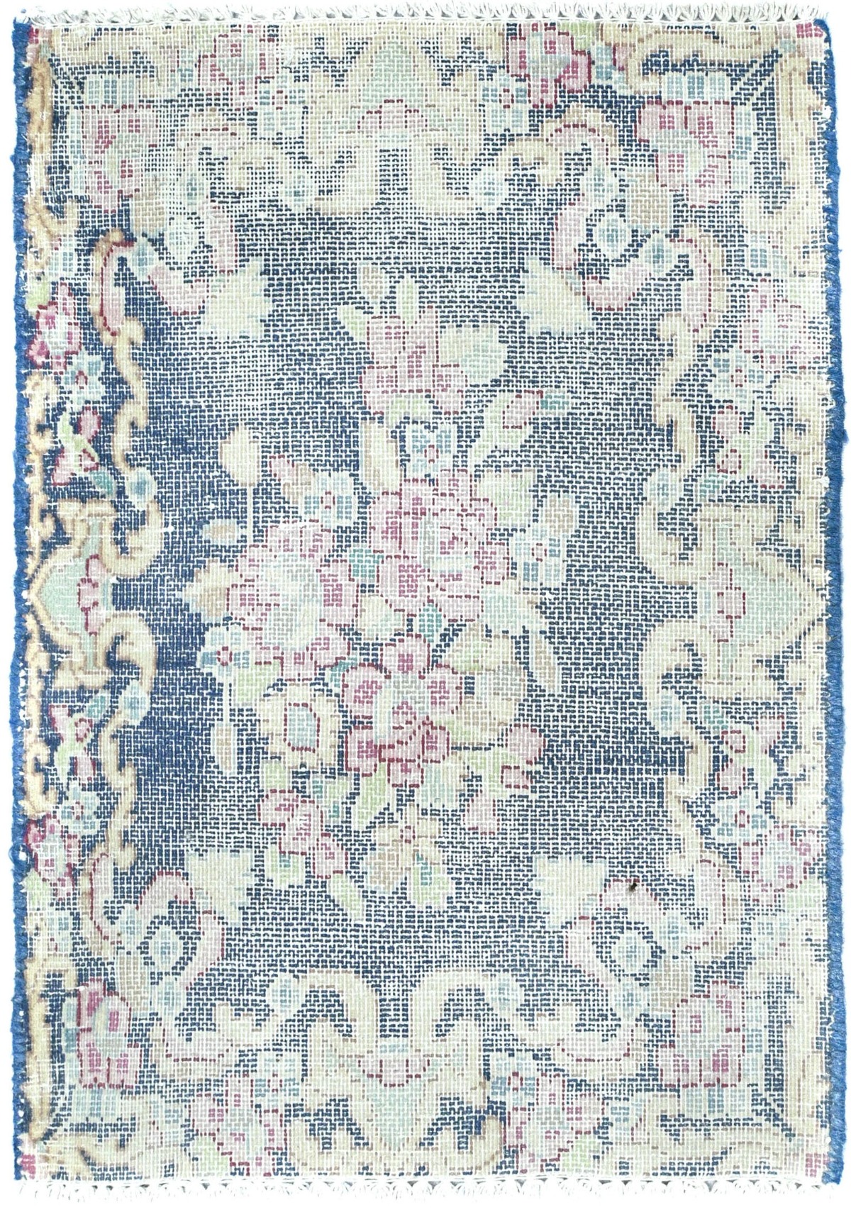 Antique Muted Navy Floral 1'5X2 Distressed Vintage Oriental Rug