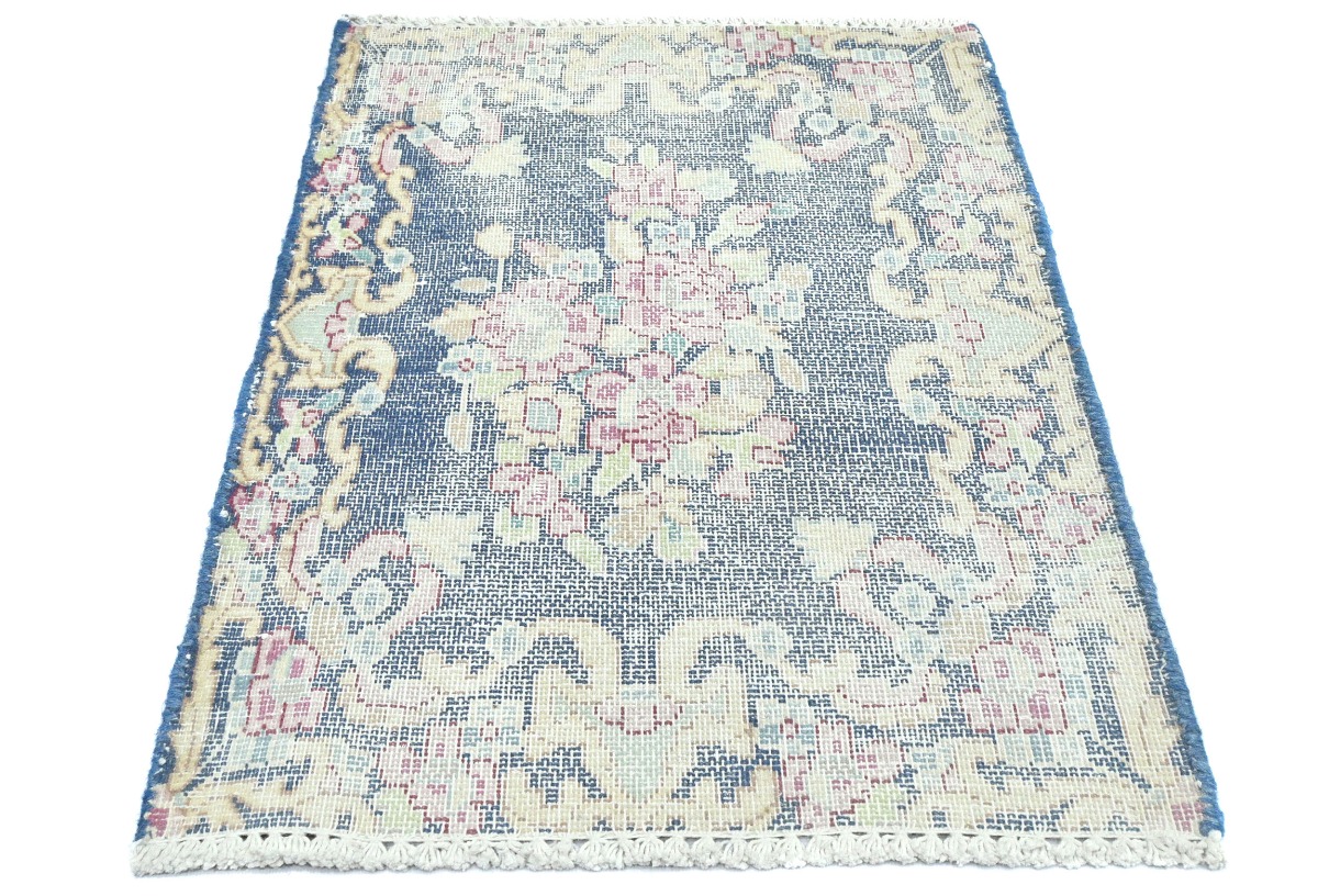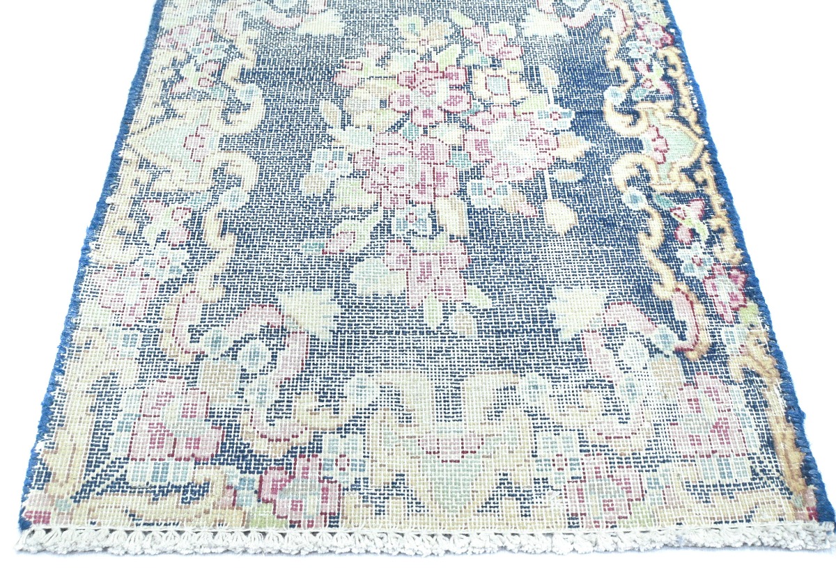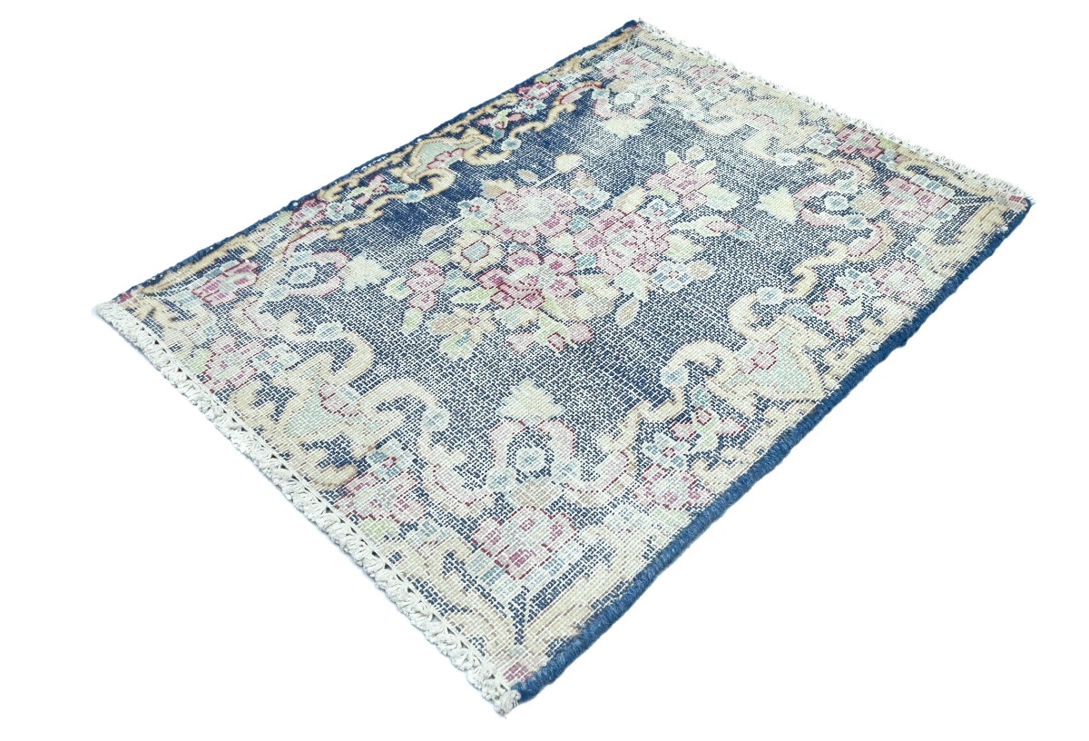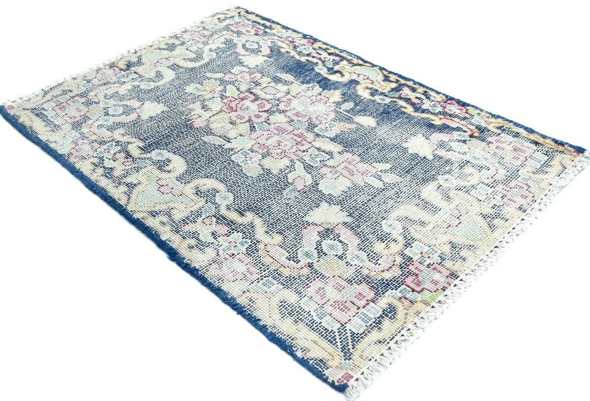 Antique Muted Navy Floral 1'5X2 Distressed Vintage Oriental Rug