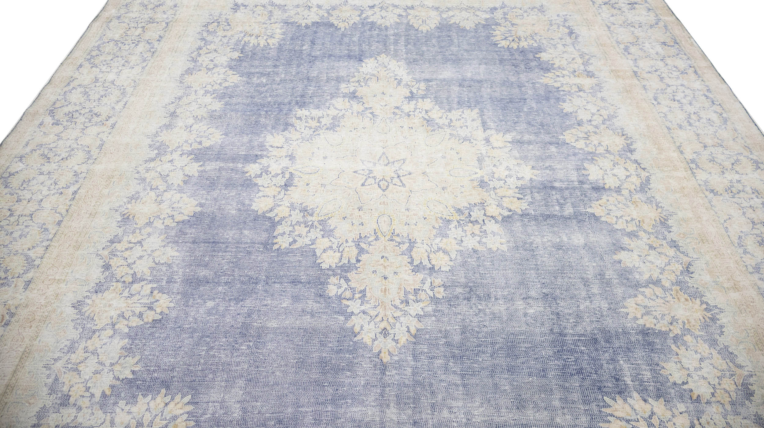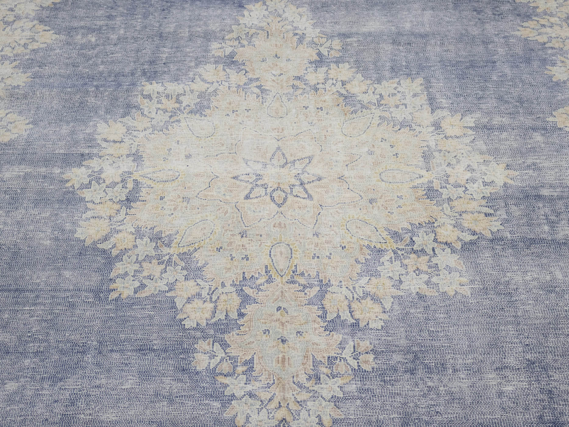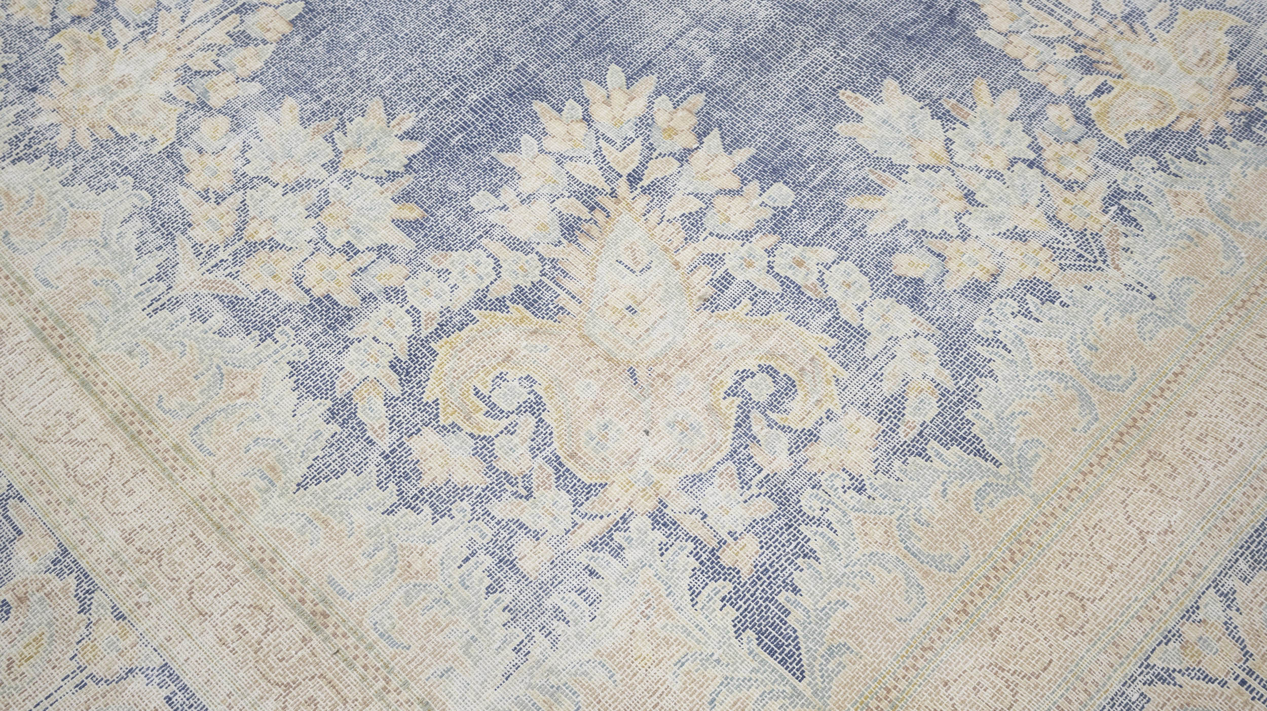 Antique Muted Navy Floral 10X13 Distressed Vintage Oriental Rug