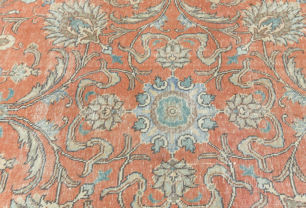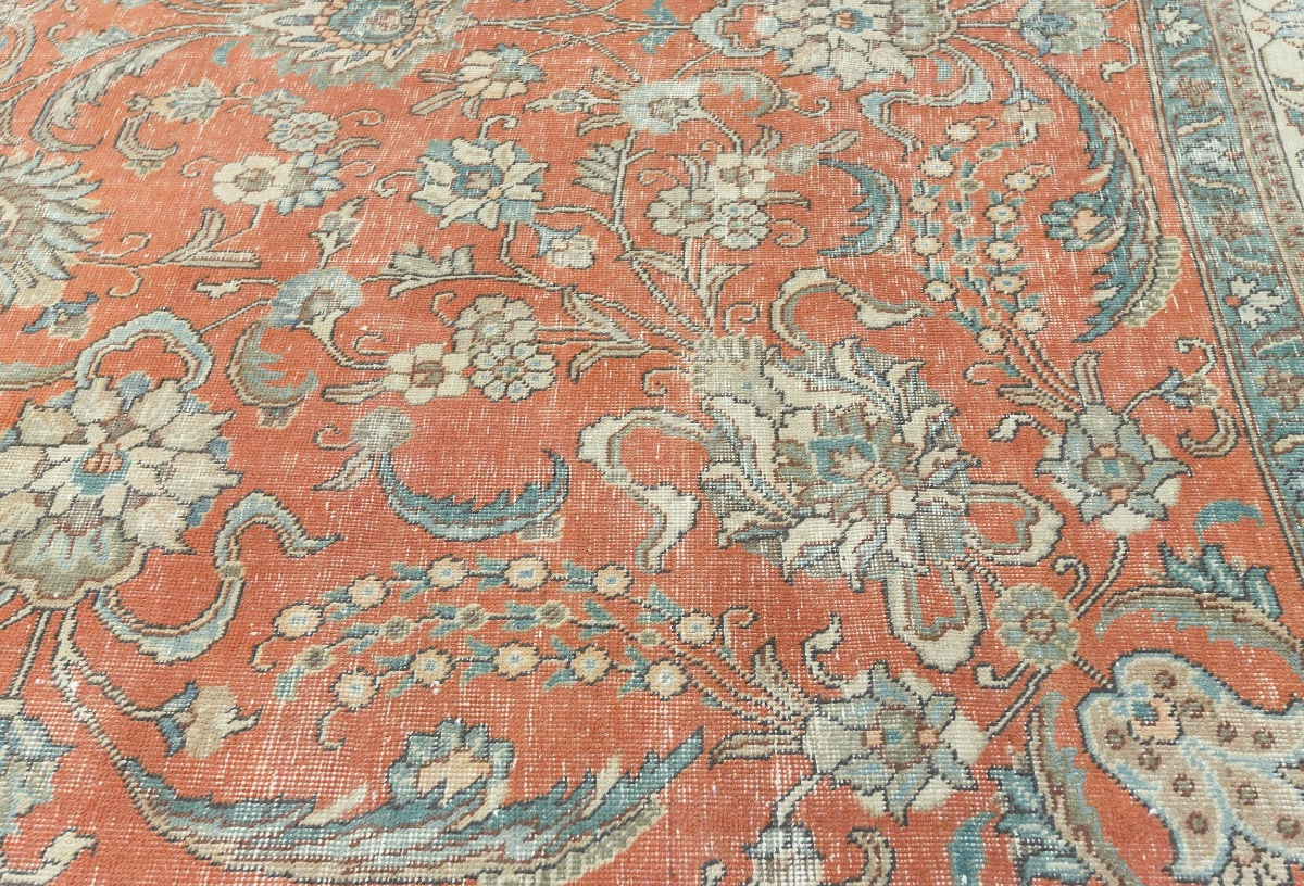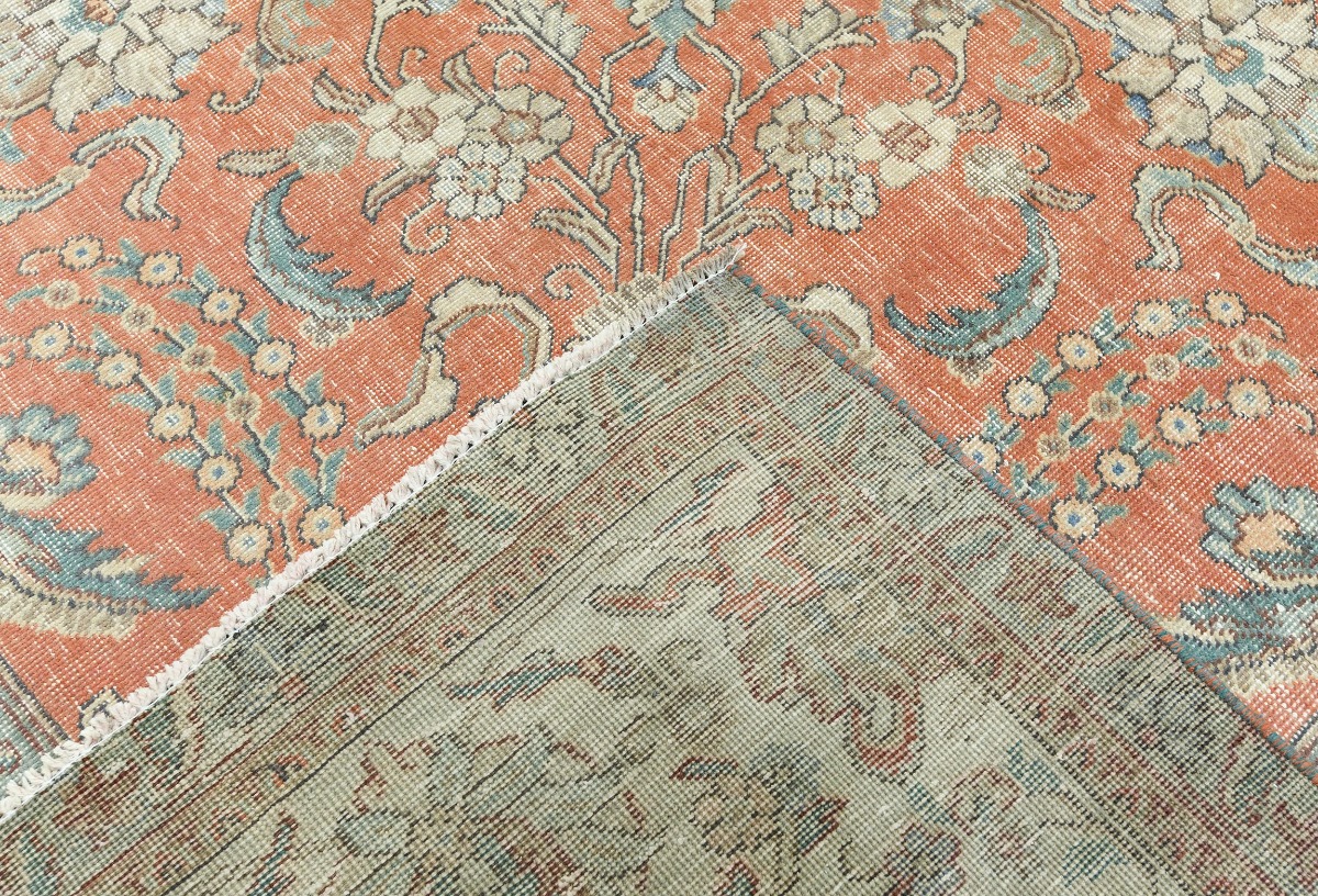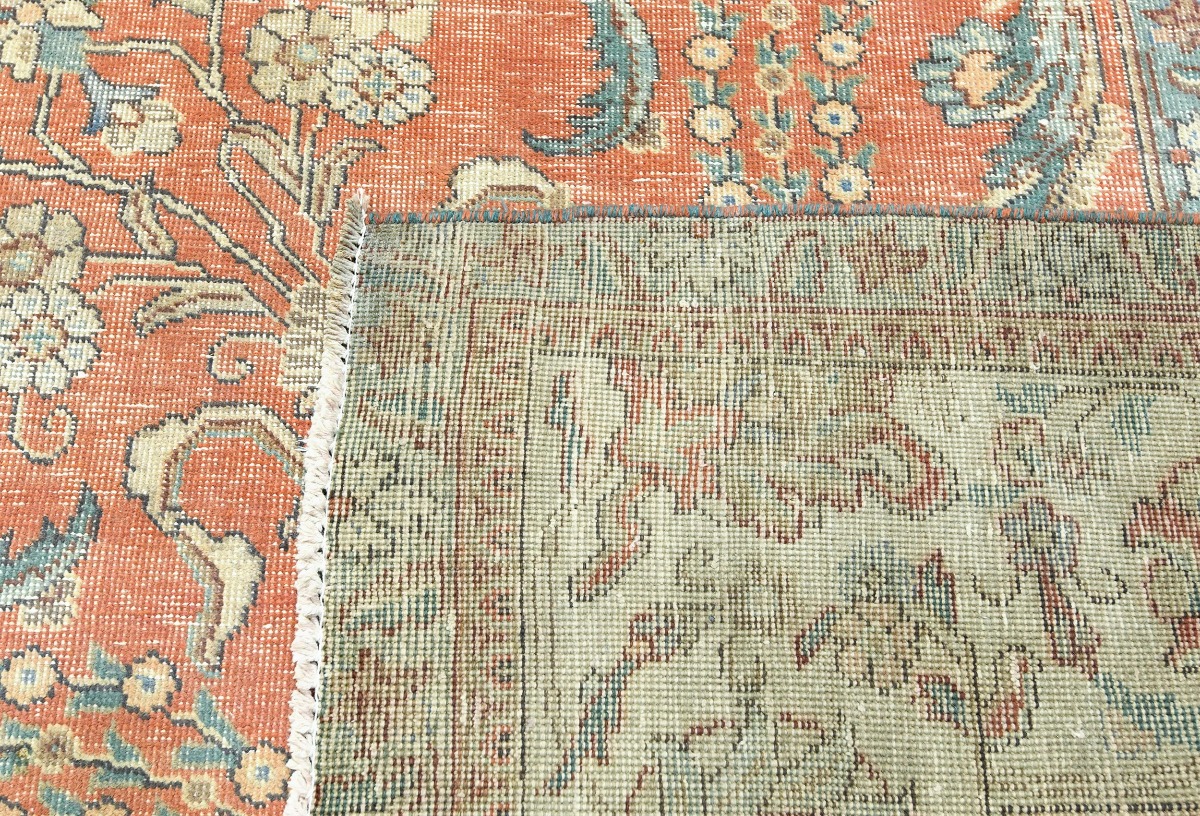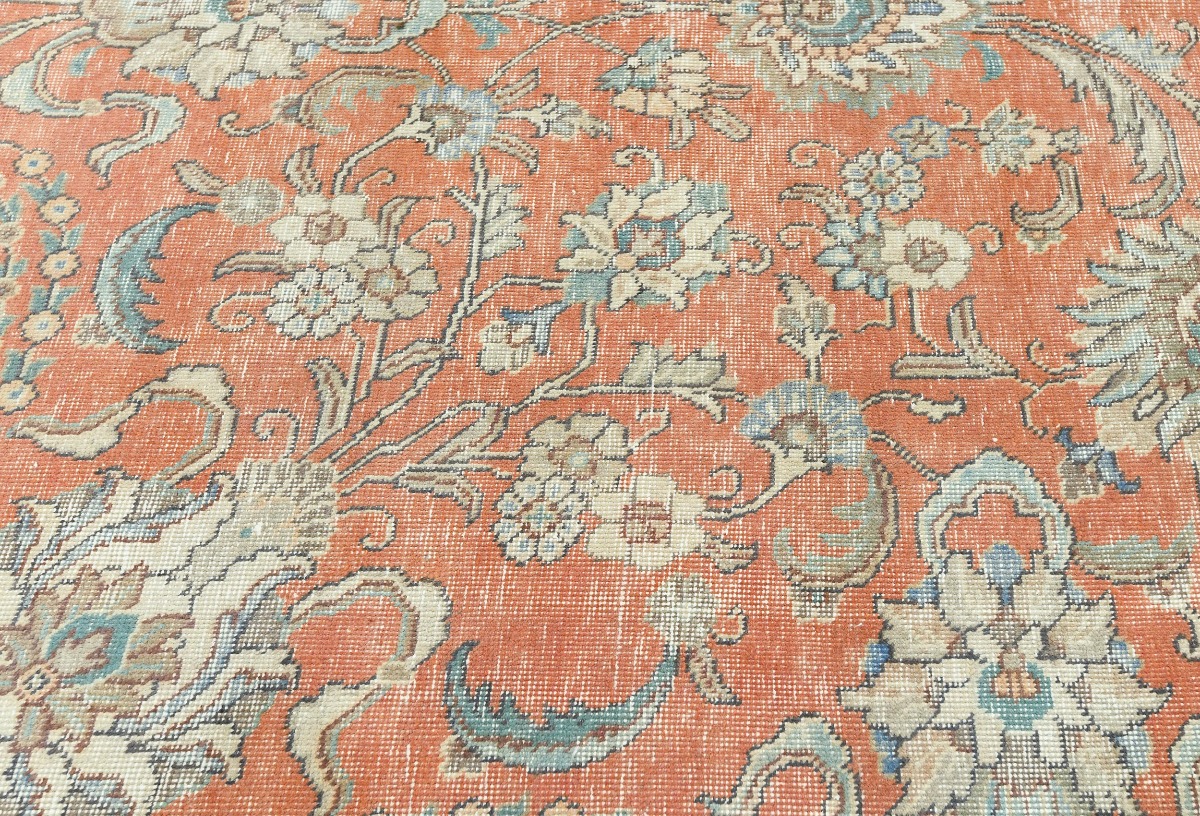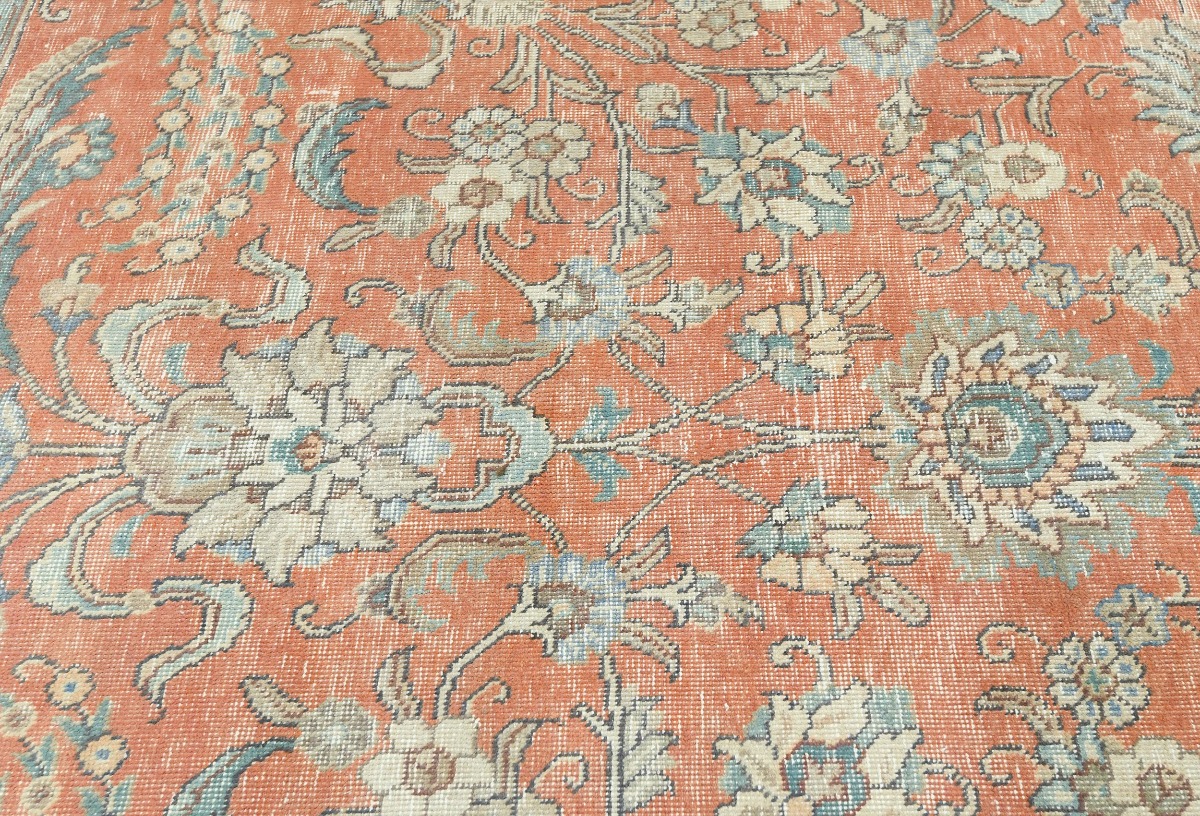 Antique Muted Orange Floral 10X13 Distressed Vintage Oriental Rug