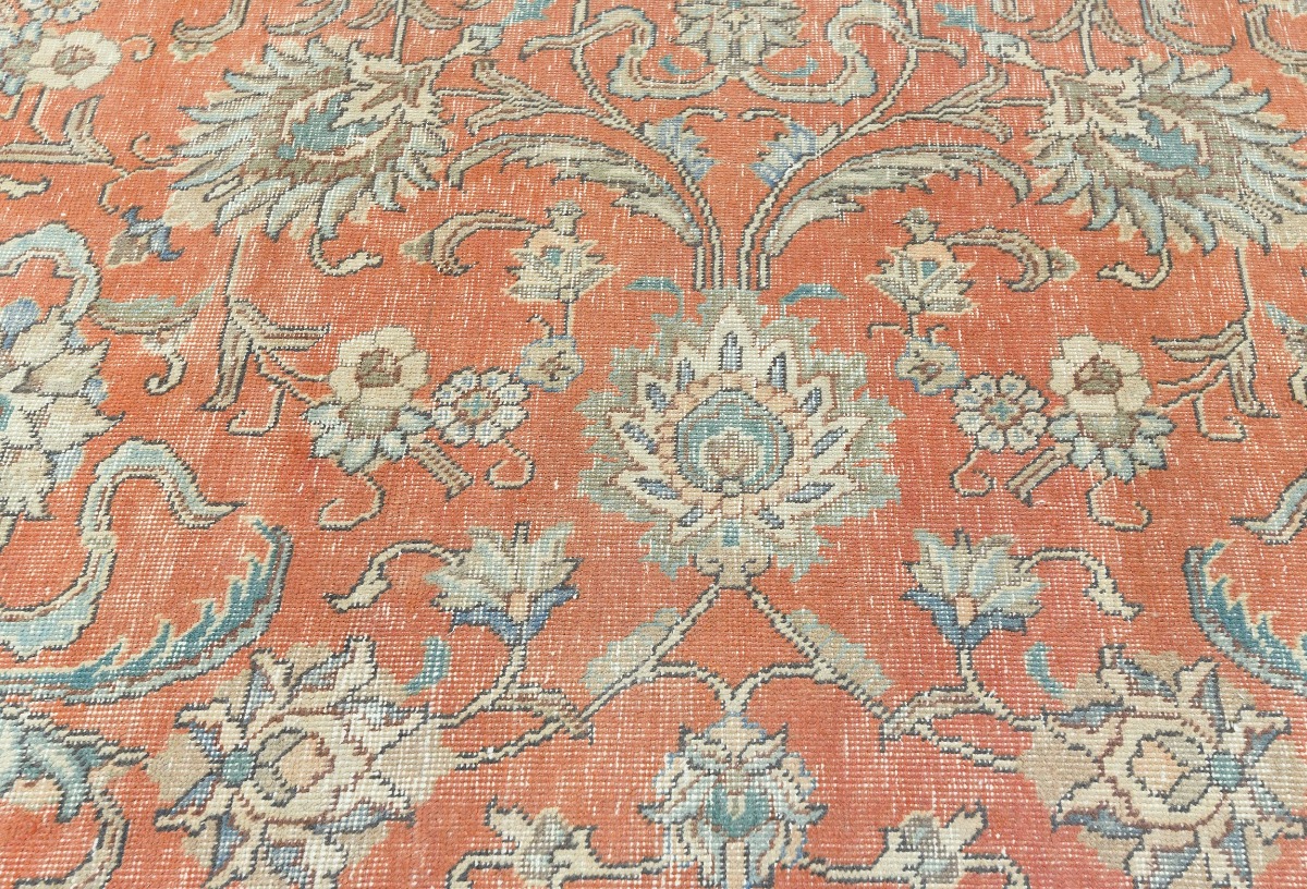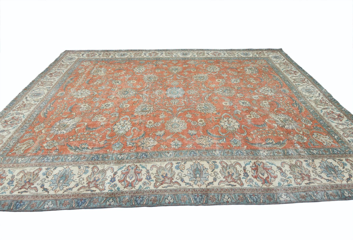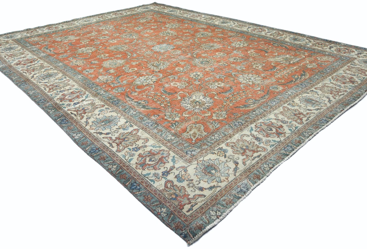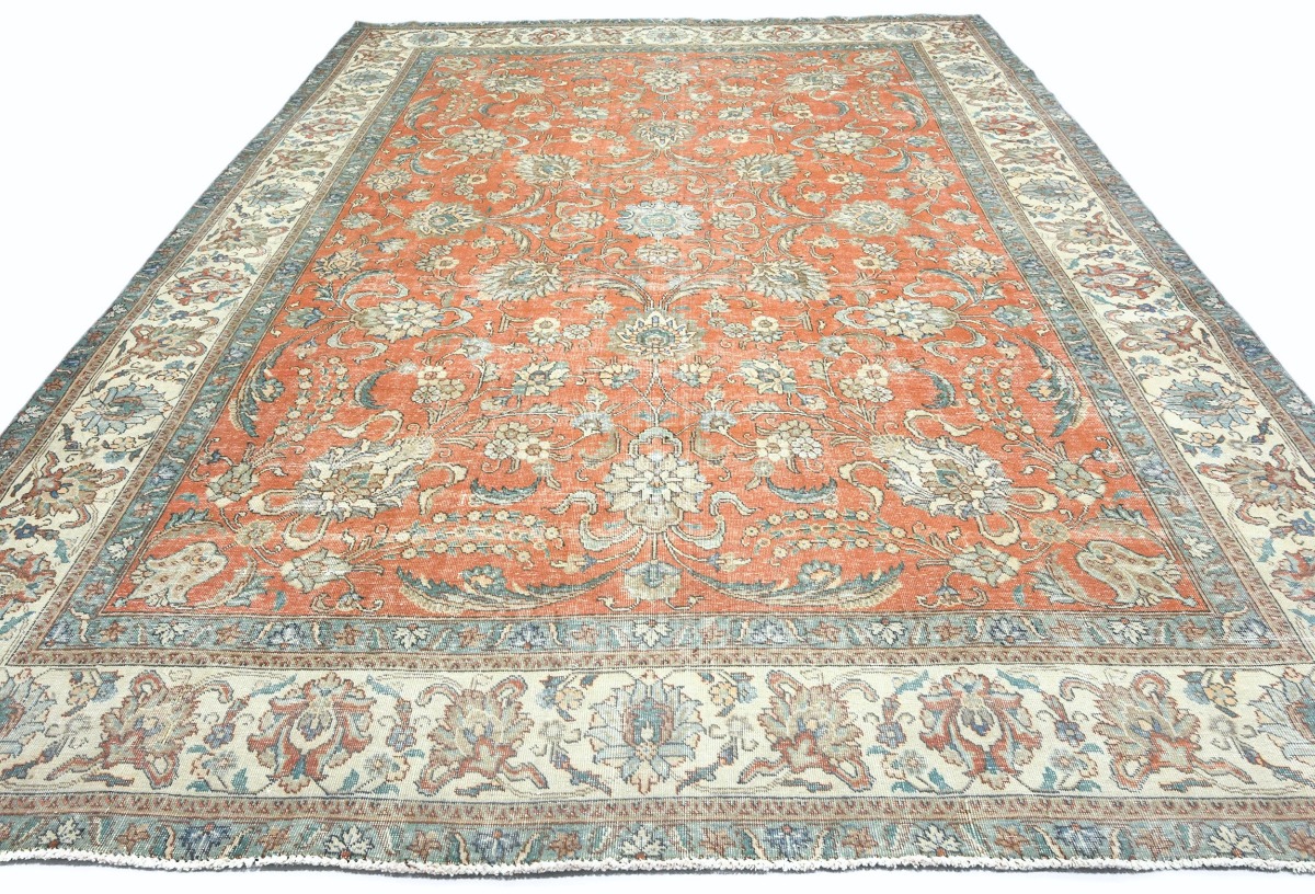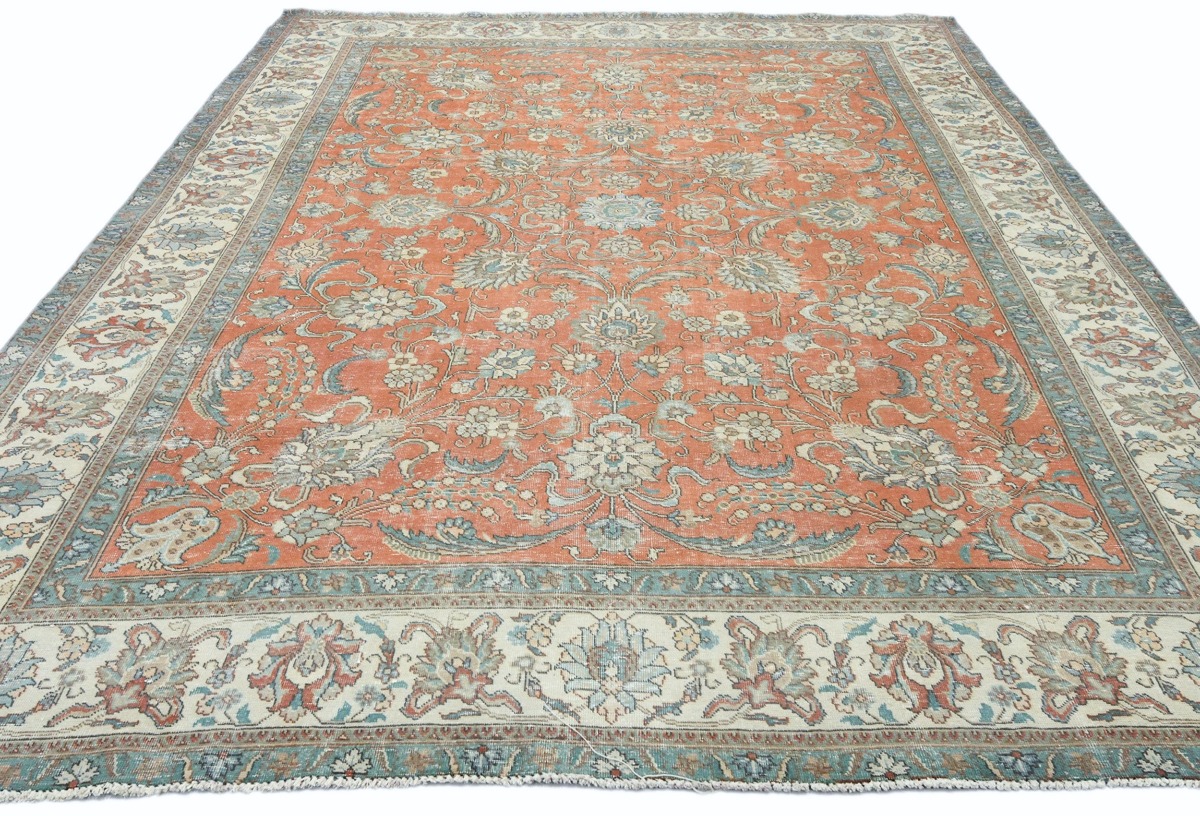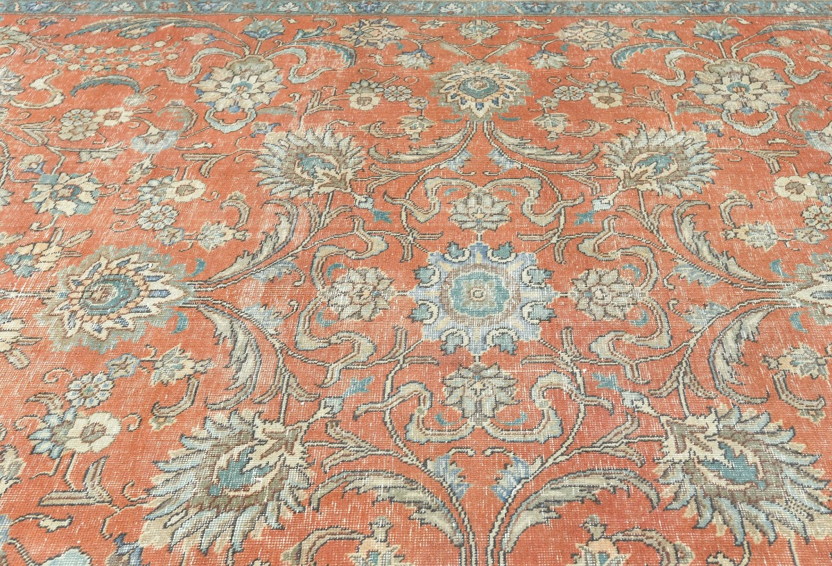 Antique Muted Orange Floral 10X13 Distressed Vintage Oriental Rug