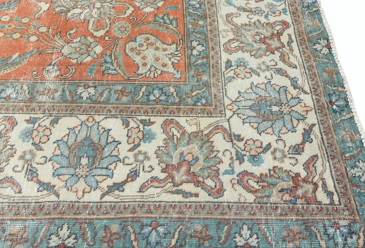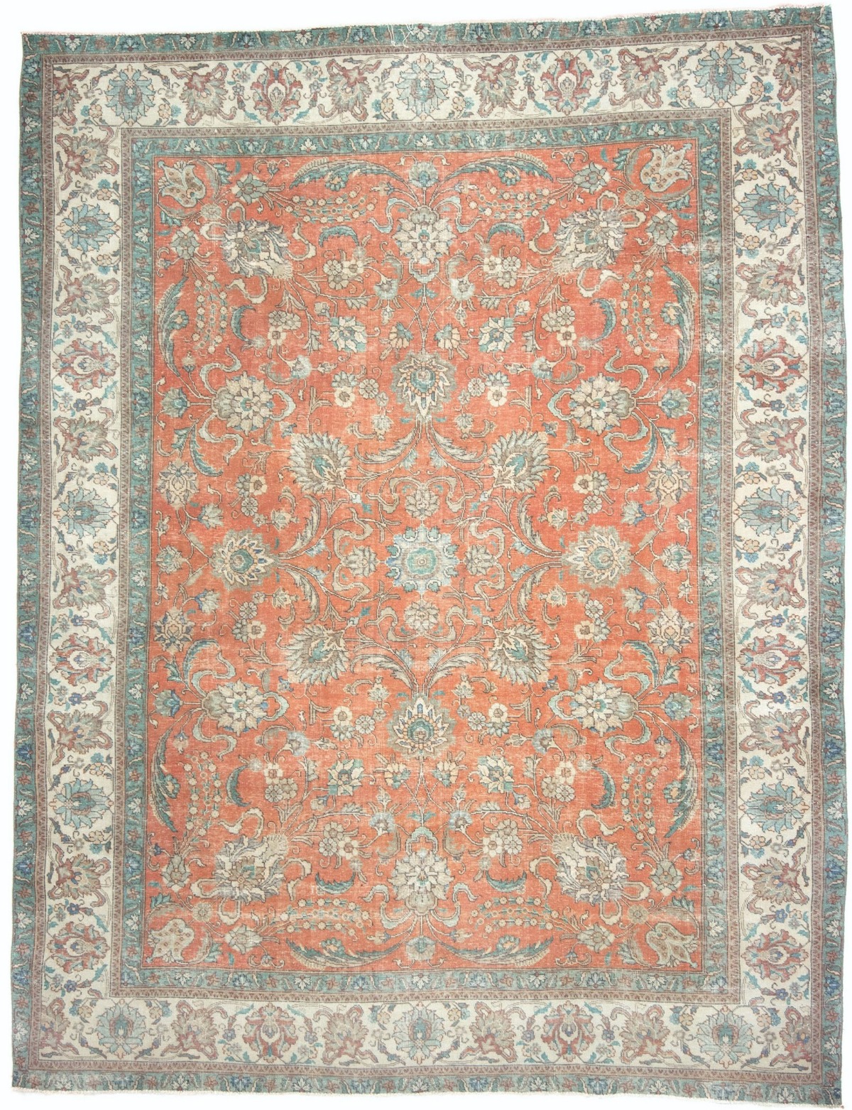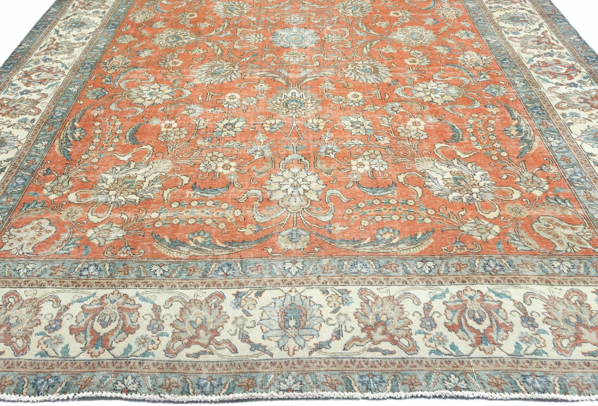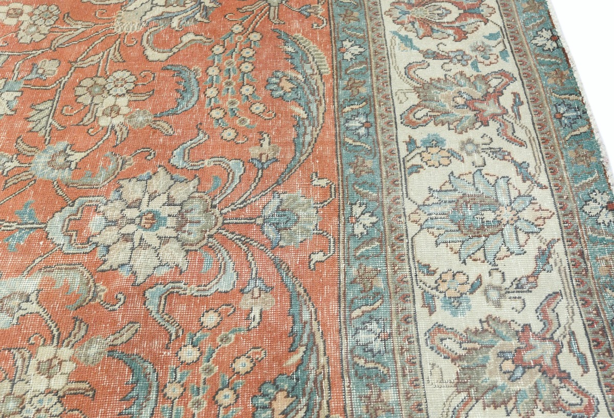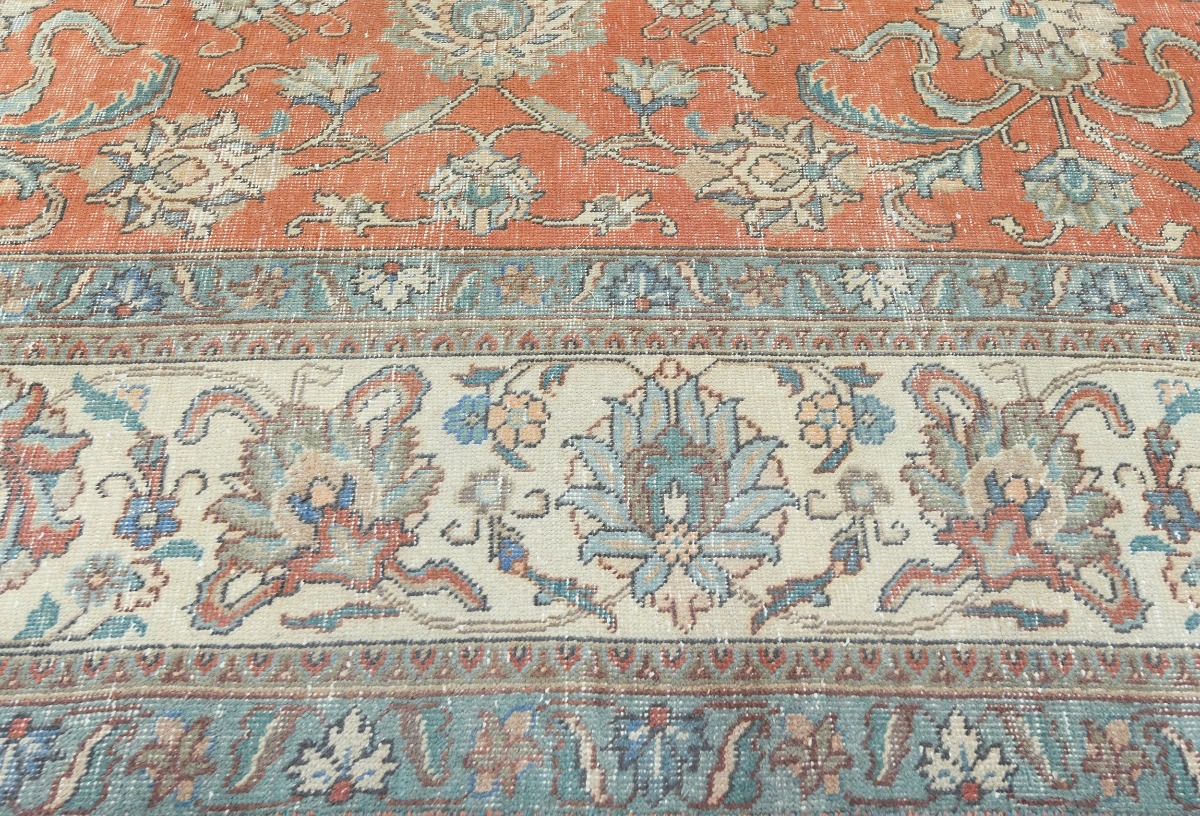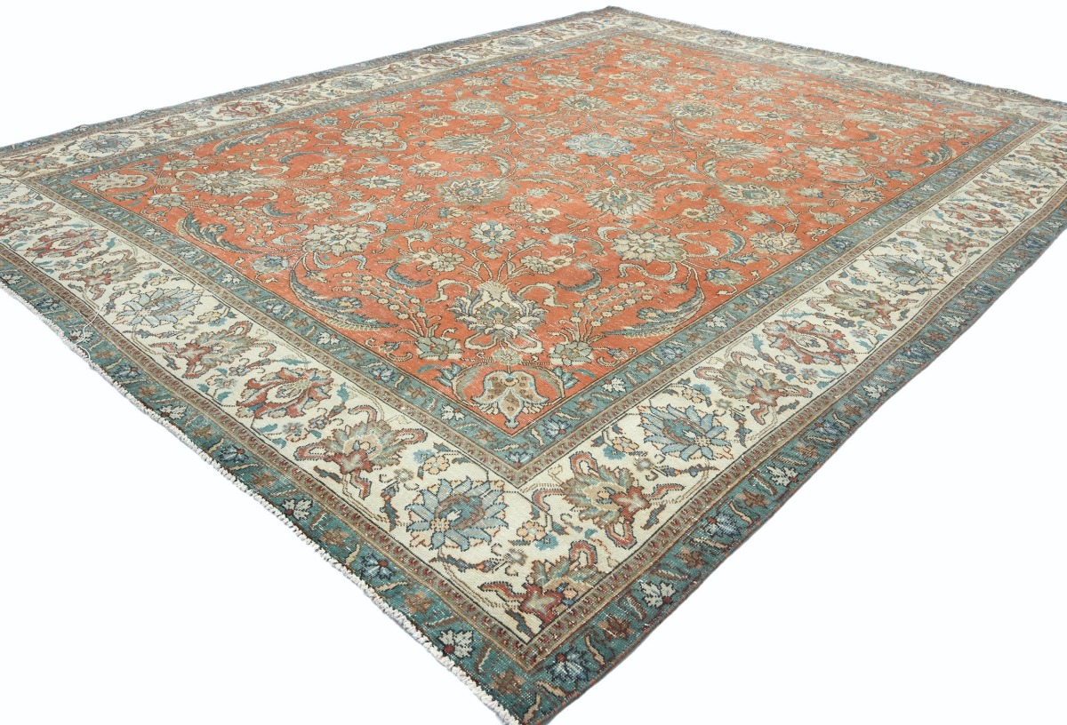 Antique Muted Orange Floral 10X13 Distressed Vintage Oriental Rug