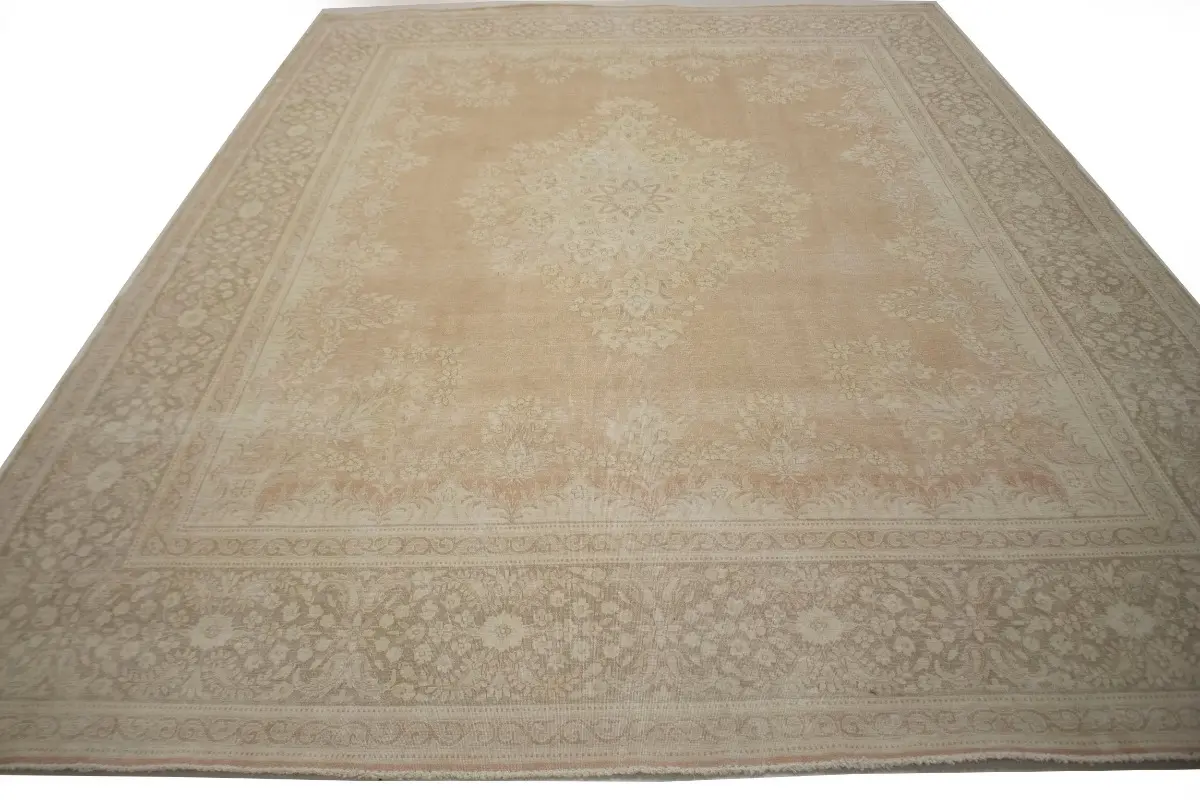Antique Muted Orange Floral 10X13 Kerman Persian Rug