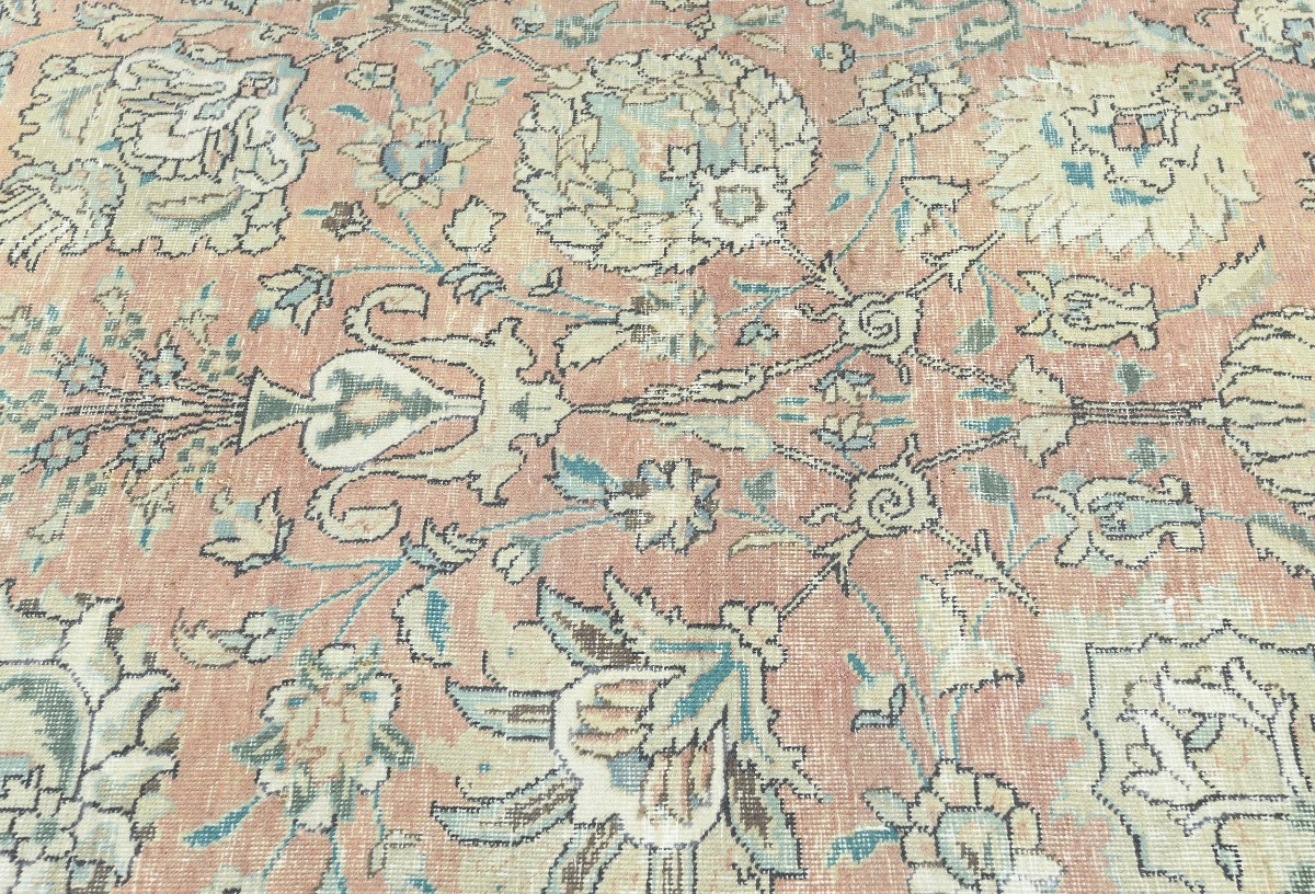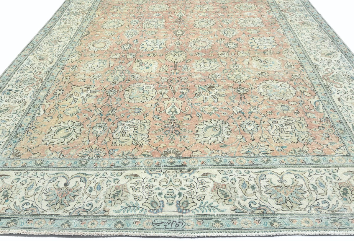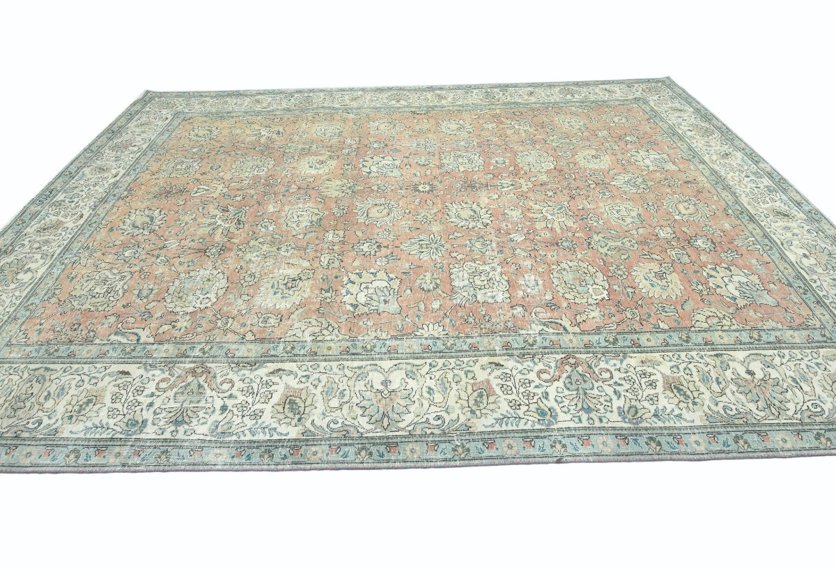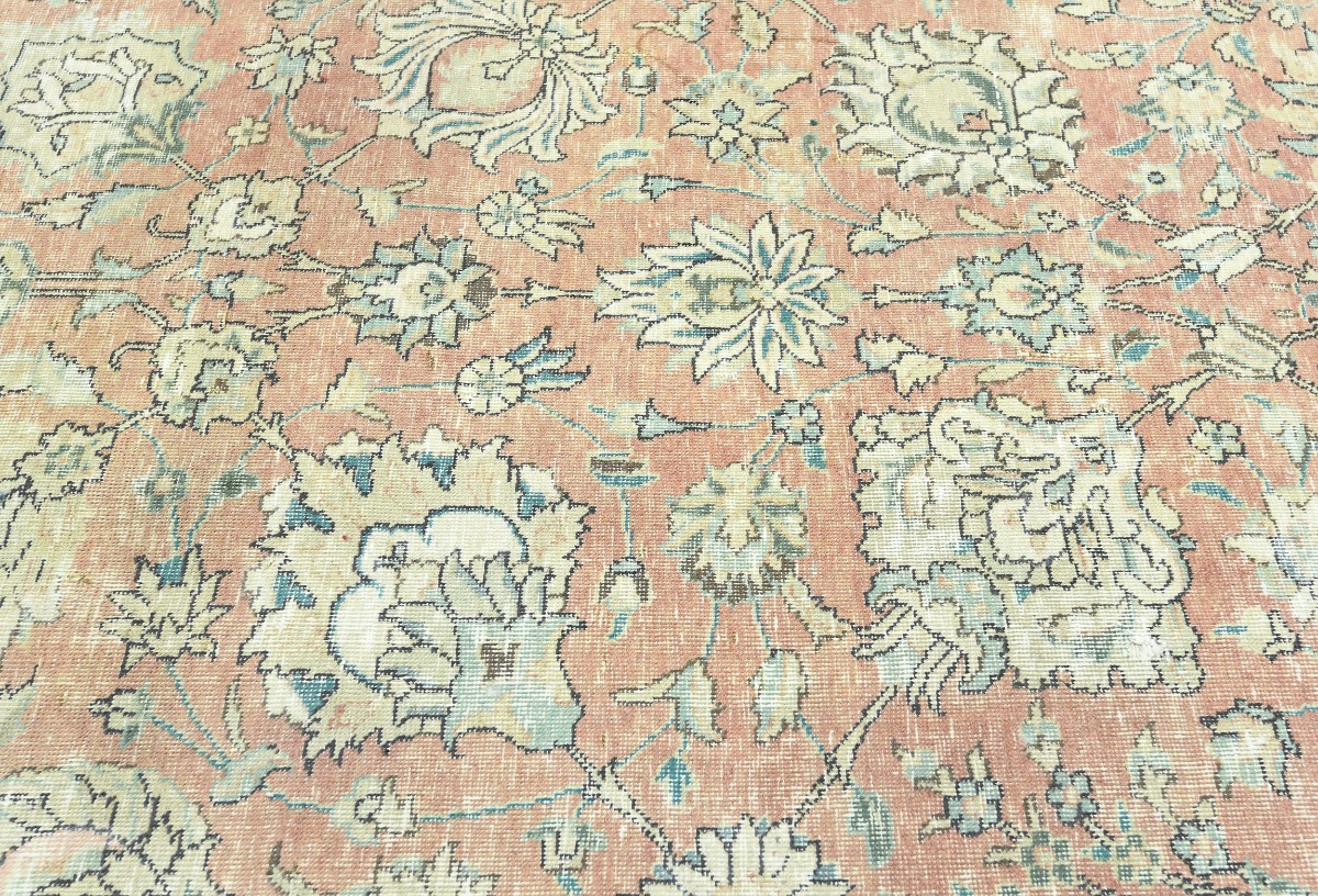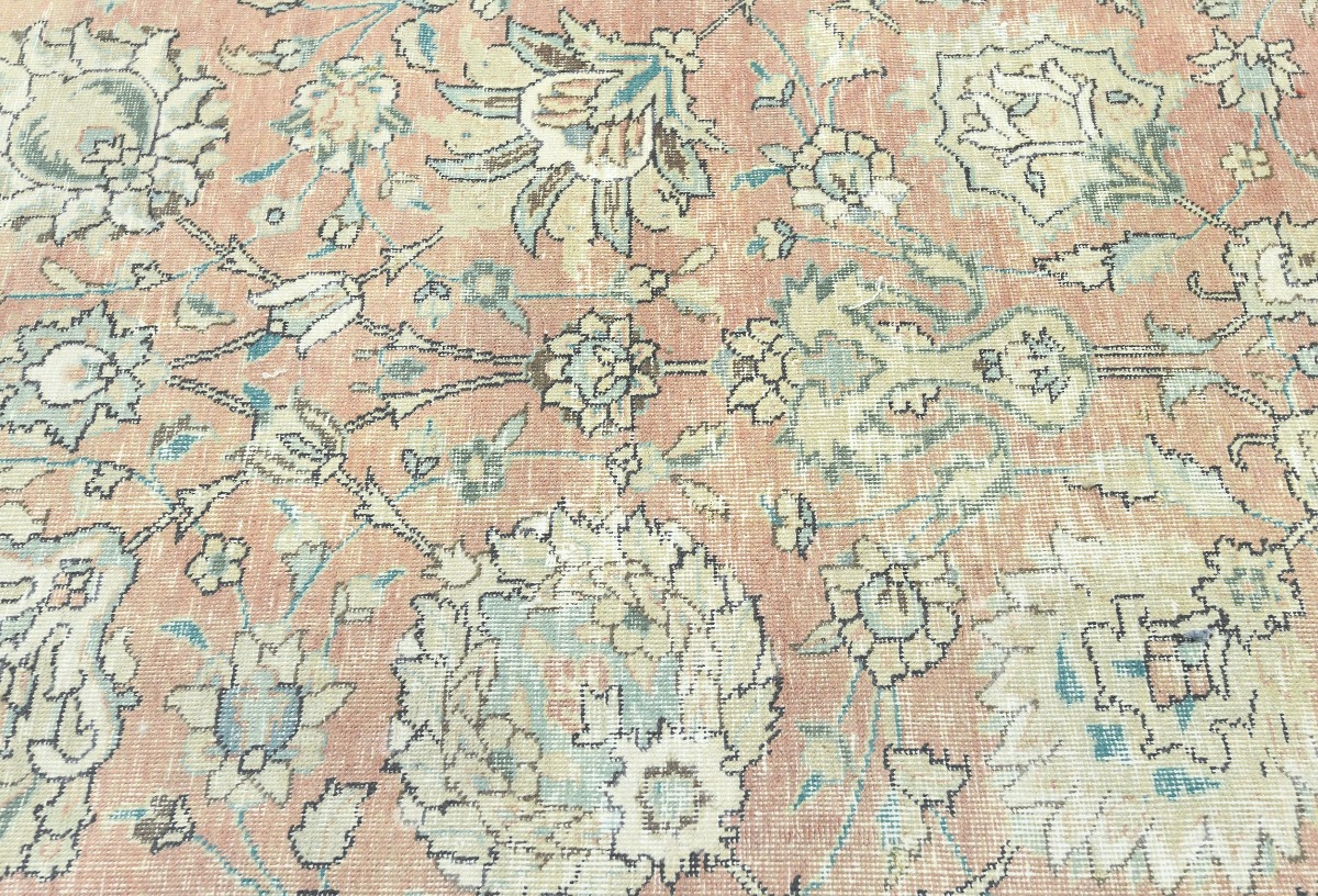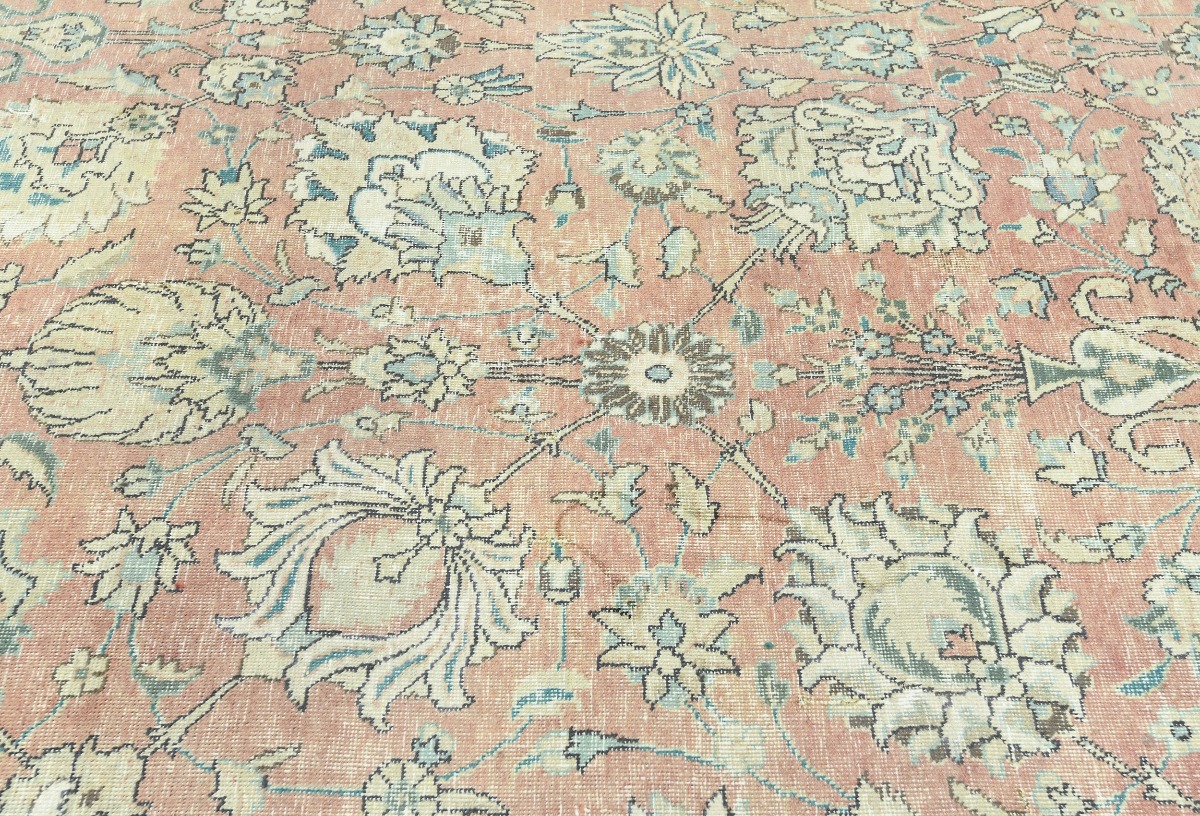 Antique Muted Orange Floral 9'5X12'7 Distressed Vintage Oriental Rug