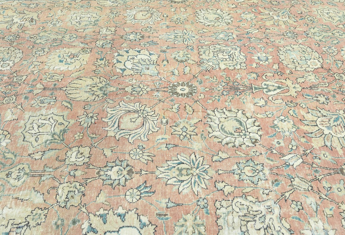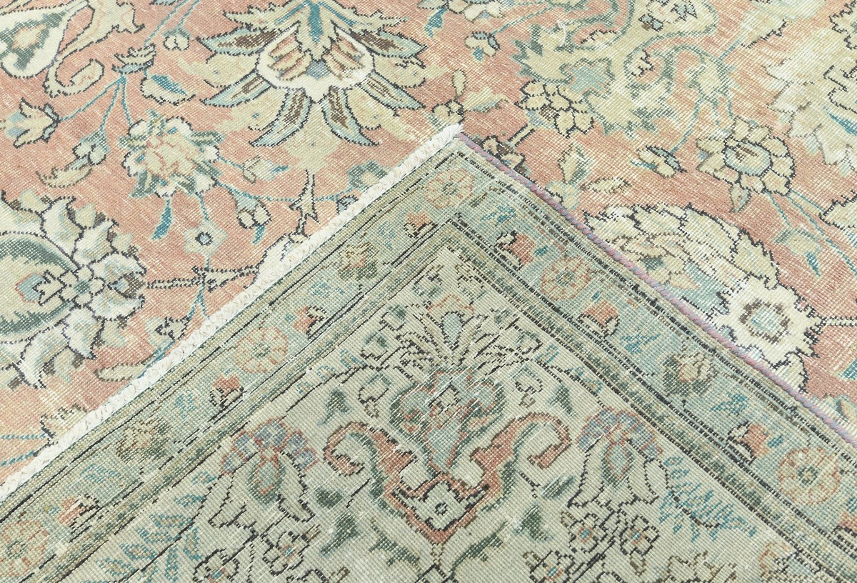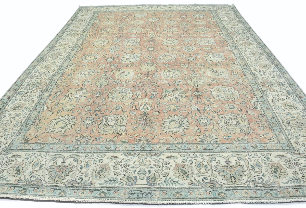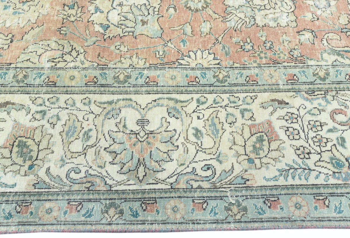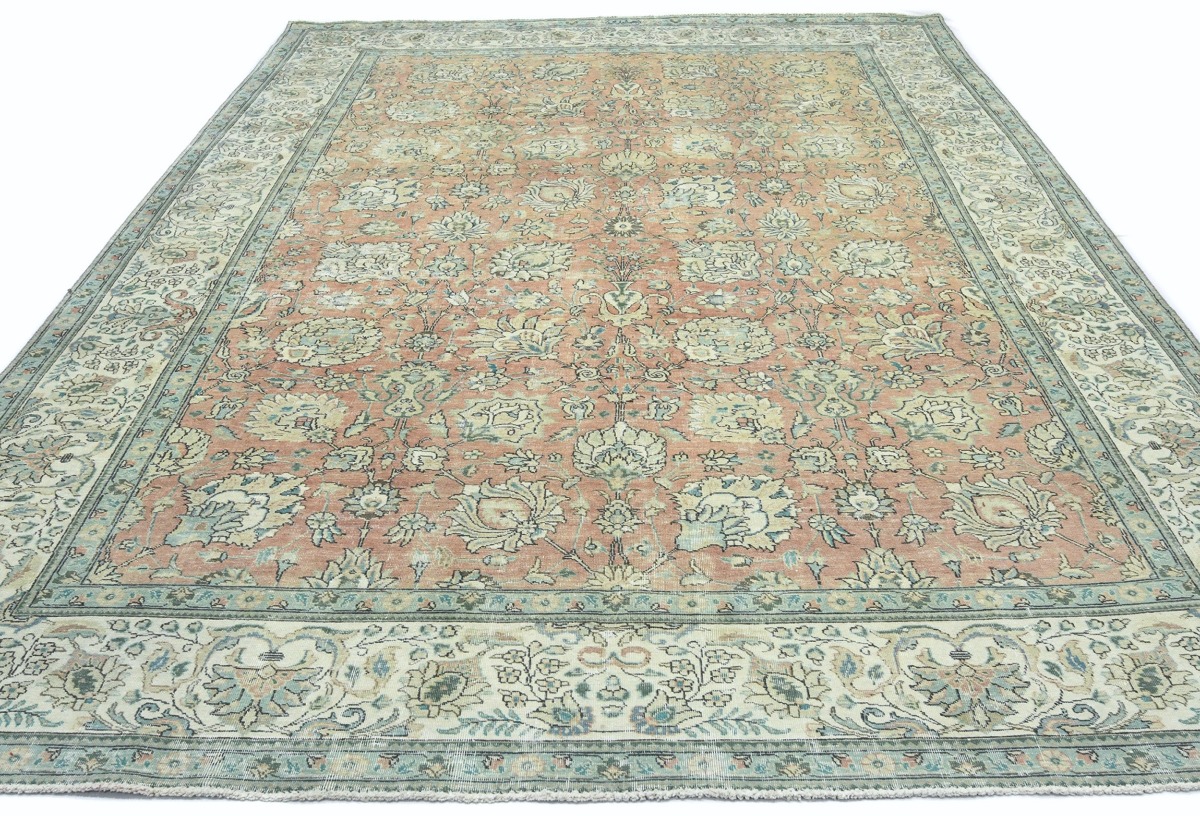 Antique Muted Orange Floral 9'5X12'7 Distressed Vintage Oriental Rug