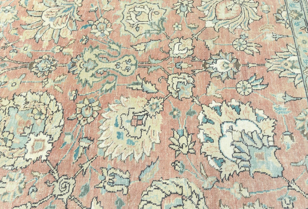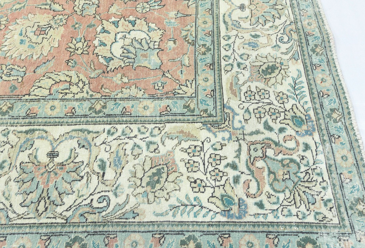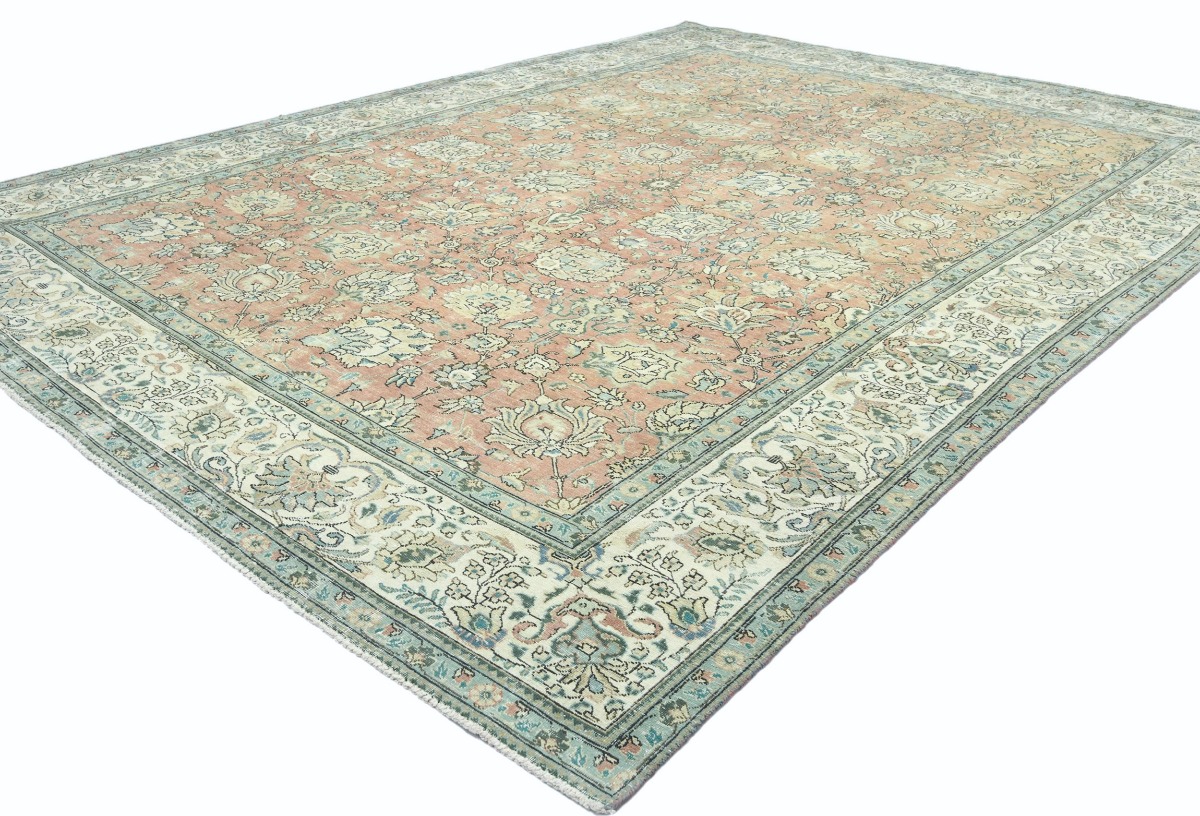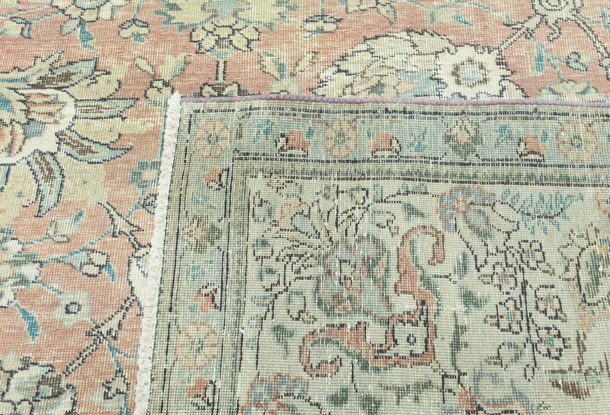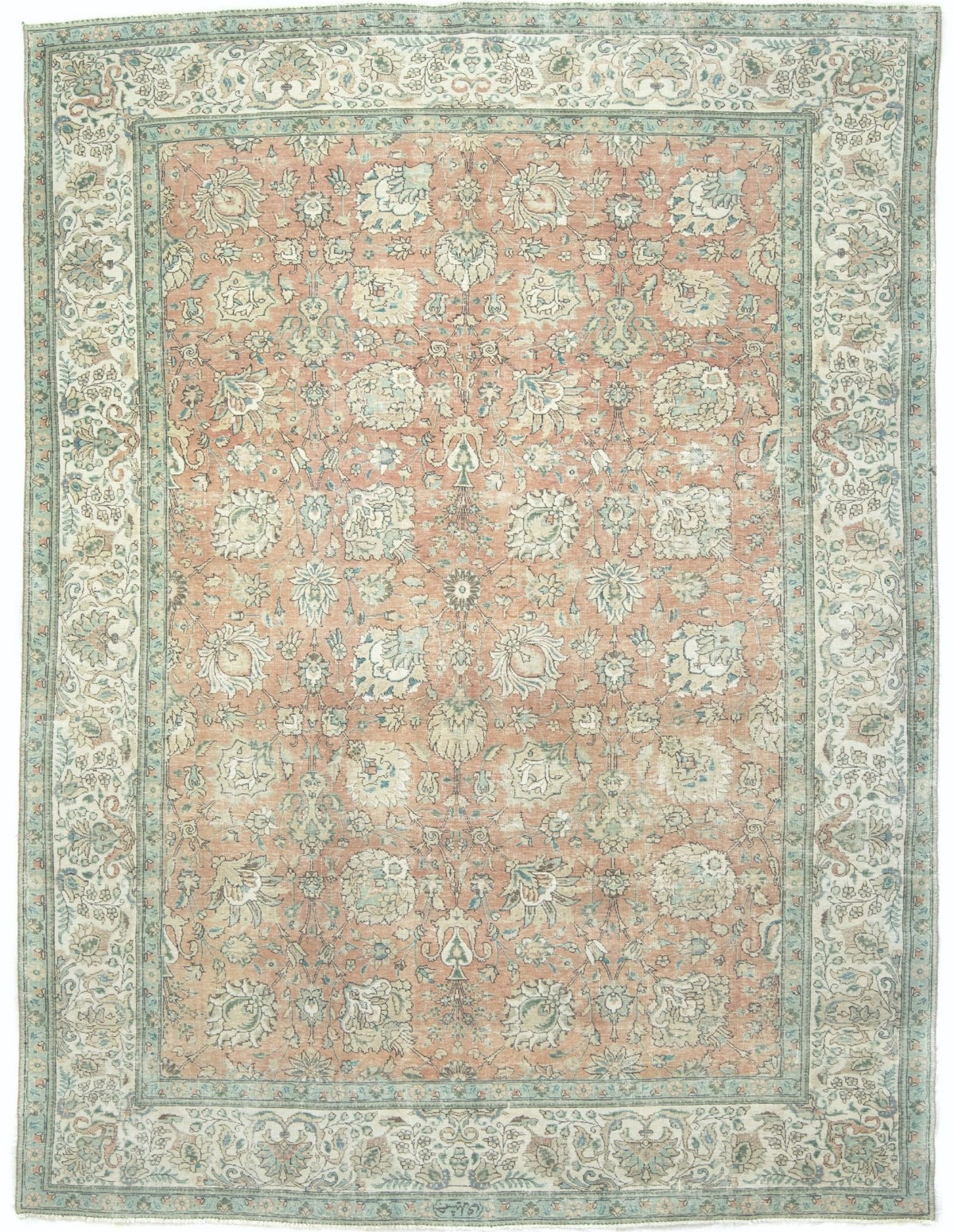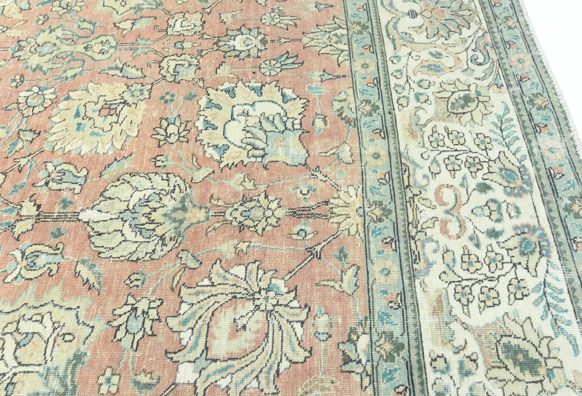 Antique Muted Orange Floral 9'5X12'7 Distressed Vintage Oriental Rug