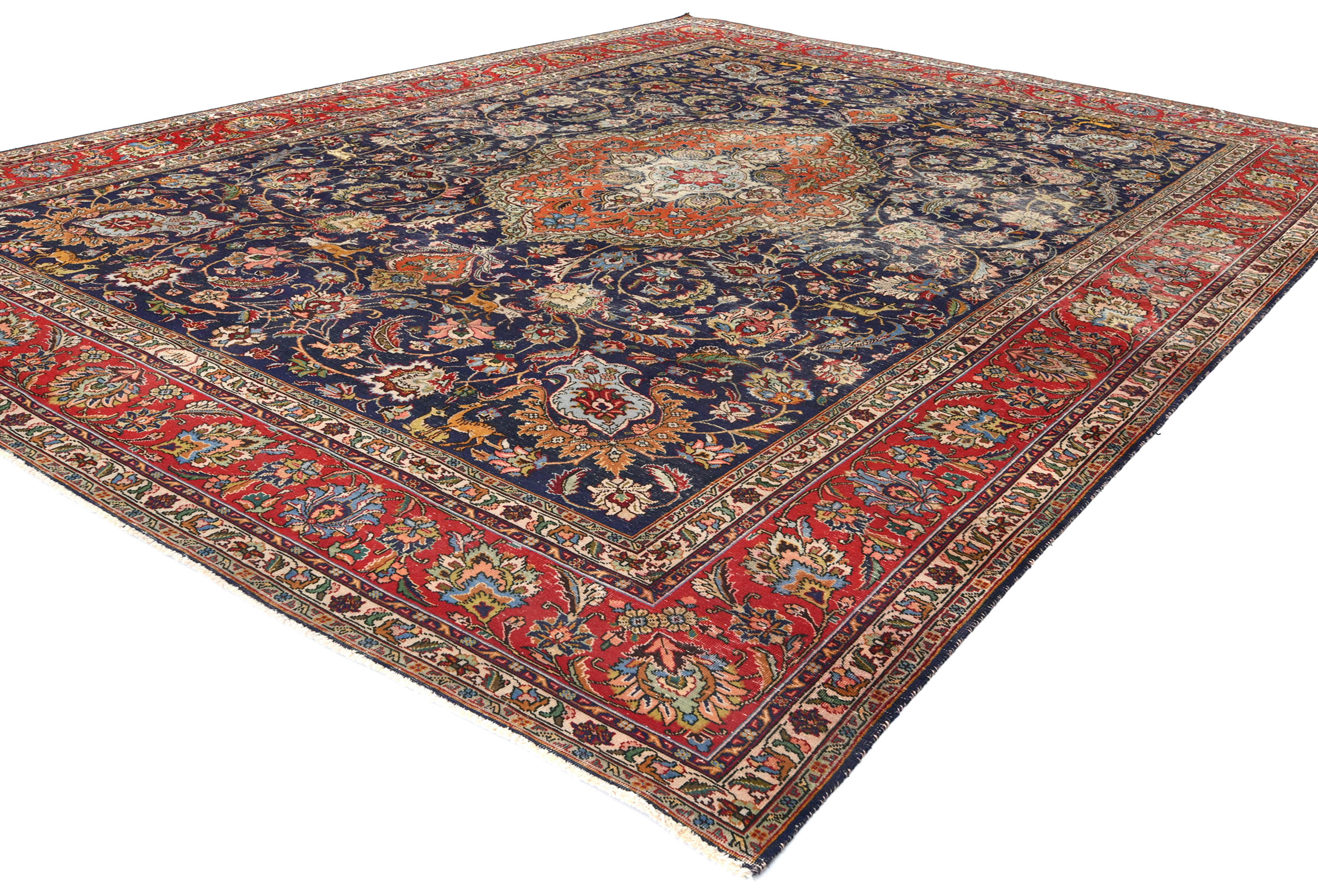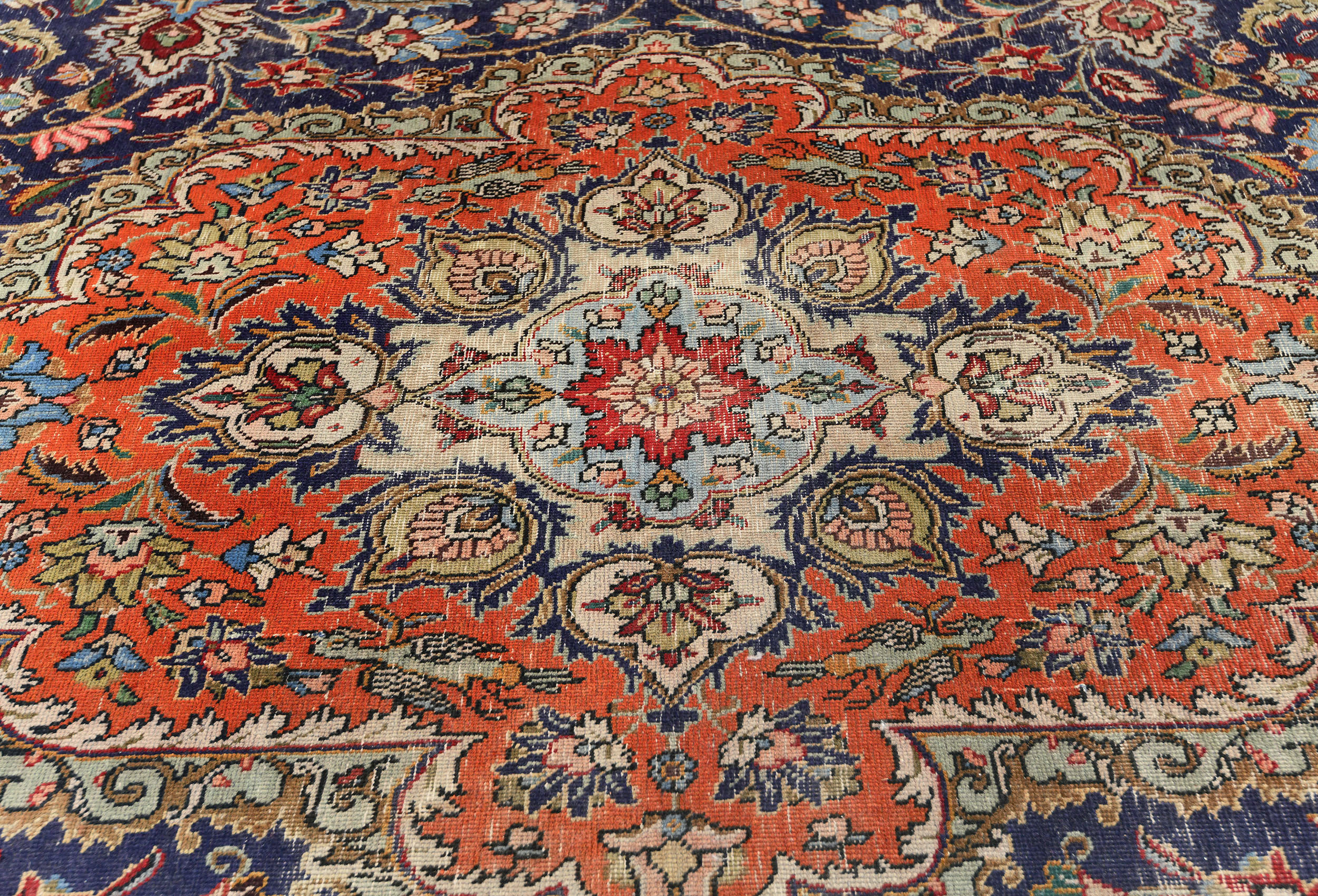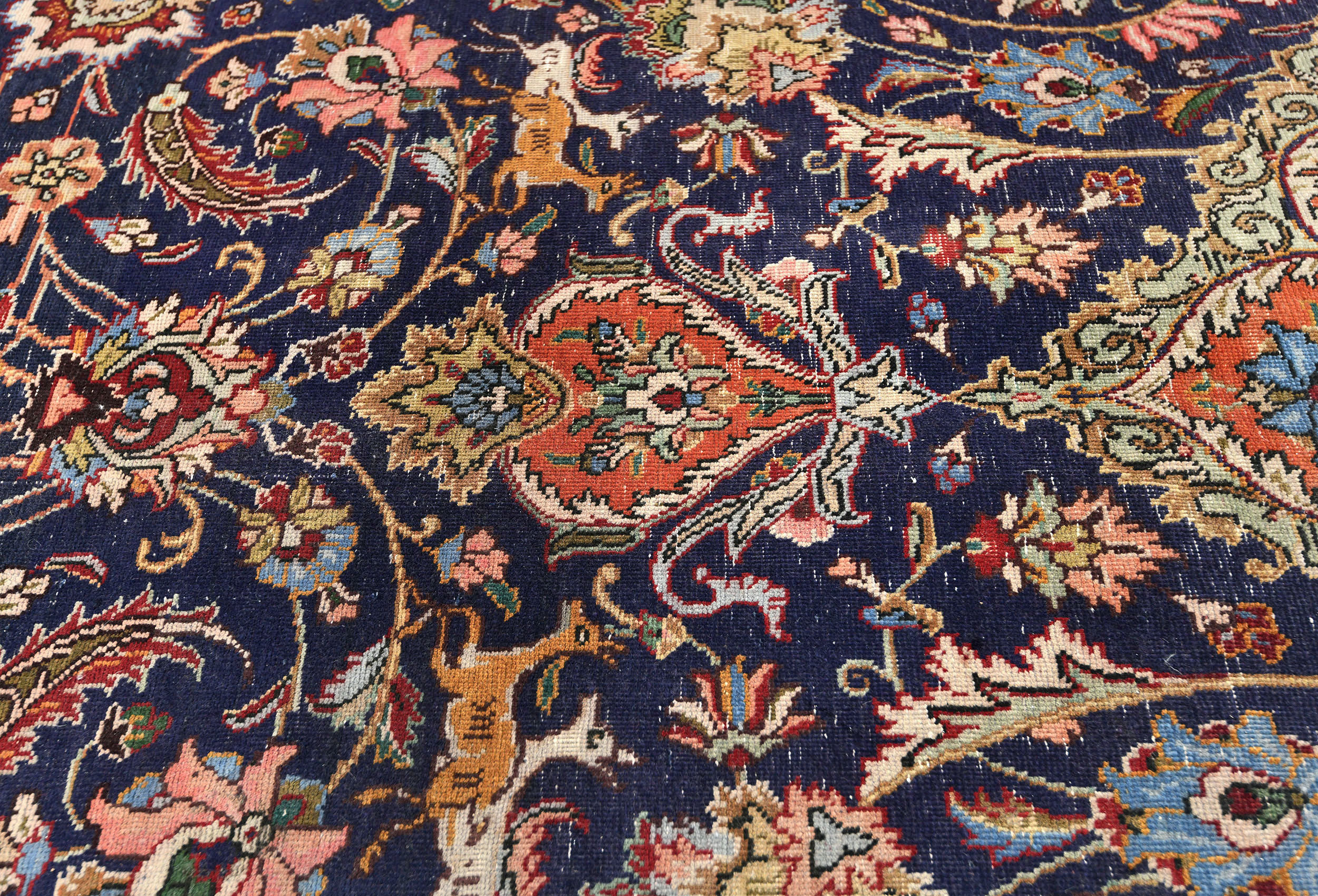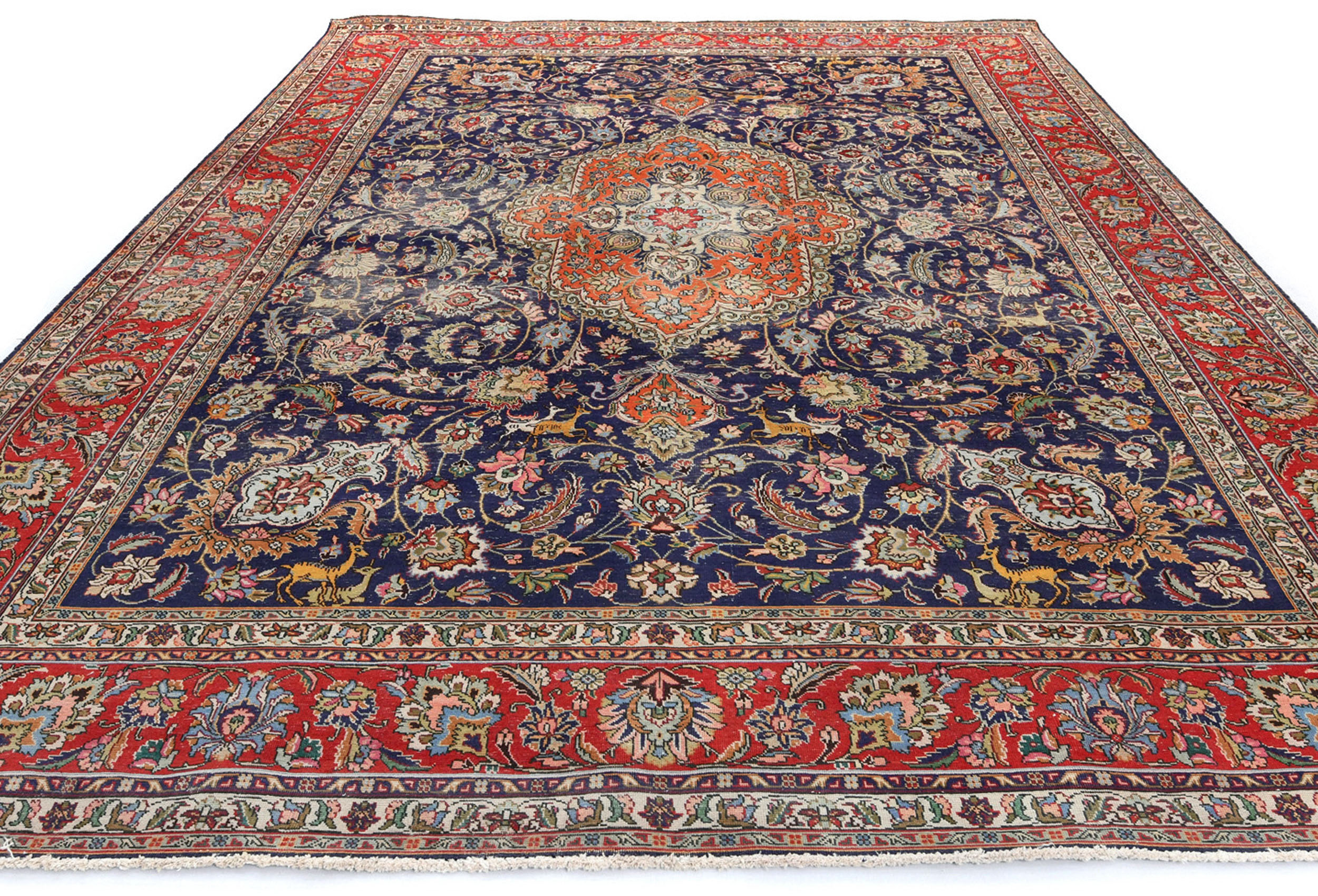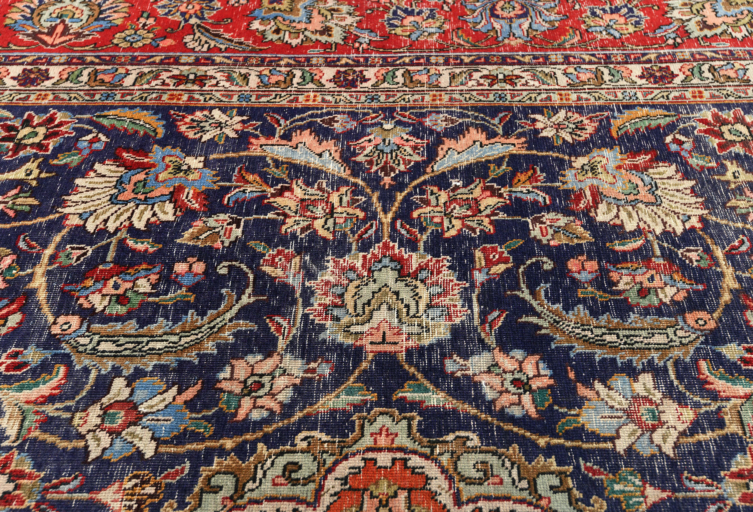 Antique Muted Purple-navy Floral 10X13 Distressed Vintage Oriental Rug