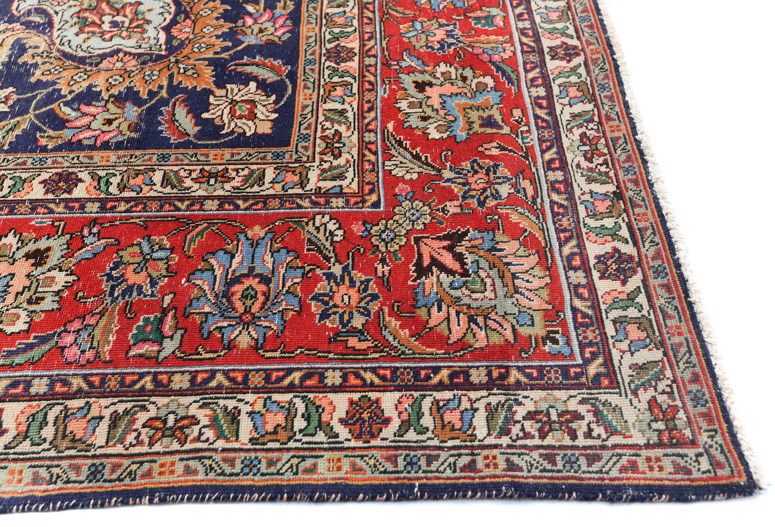 - Features a palette of muted purple-navy, orange-red, and others tones for versatile décor coordination