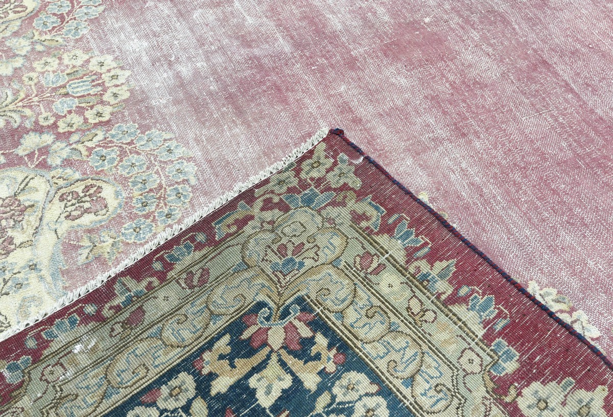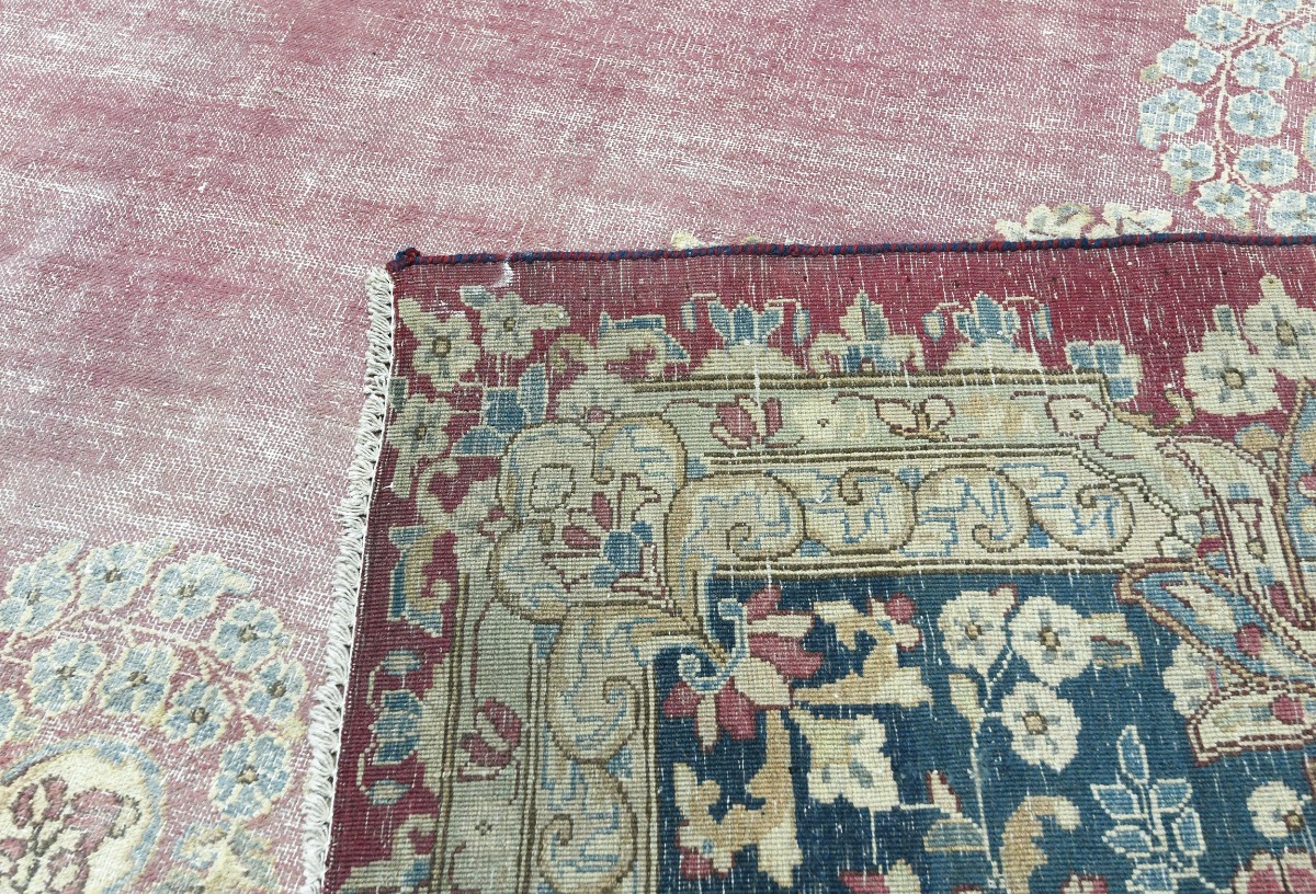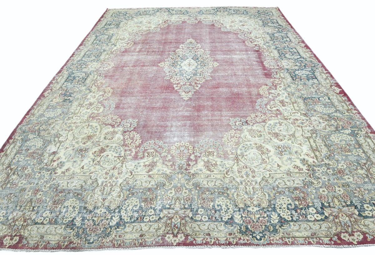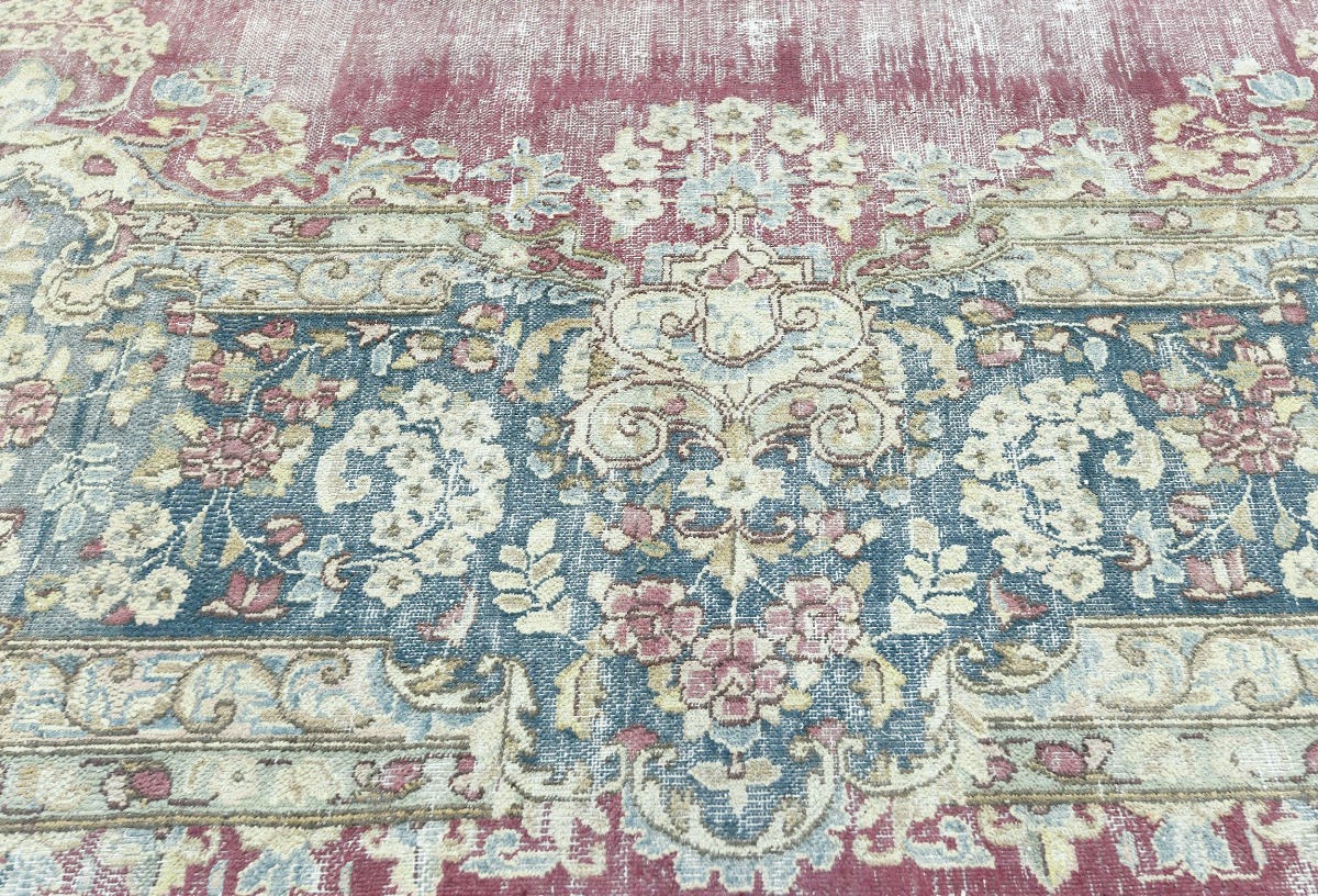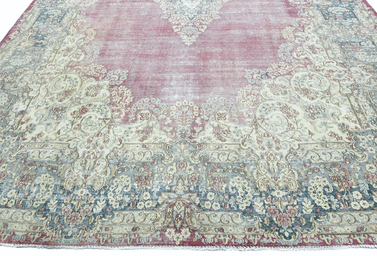 Antique Muted Red Floral 10X13 Distressed Vintage Oriental Rug