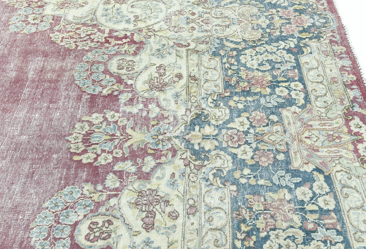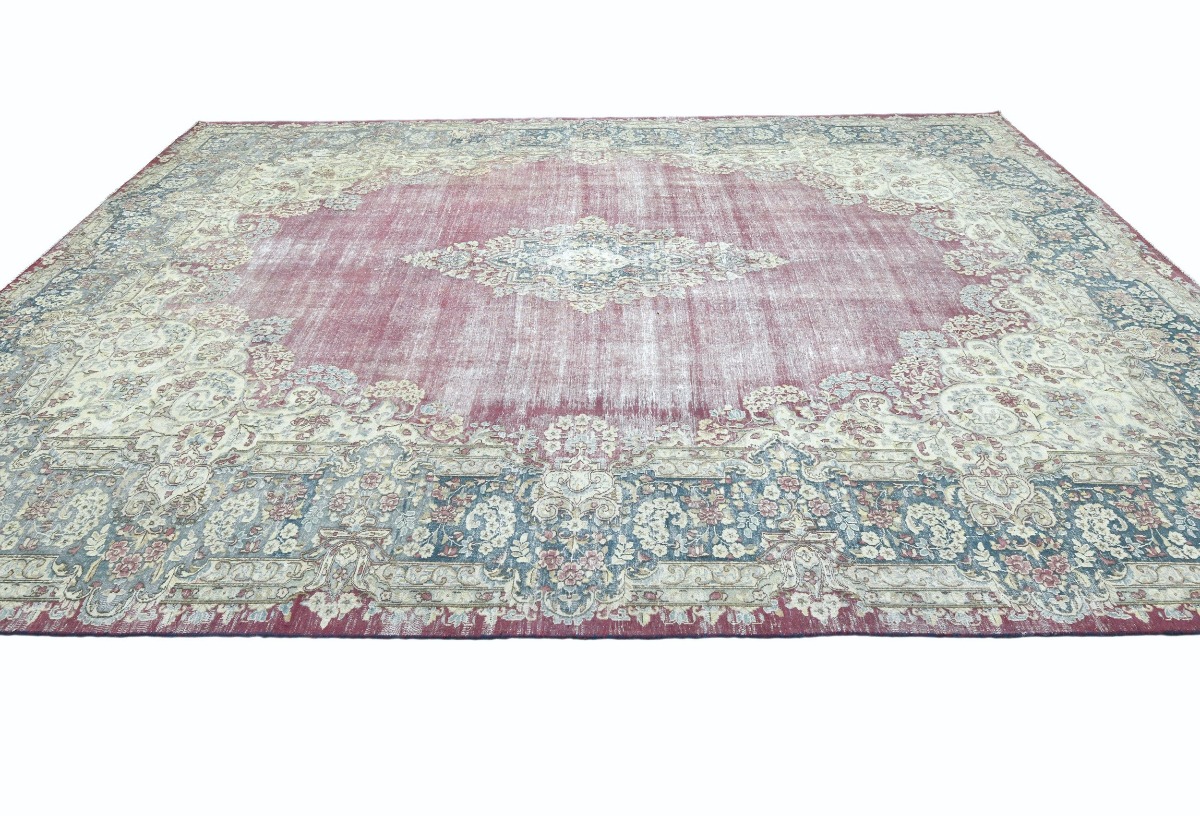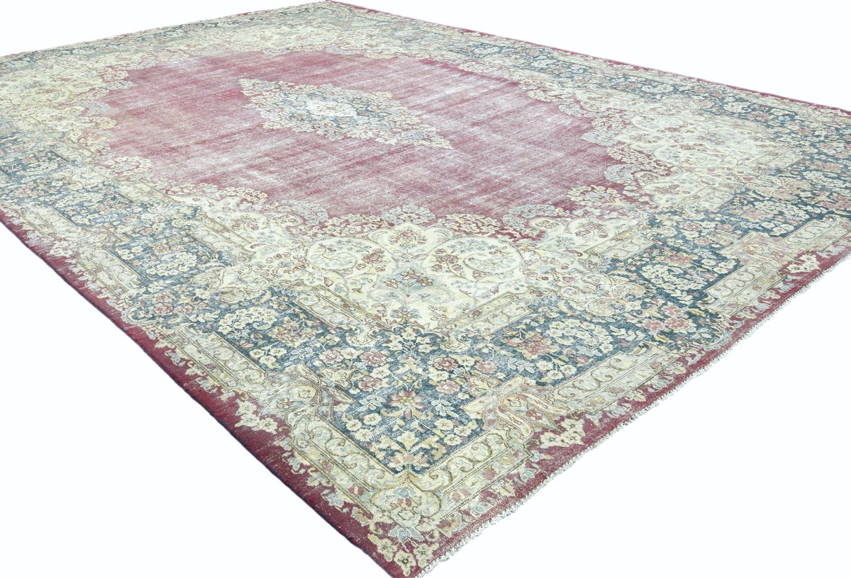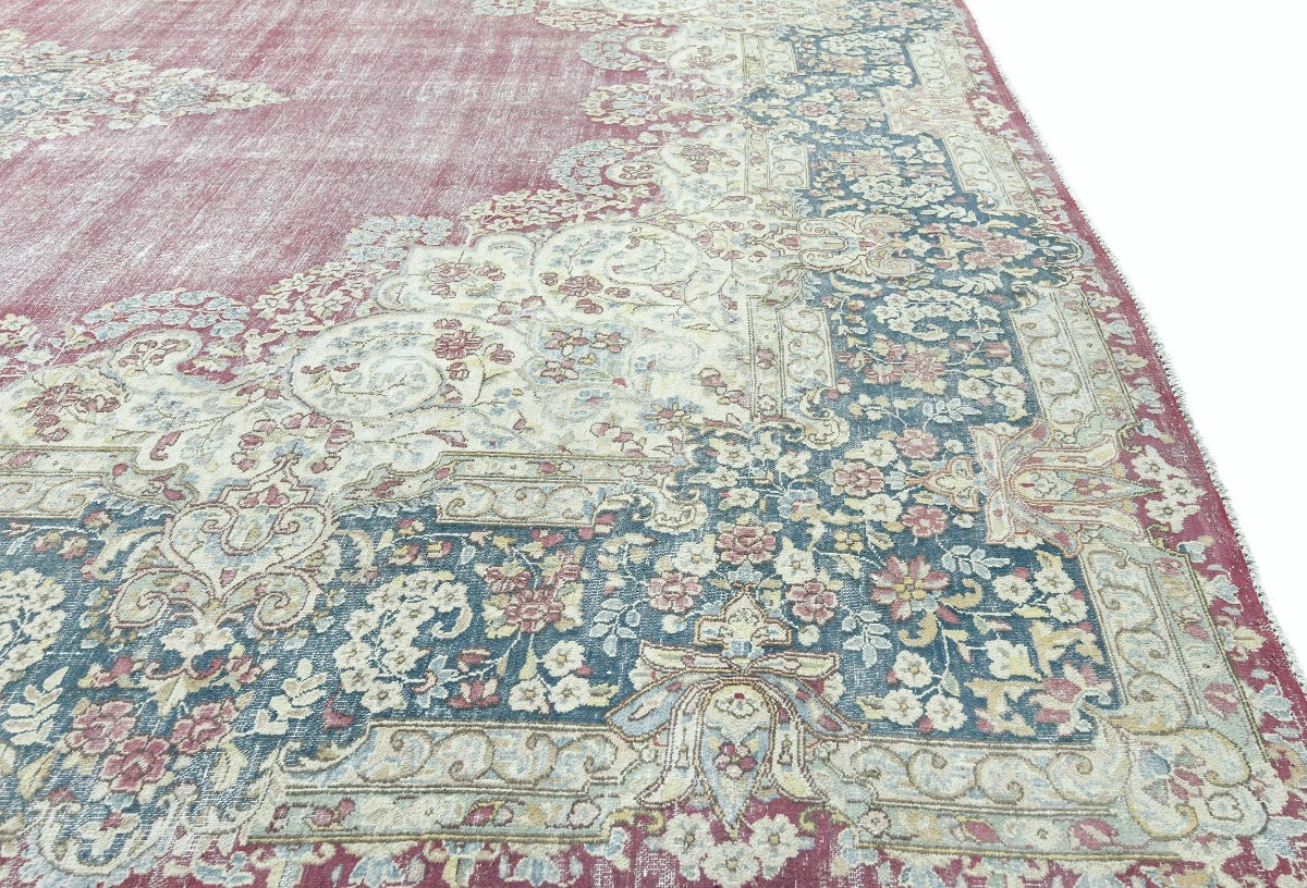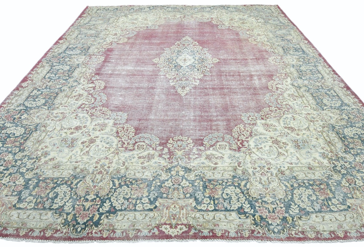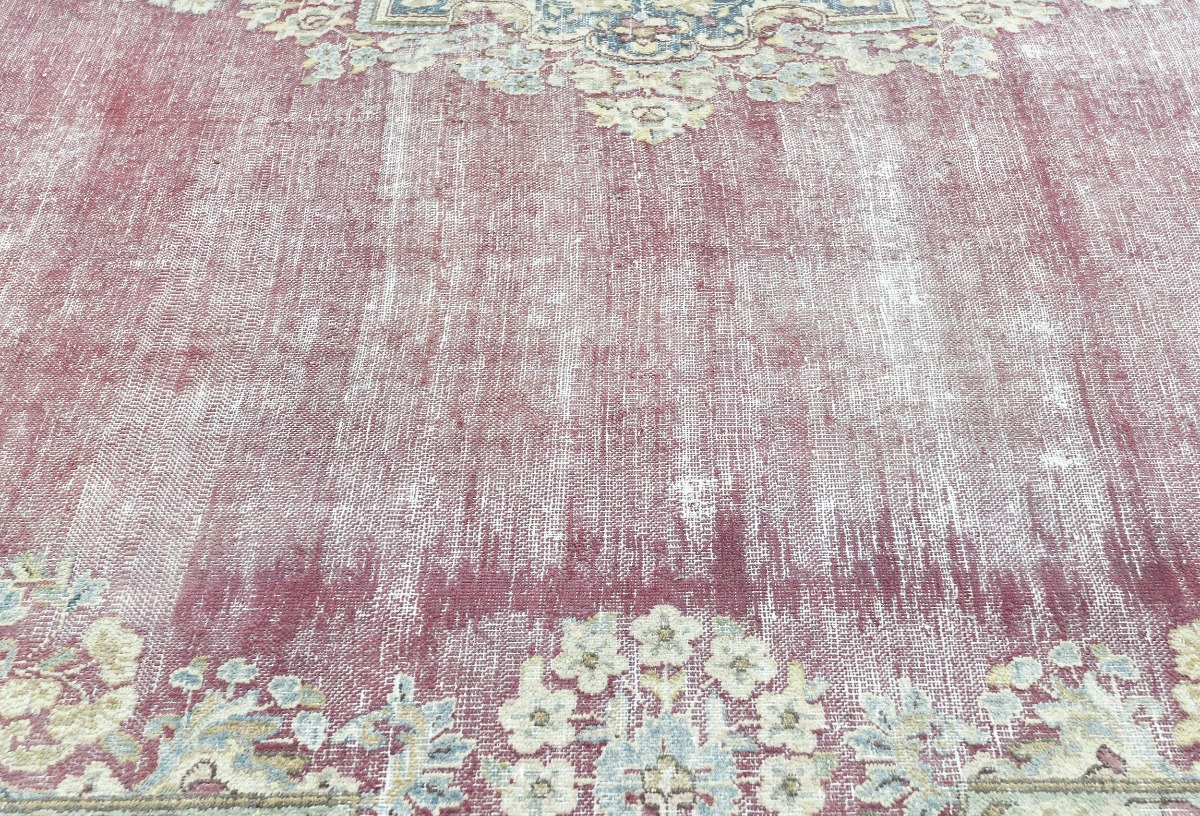 Antique Muted Red Floral 10X13 Distressed Vintage Oriental Rug