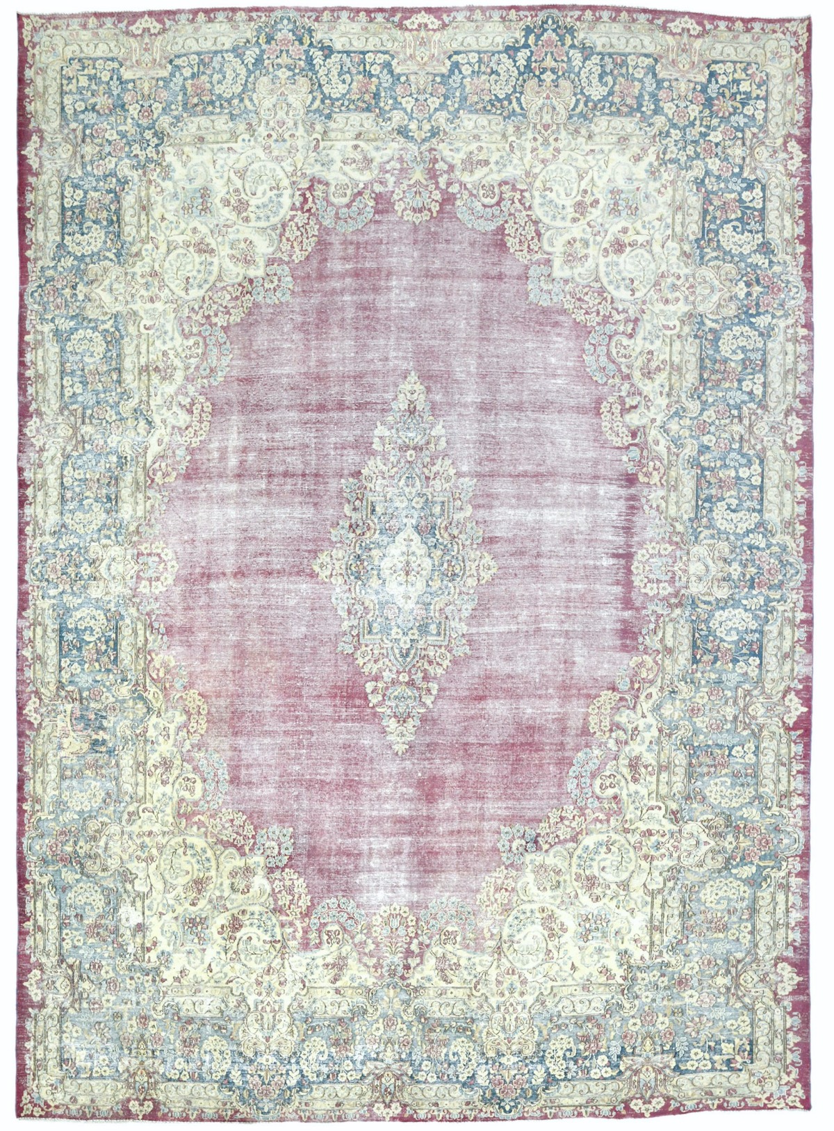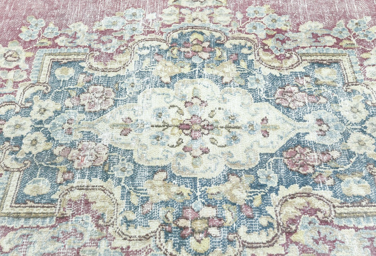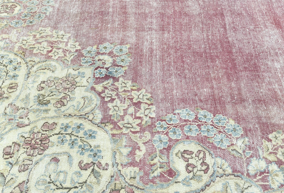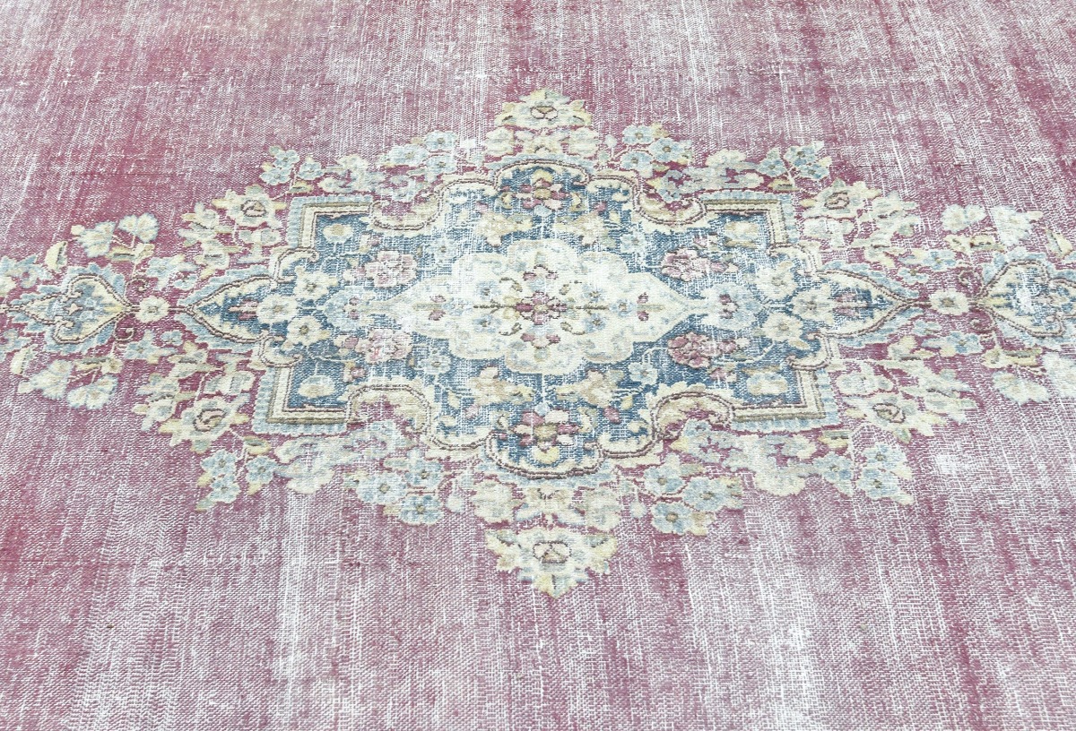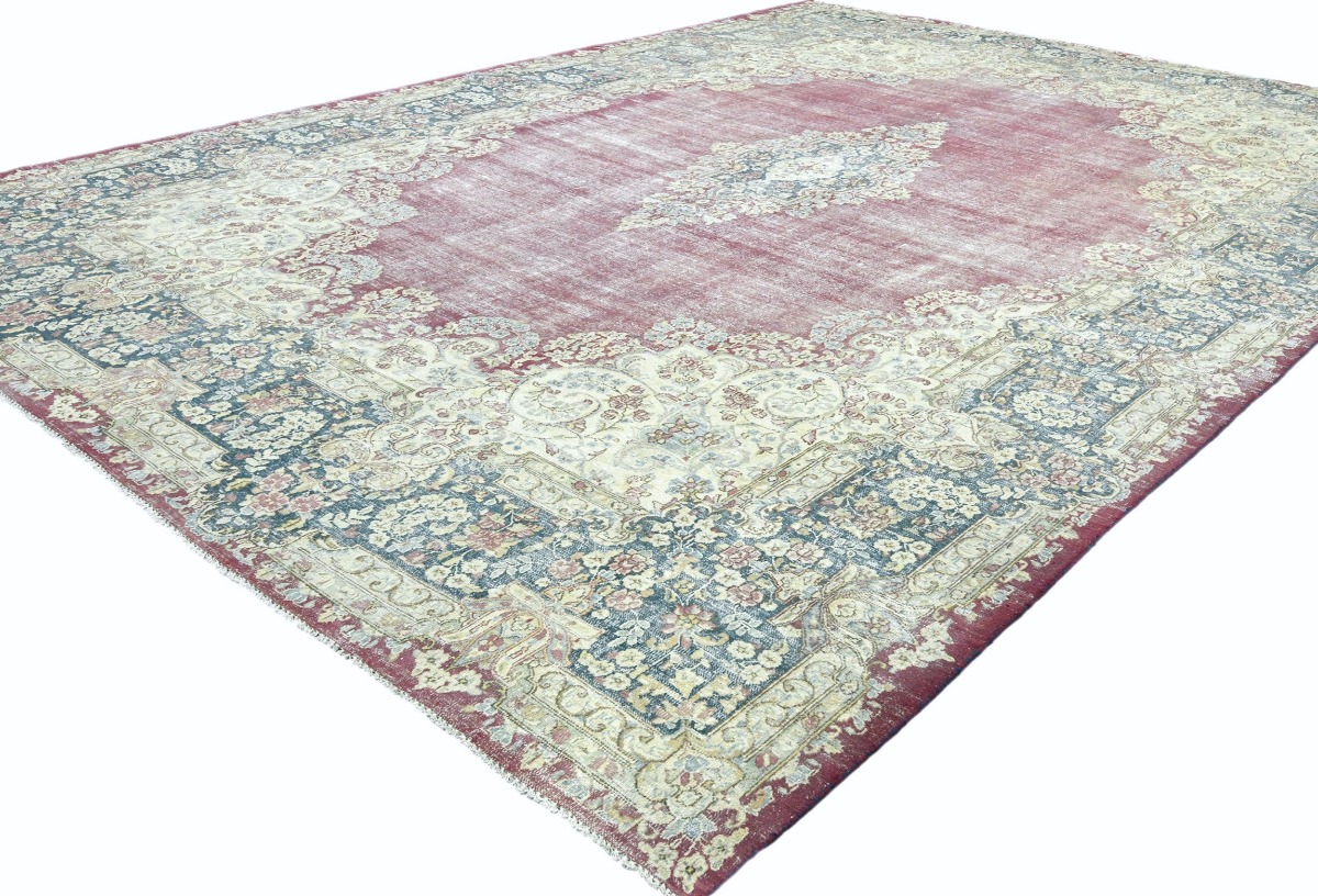 Antique Muted Red Floral 10X13 Distressed Vintage Oriental Rug