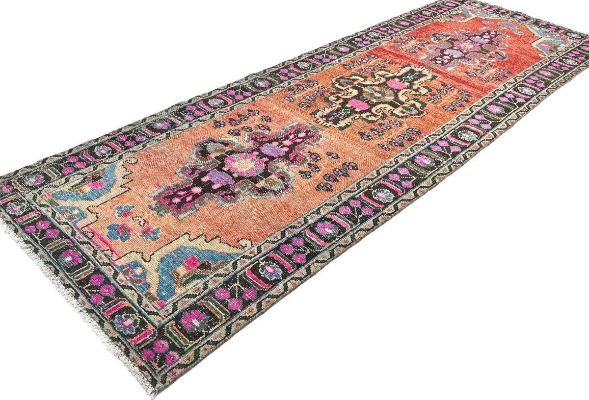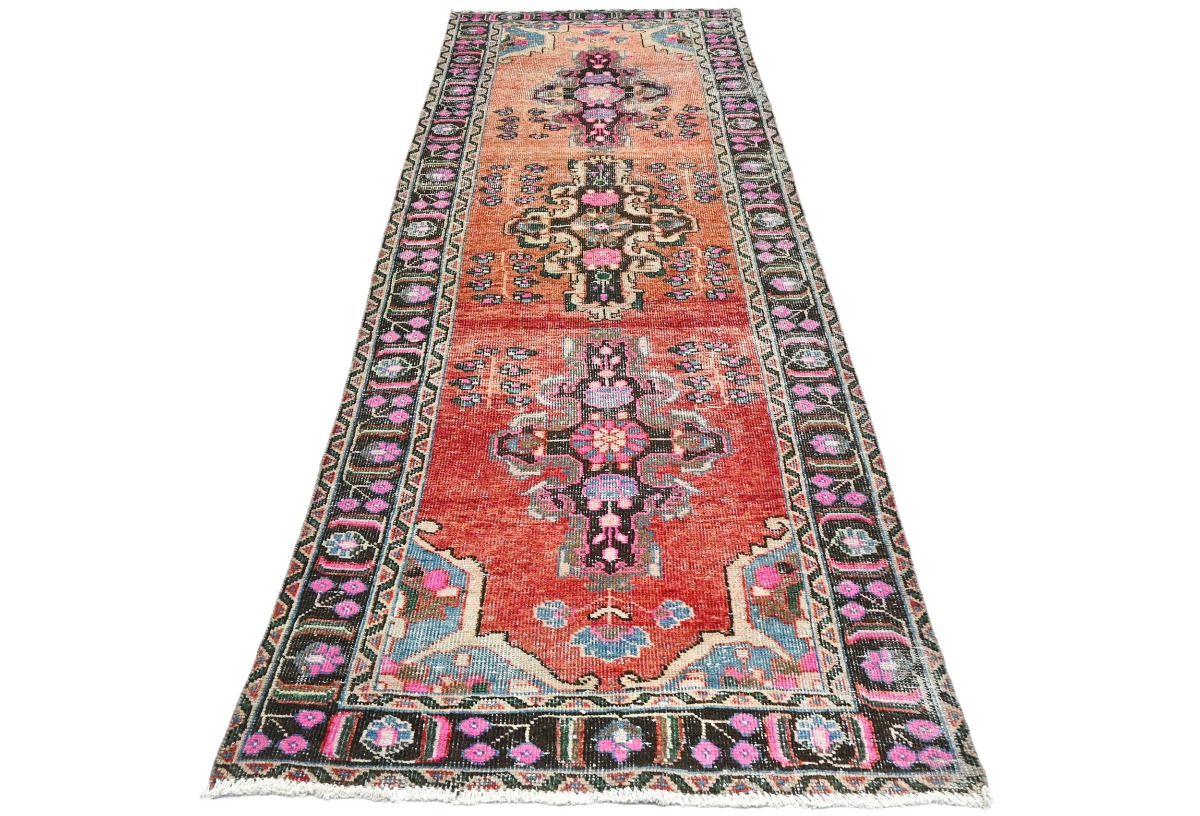 This genuine 4X10 red new Oriental runner was well-constructed by the hands of master weavers motivated by a variety of stunning artistic designs, to recreate the aged look of the exceptional piece with a richness of color and developed decorative background field. What set this vintage style Oriental area runner from the others are the material and dye used (wool pile and cotton foundation), knot count, ancient designs, fantastic grades, and its regional historical connection: it has deep roots, from the story of the people who produced it to the meaning of the symbols and colors displayed across its canvas that have been praised for centuries. This Indian home décor carpet will be completely cozy and inviting that never will go out of style! Also, this Oriental rug would be among your most valuable treasures, it is a great investment that increase in value over time, and it will last a lifetime because was woven with high-quality, all-natural wool. Eco-friendly, opulent yet affordable; this runner give you an extra pop of character to help define your home environment with elegance and warmth that will capture the eyes and attention of your audience (homeowners, designers, decorators, family and friends). RT-5308