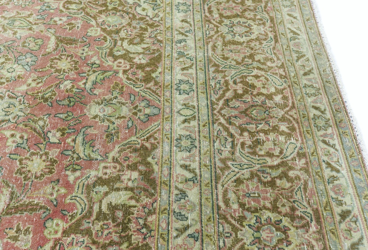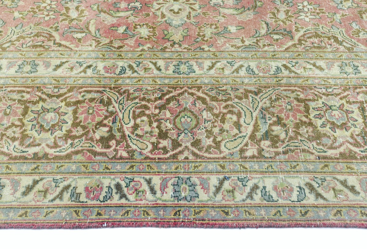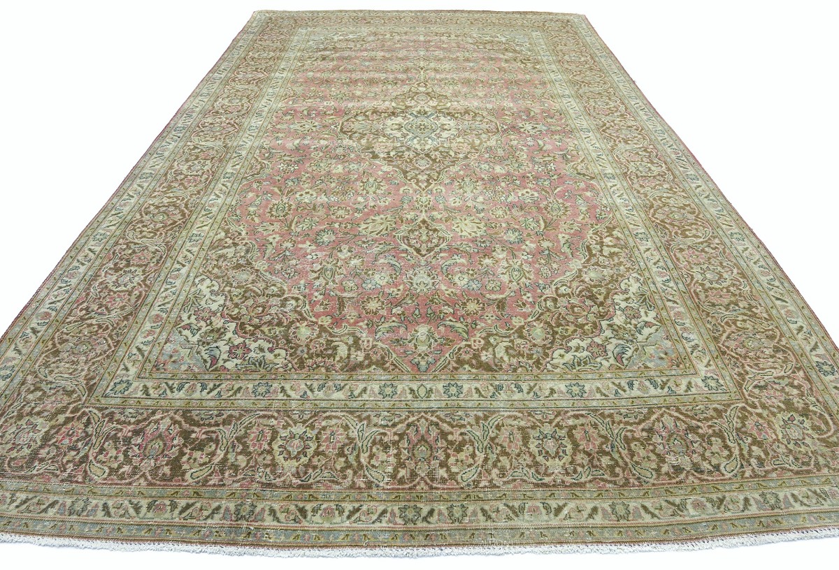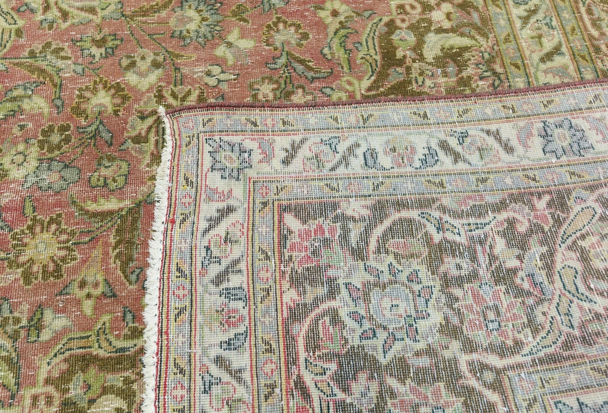 Antique Muted Rose Floral 9'5X15'3 Distressed Vintage Oriental Rug