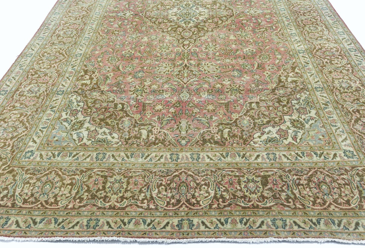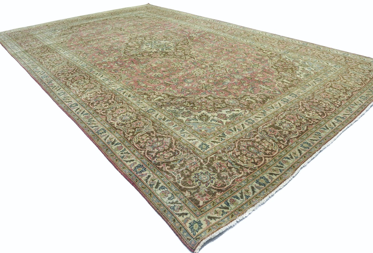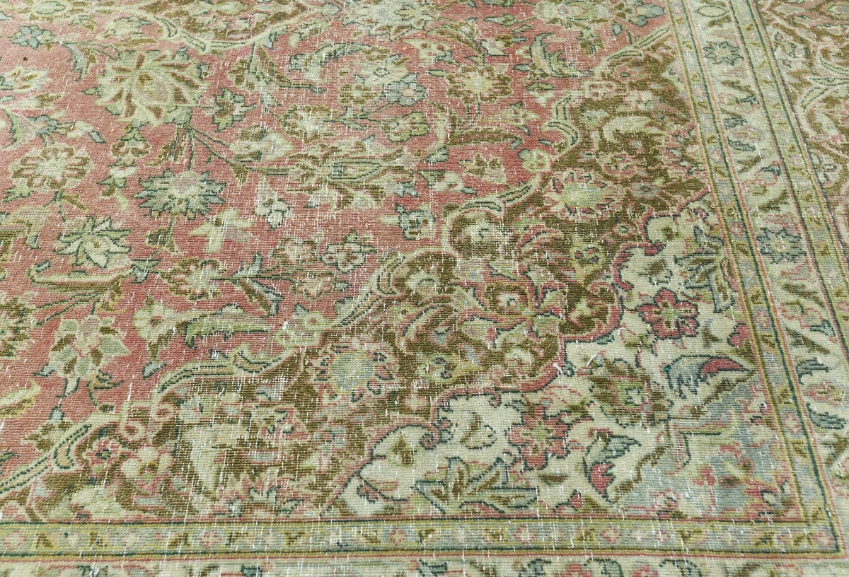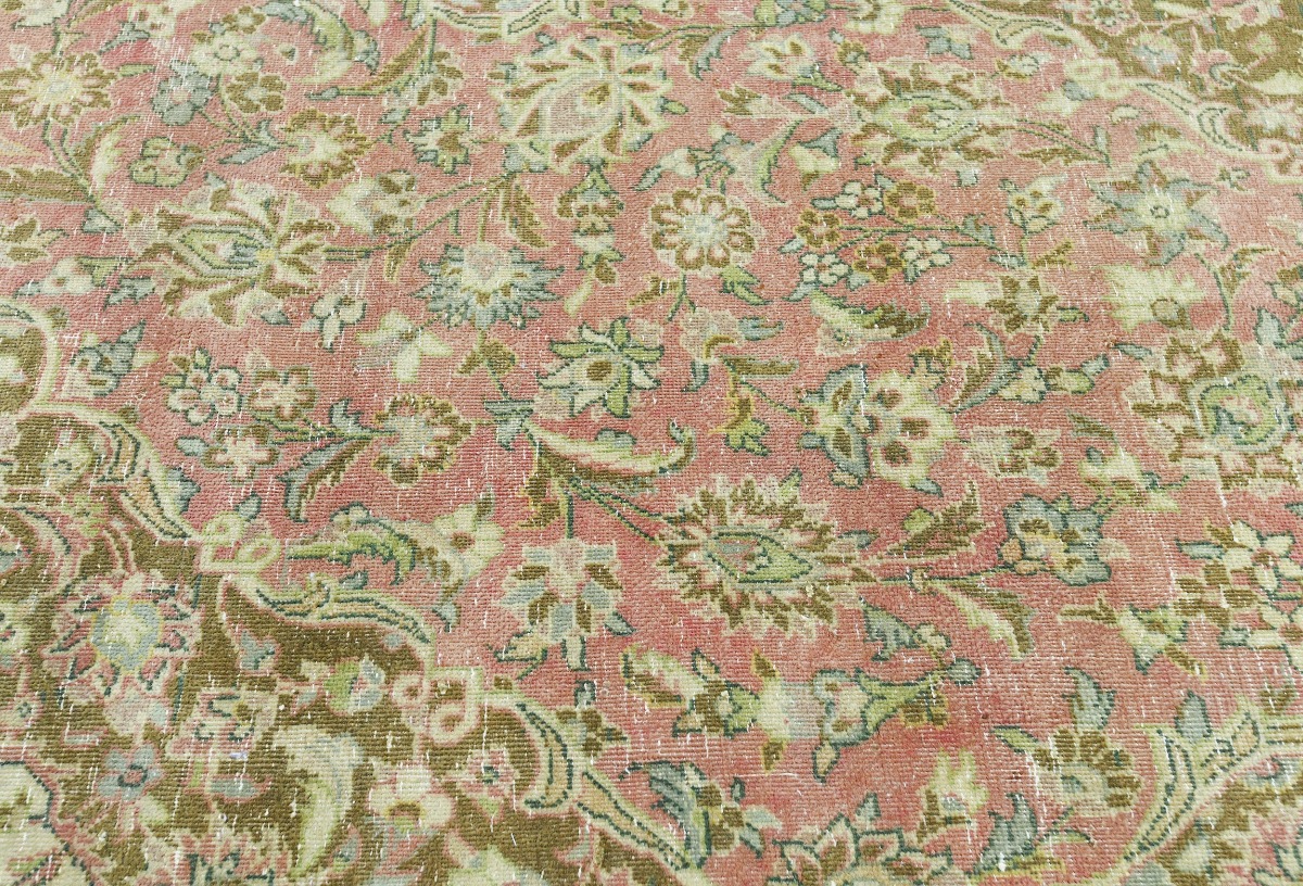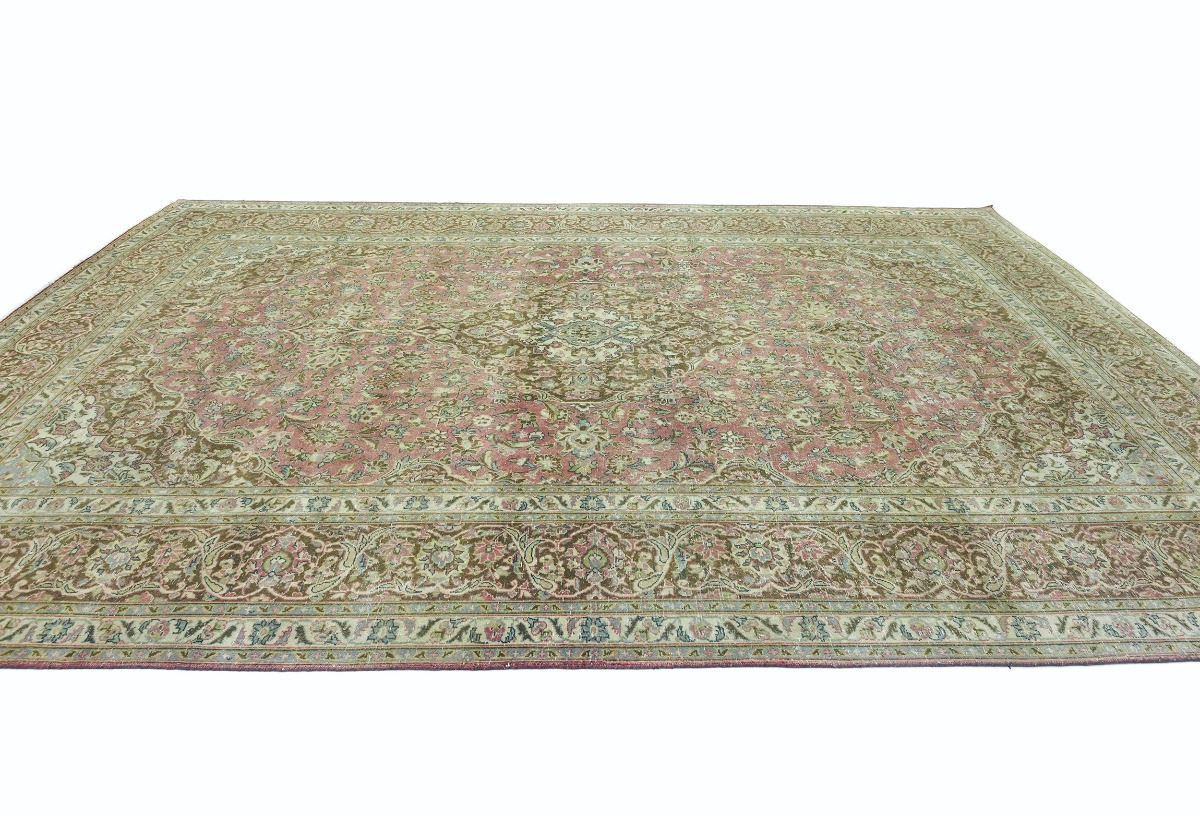 Antique Muted Rose Floral 9'5X15'3 Distressed Vintage Oriental Rug