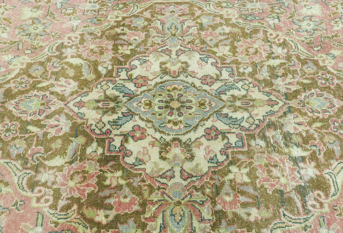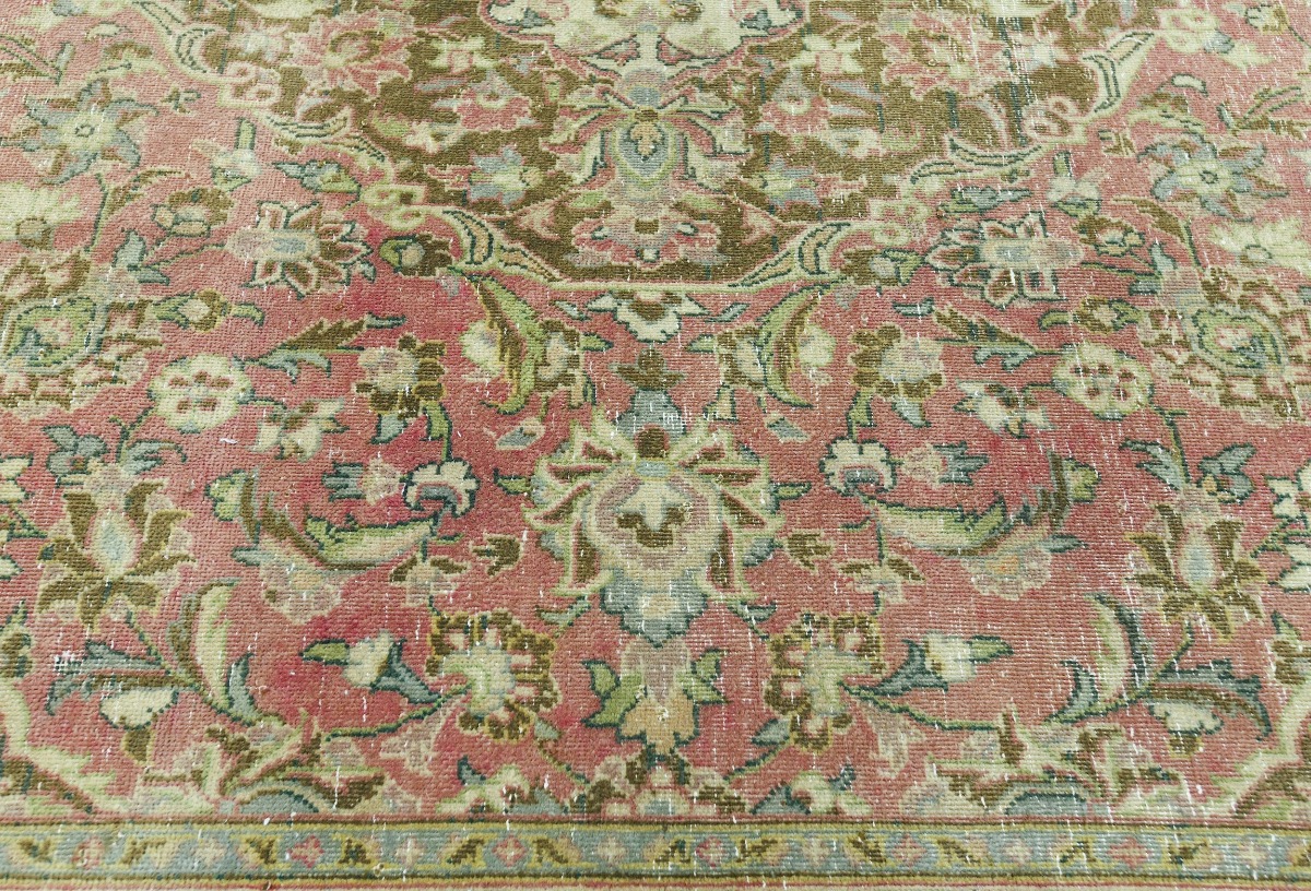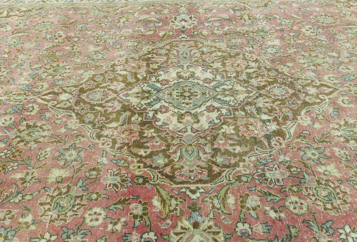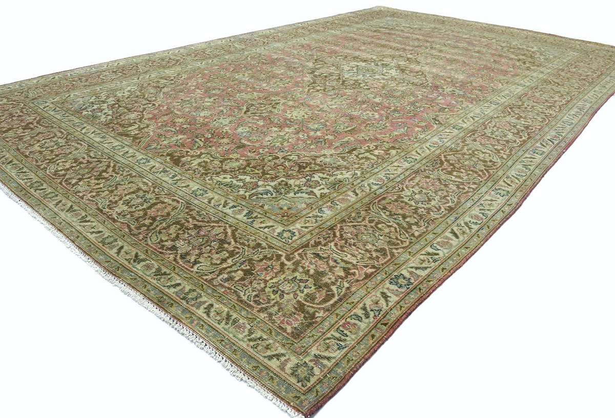 Antique Muted Rose Floral 9'5X15'3 Distressed Vintage Oriental Rug