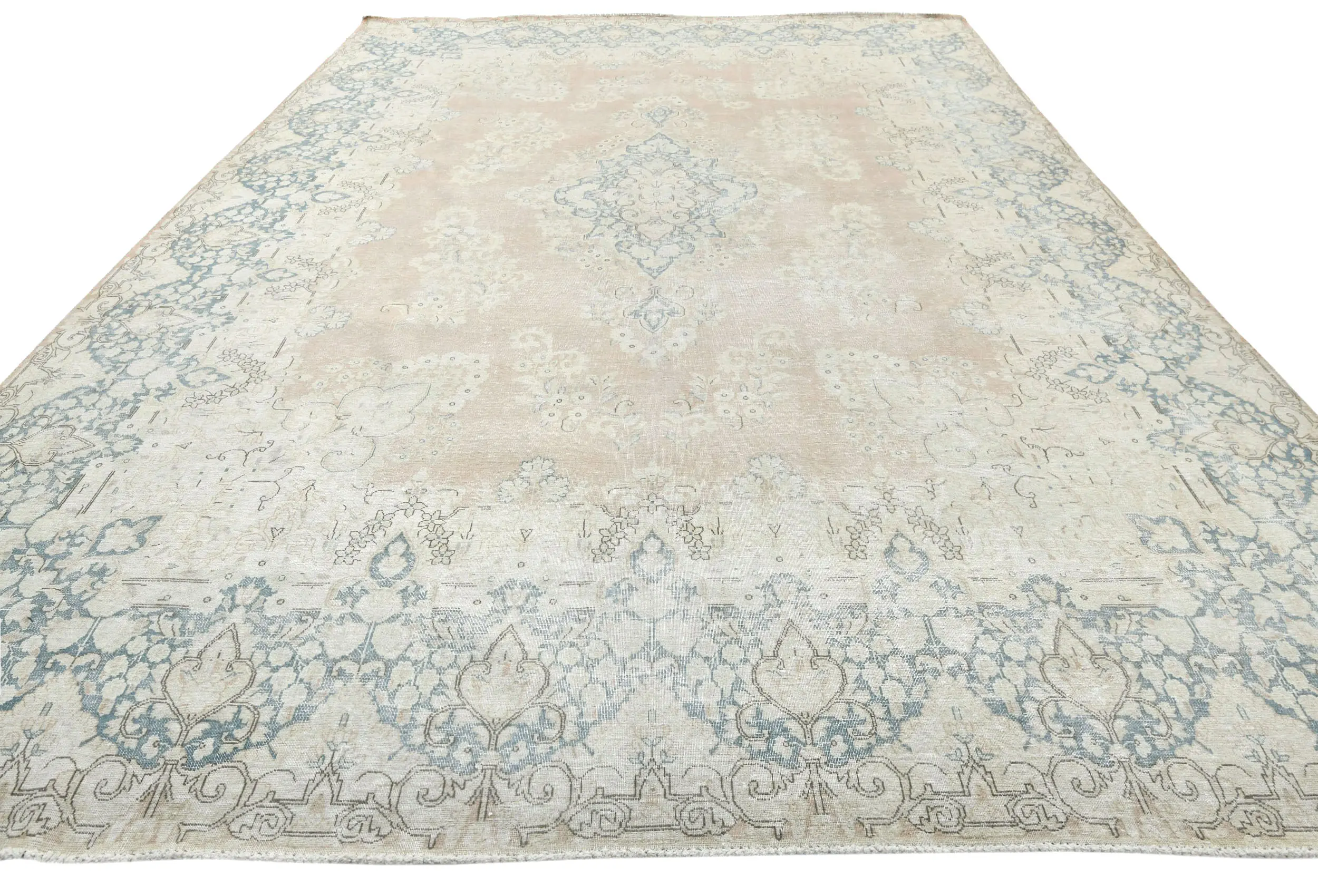 Antique Muted Rust Floral 10X13 Distressed Vintage Oriental Rug