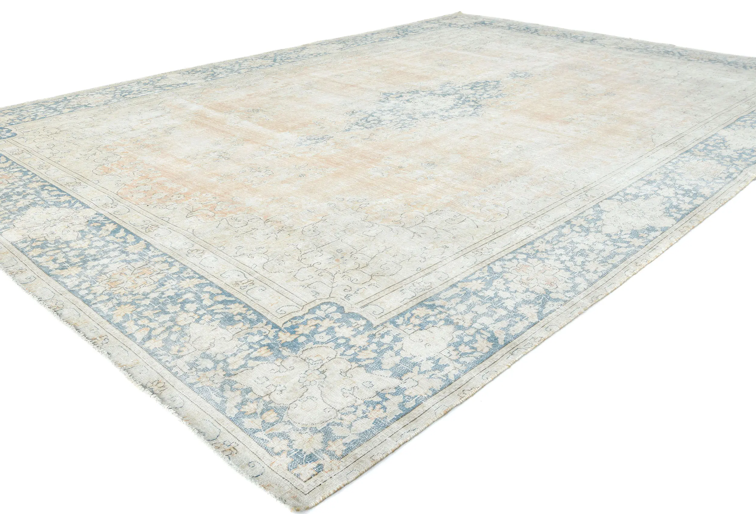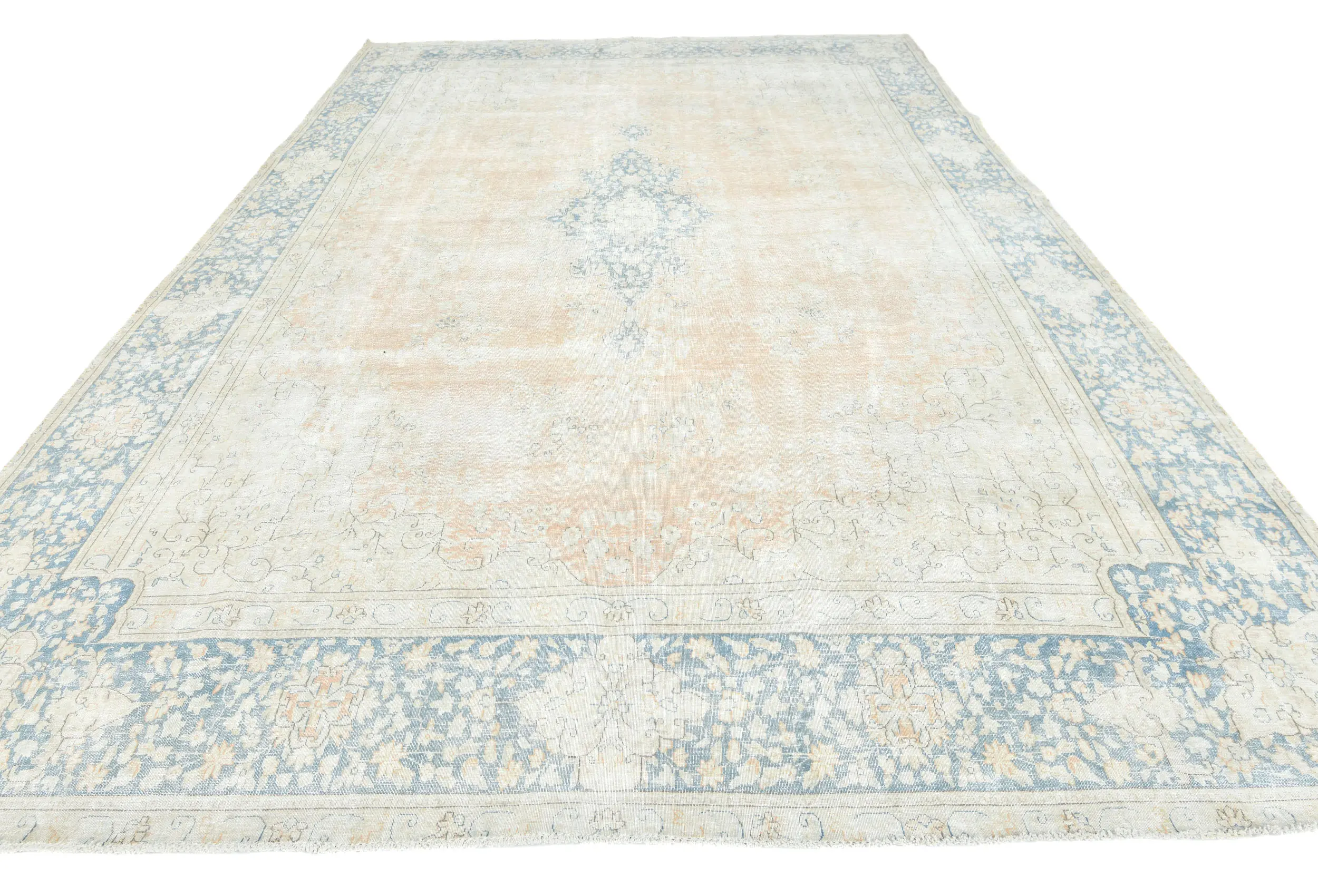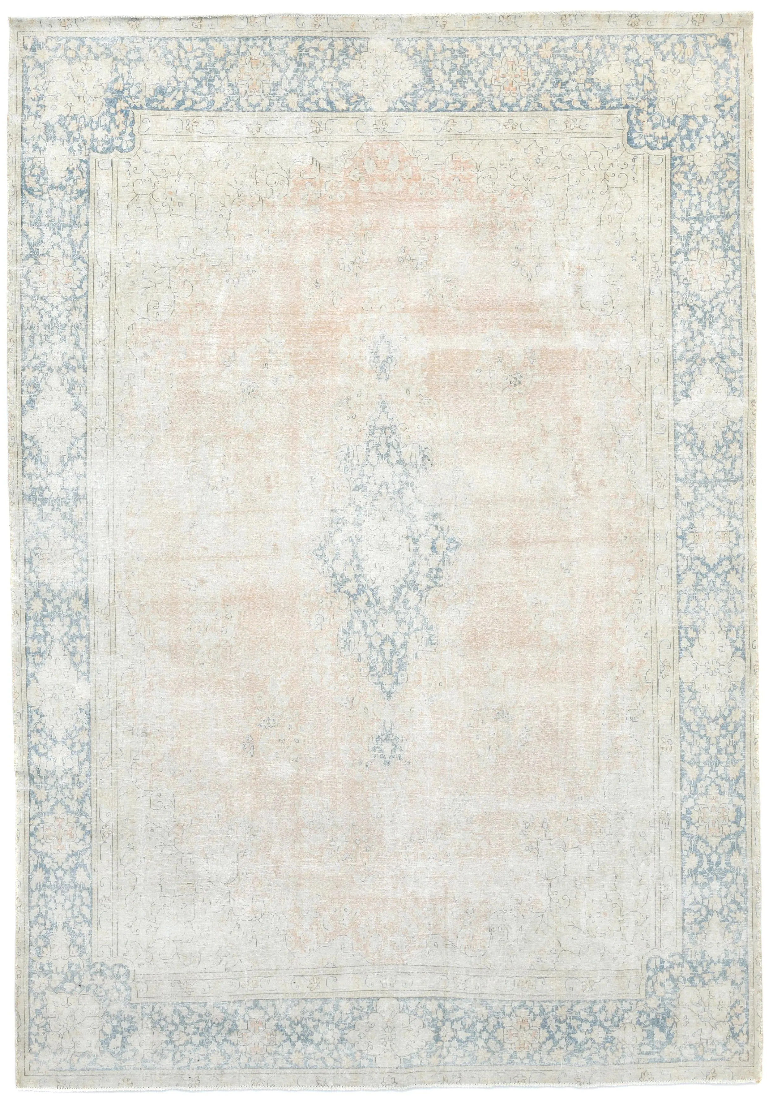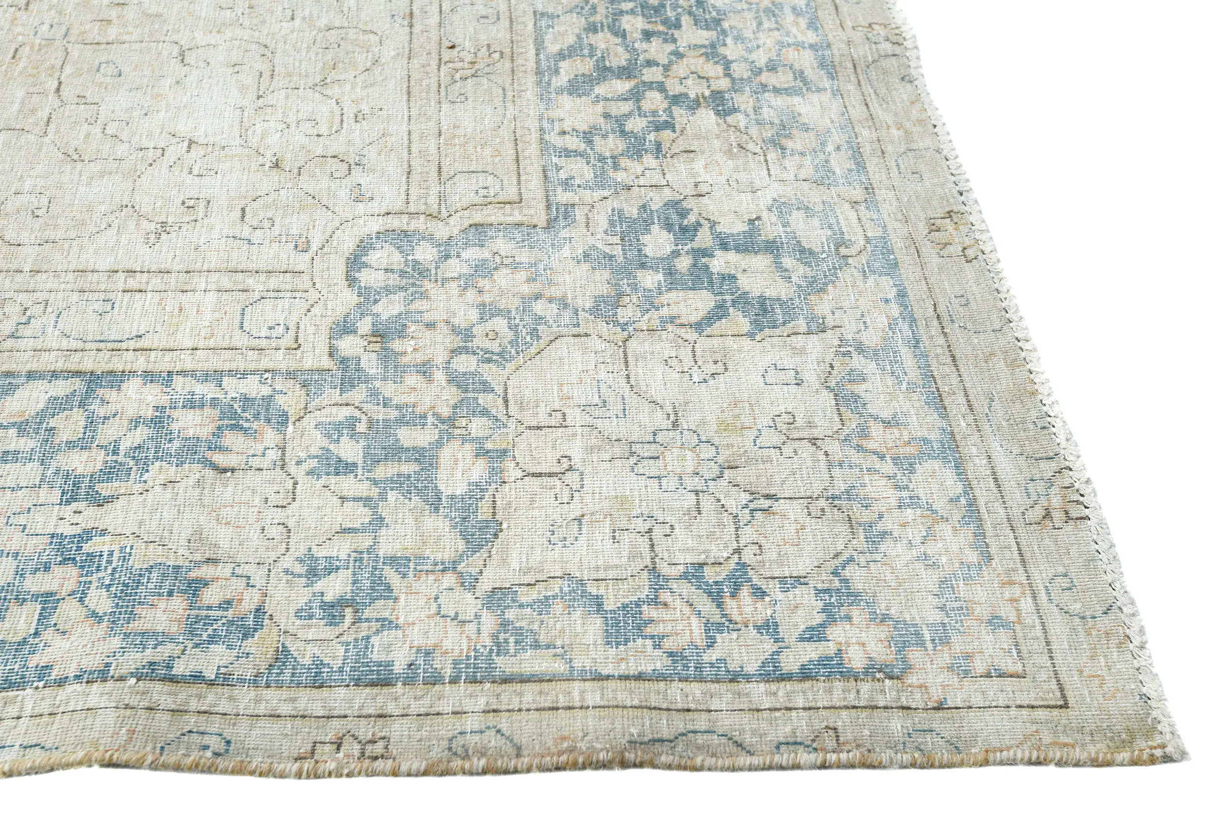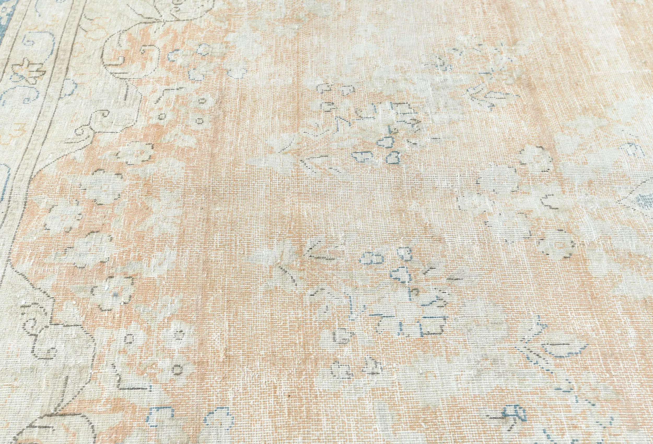 Antique Muted Rust Floral 9X13 Distressed Vintage Oriental Rug