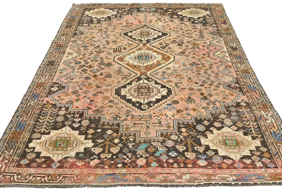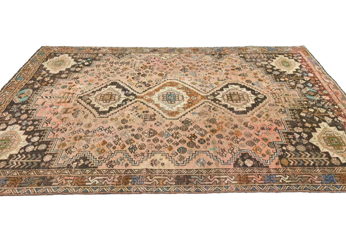 Antique Muted Rusty Pink Tribal 5X8 Distressed Vintage Oriental Rug