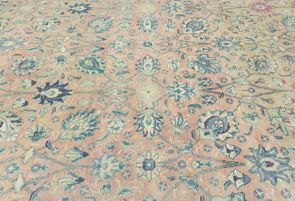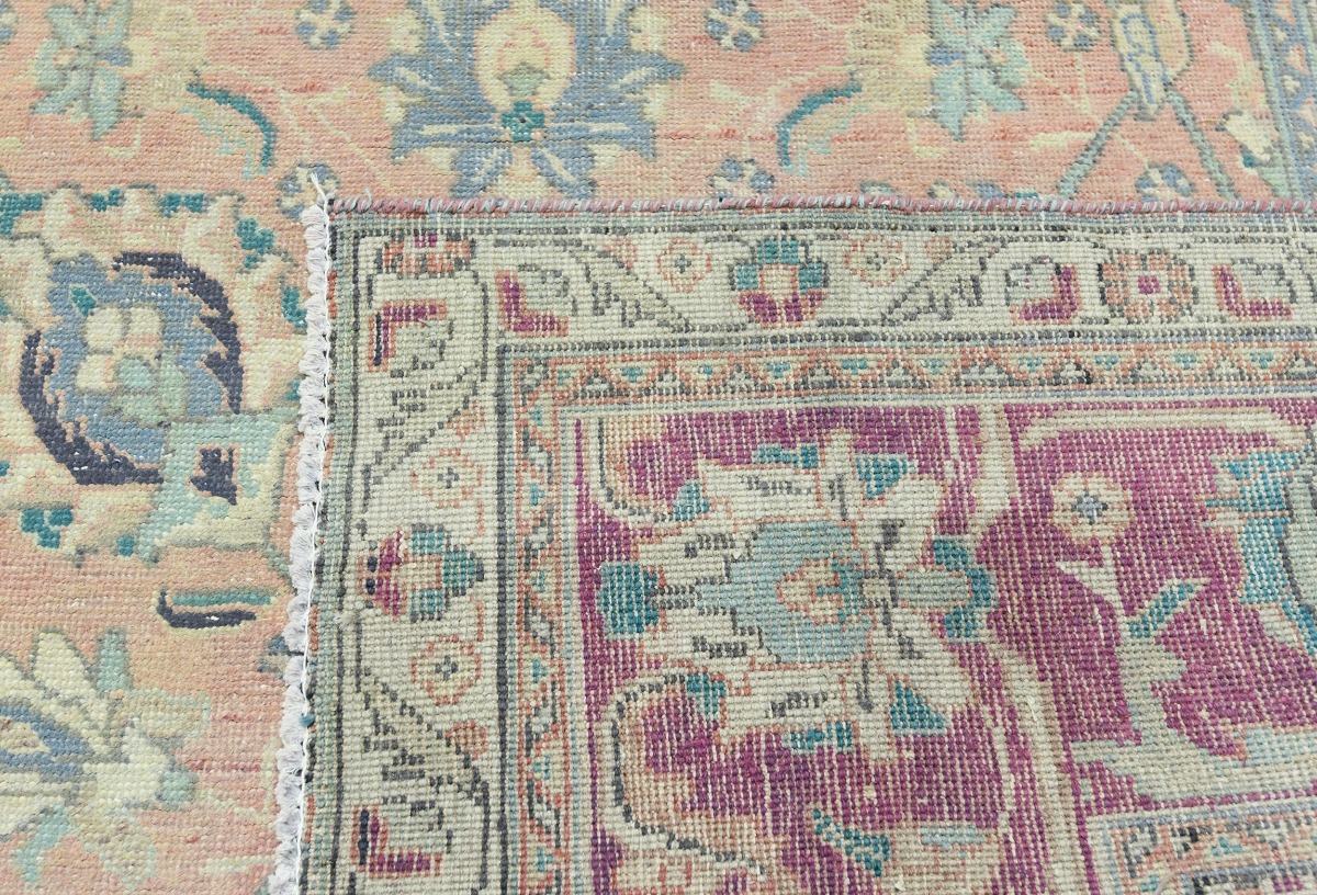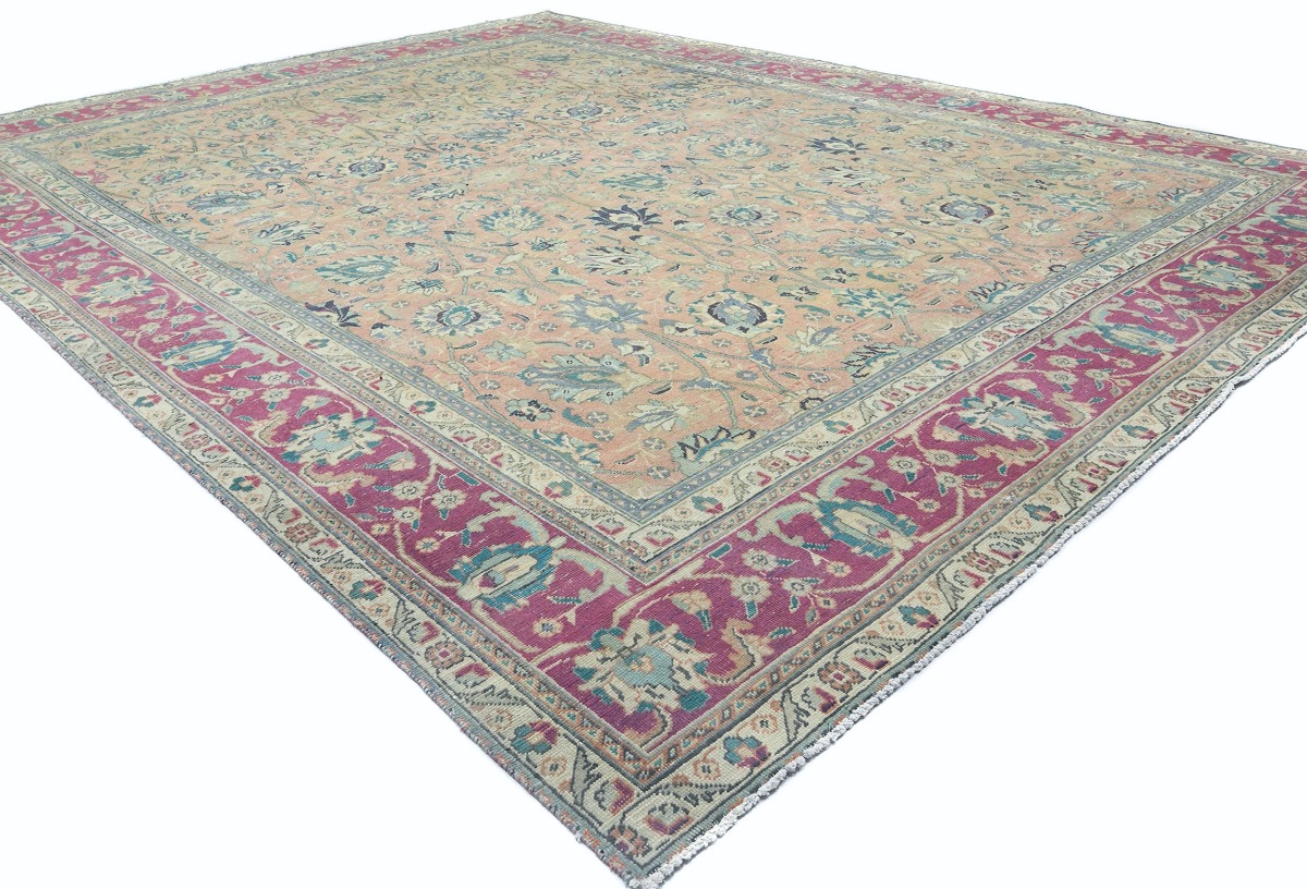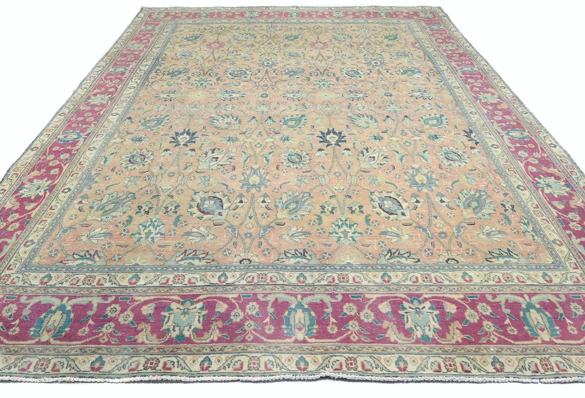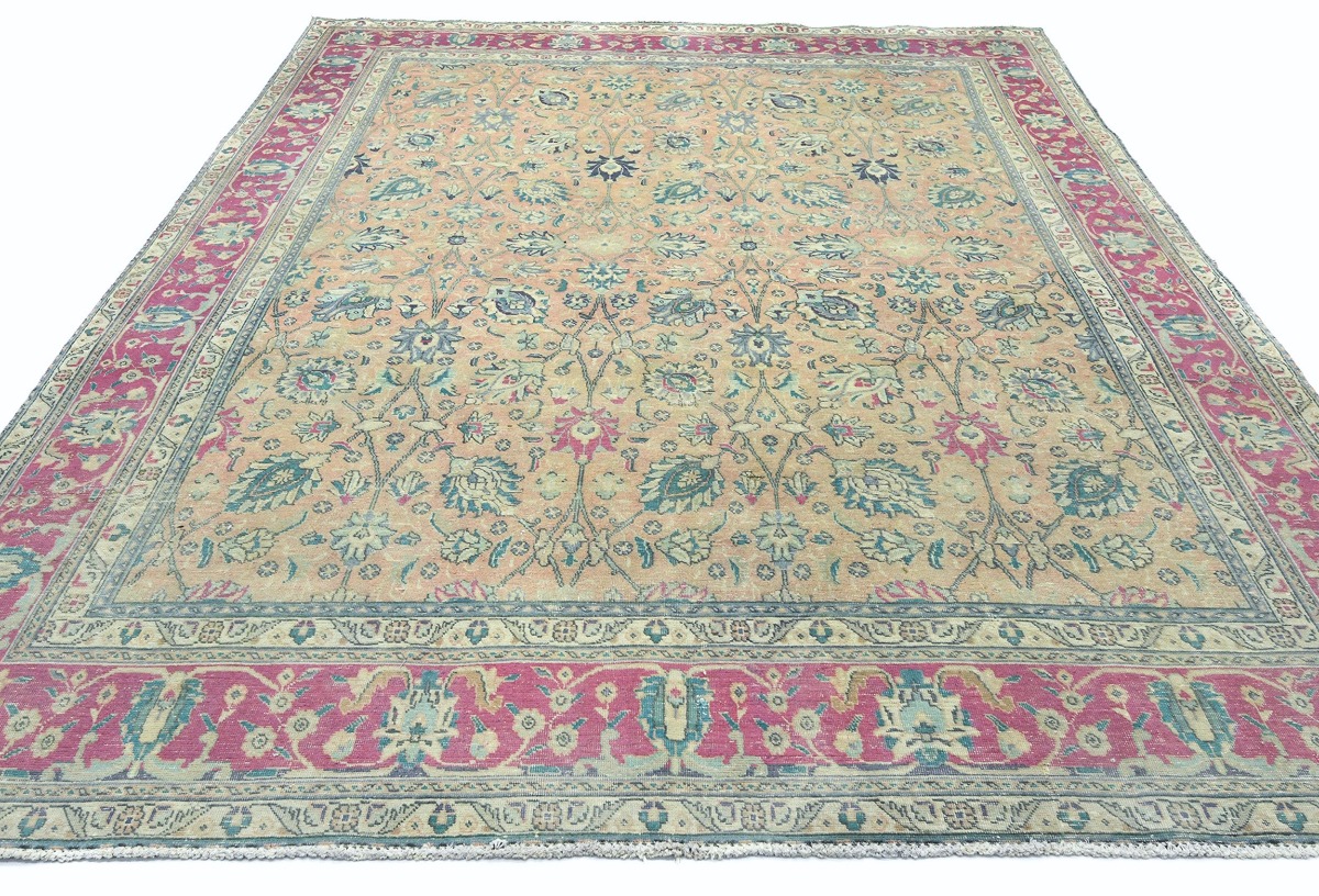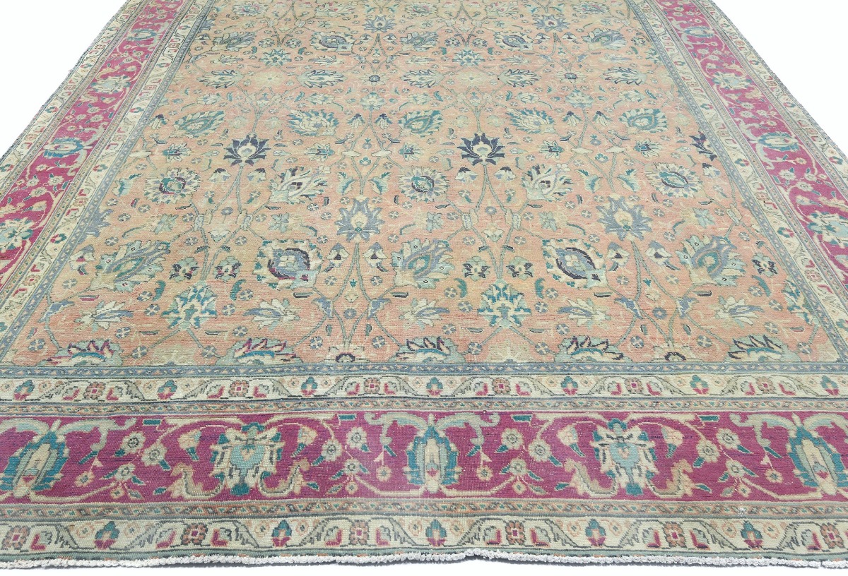 Antique Muted Salmon Floral 10X13 Distressed Vintage Oriental Rug
