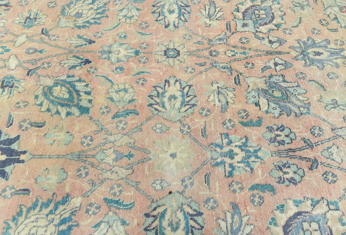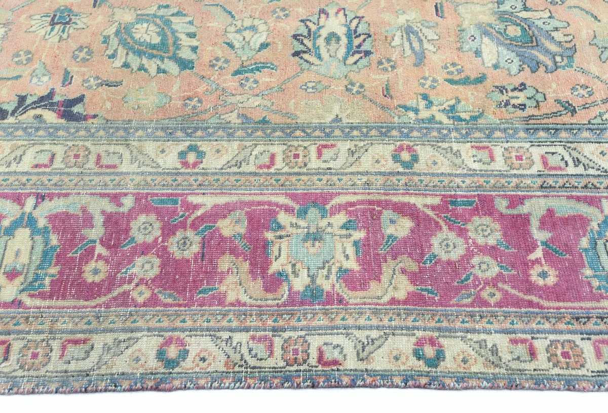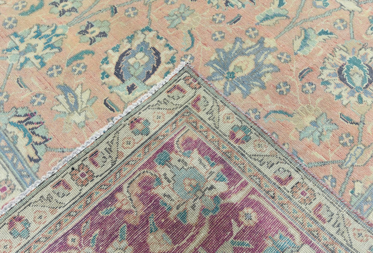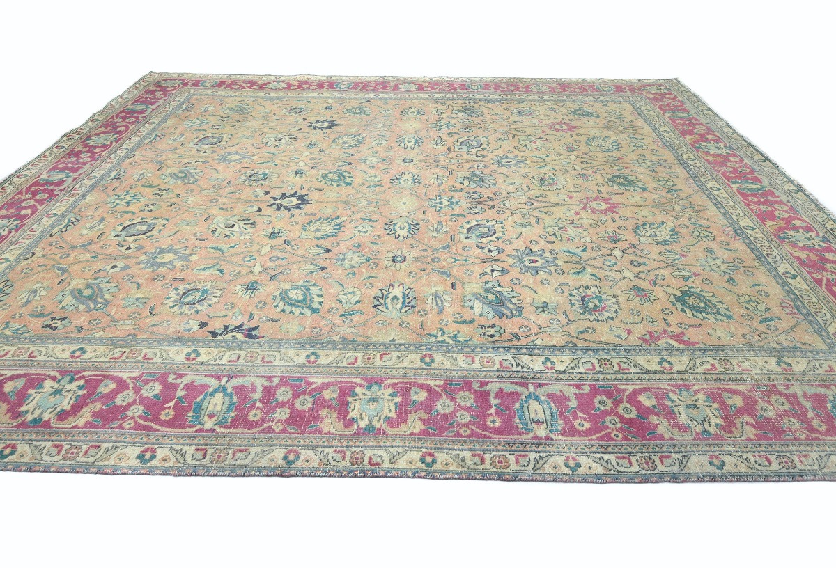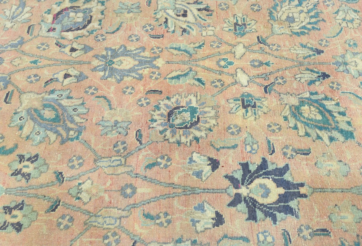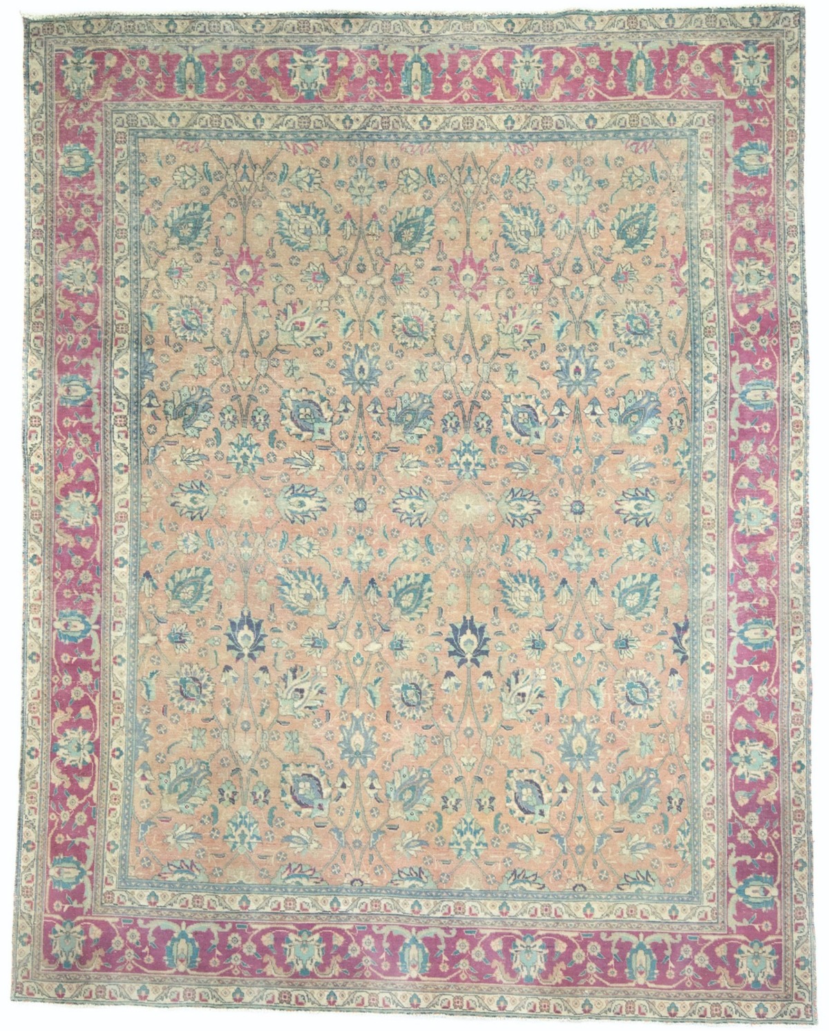 Antique Muted Salmon Floral 10X13 Distressed Vintage Oriental Rug