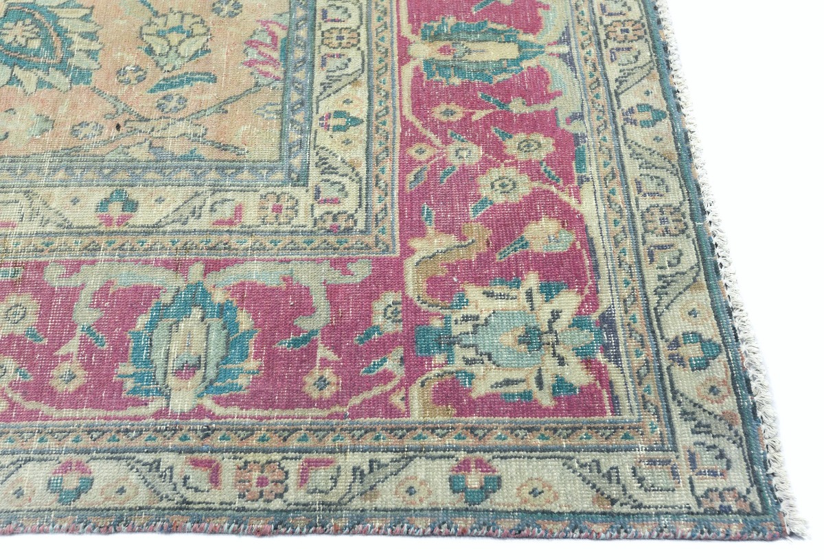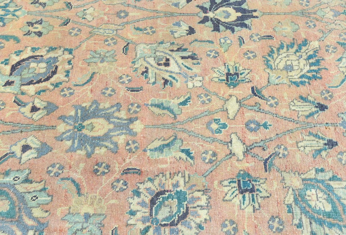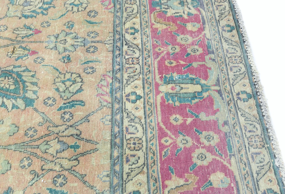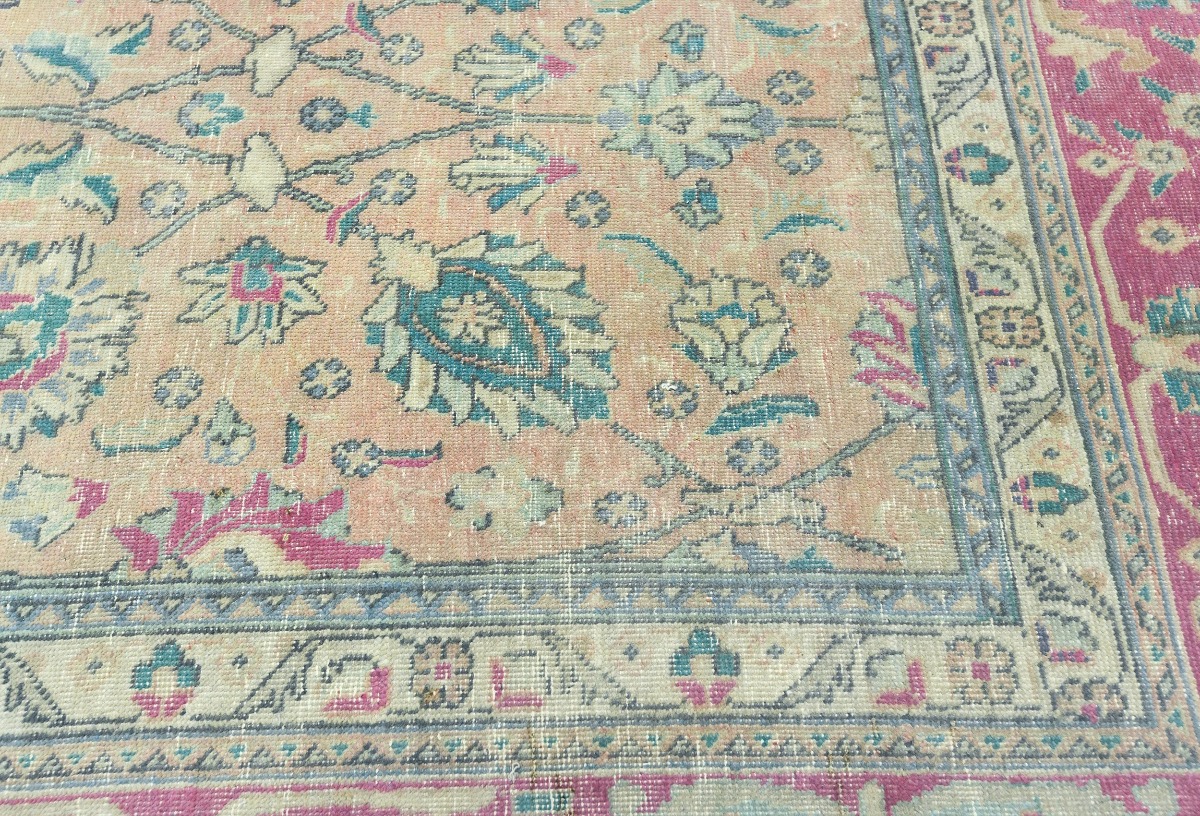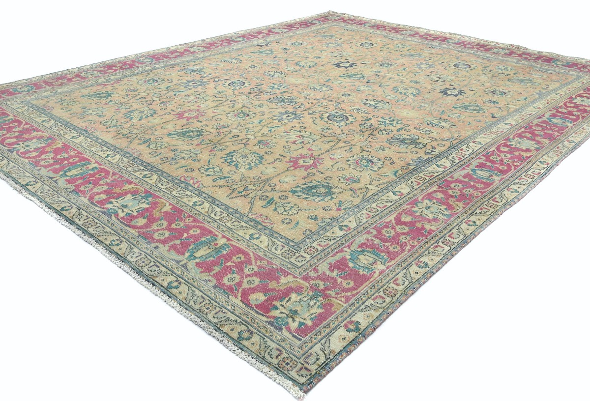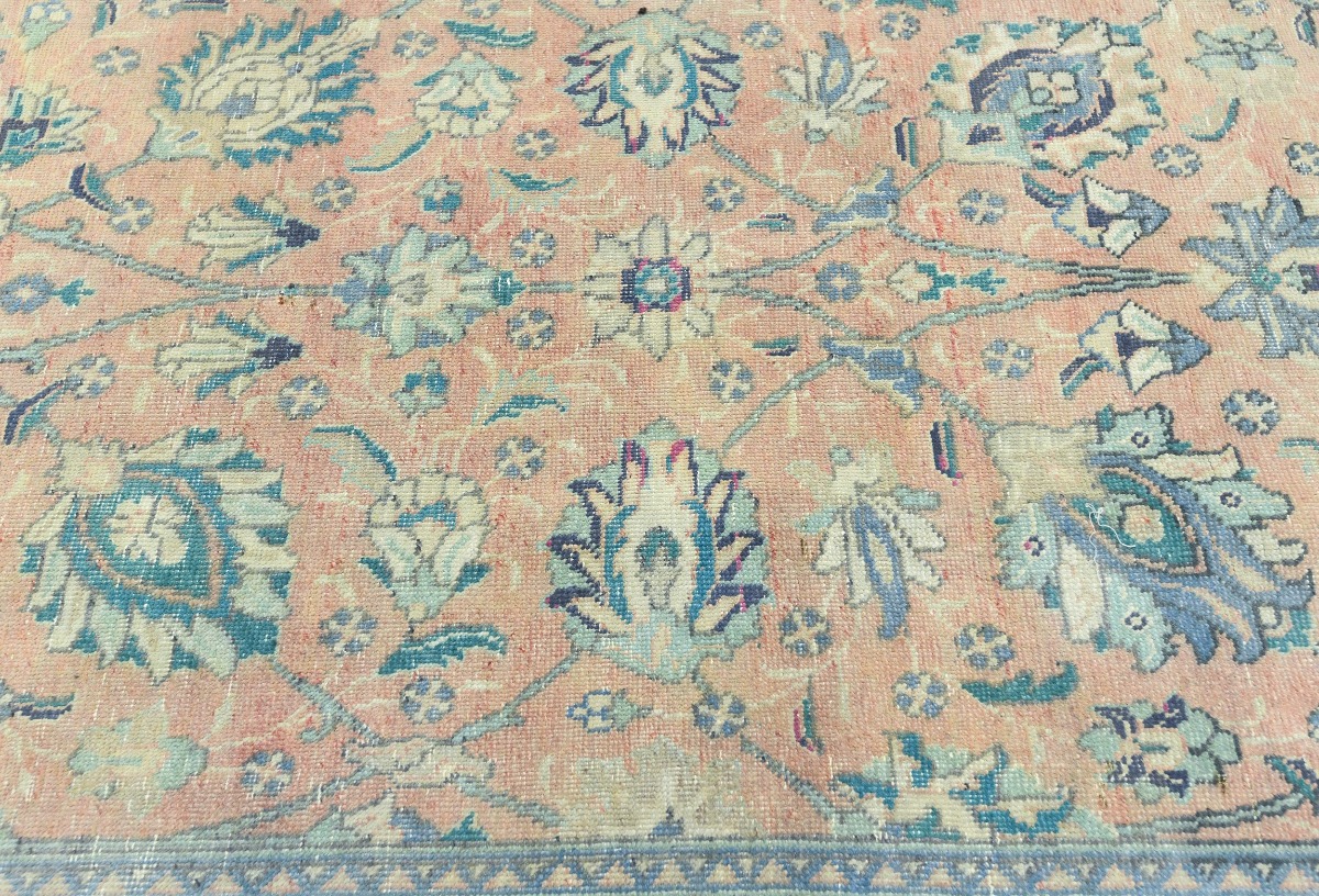 Antique Muted Salmon Floral 10X13 Distressed Vintage Oriental Rug
