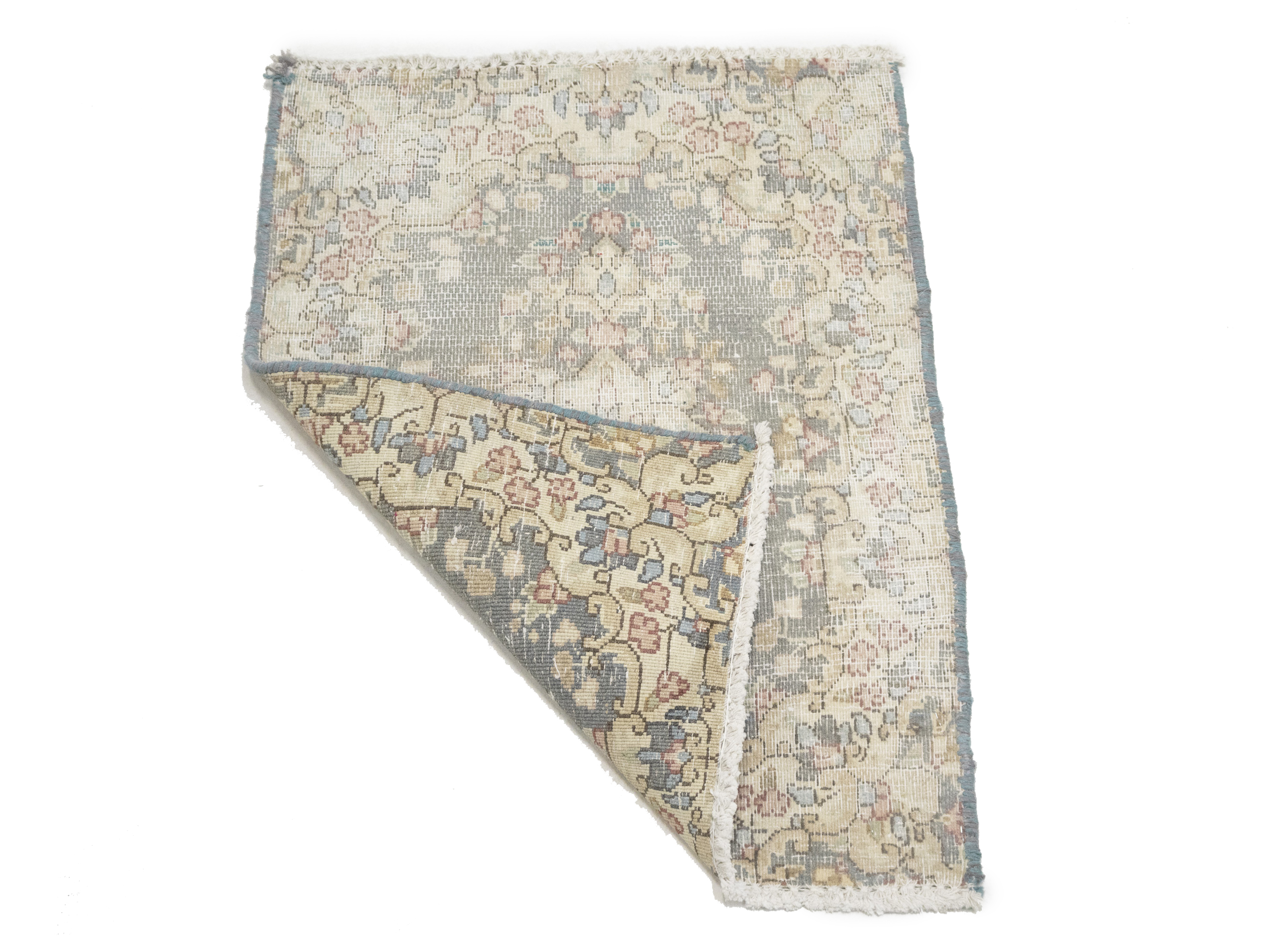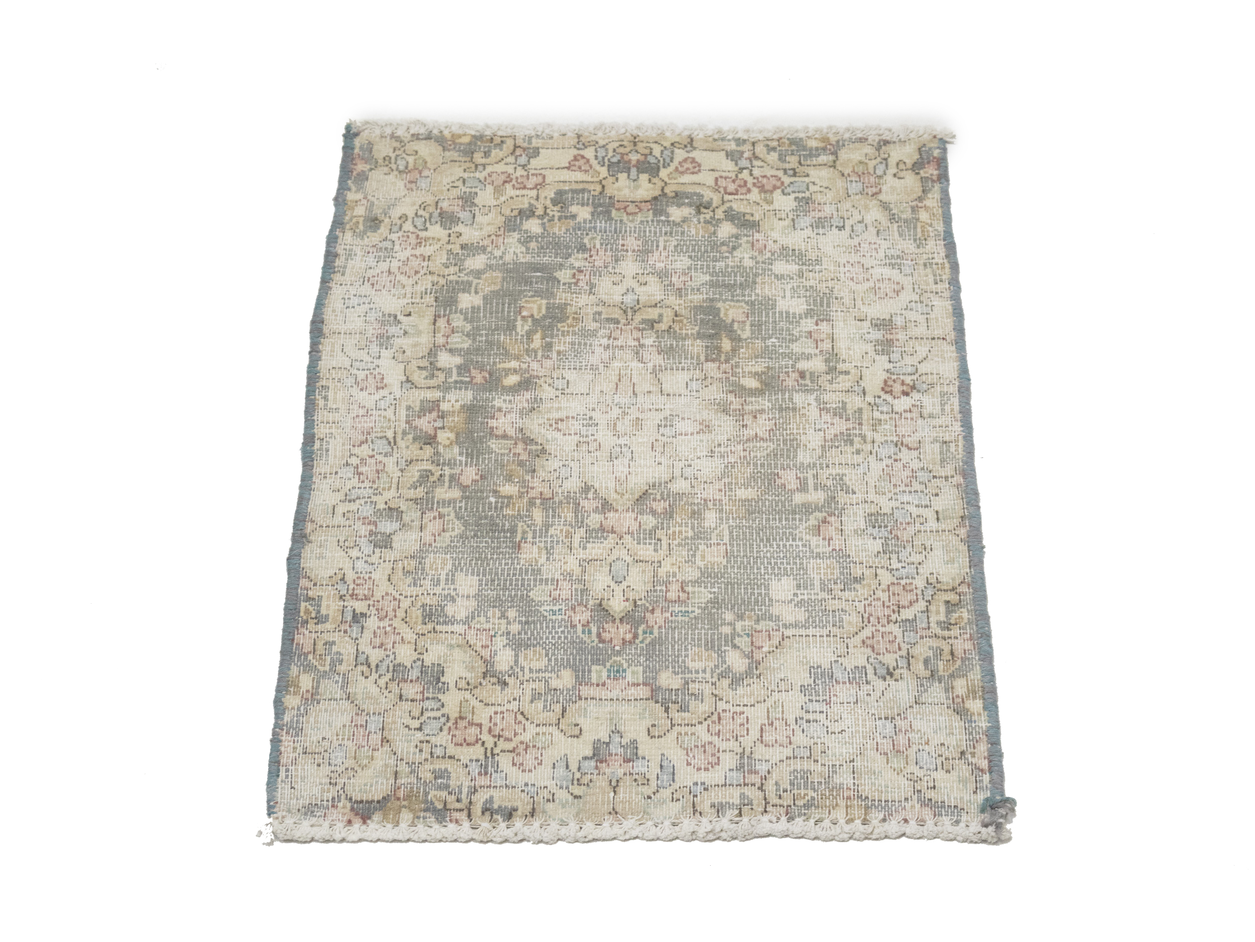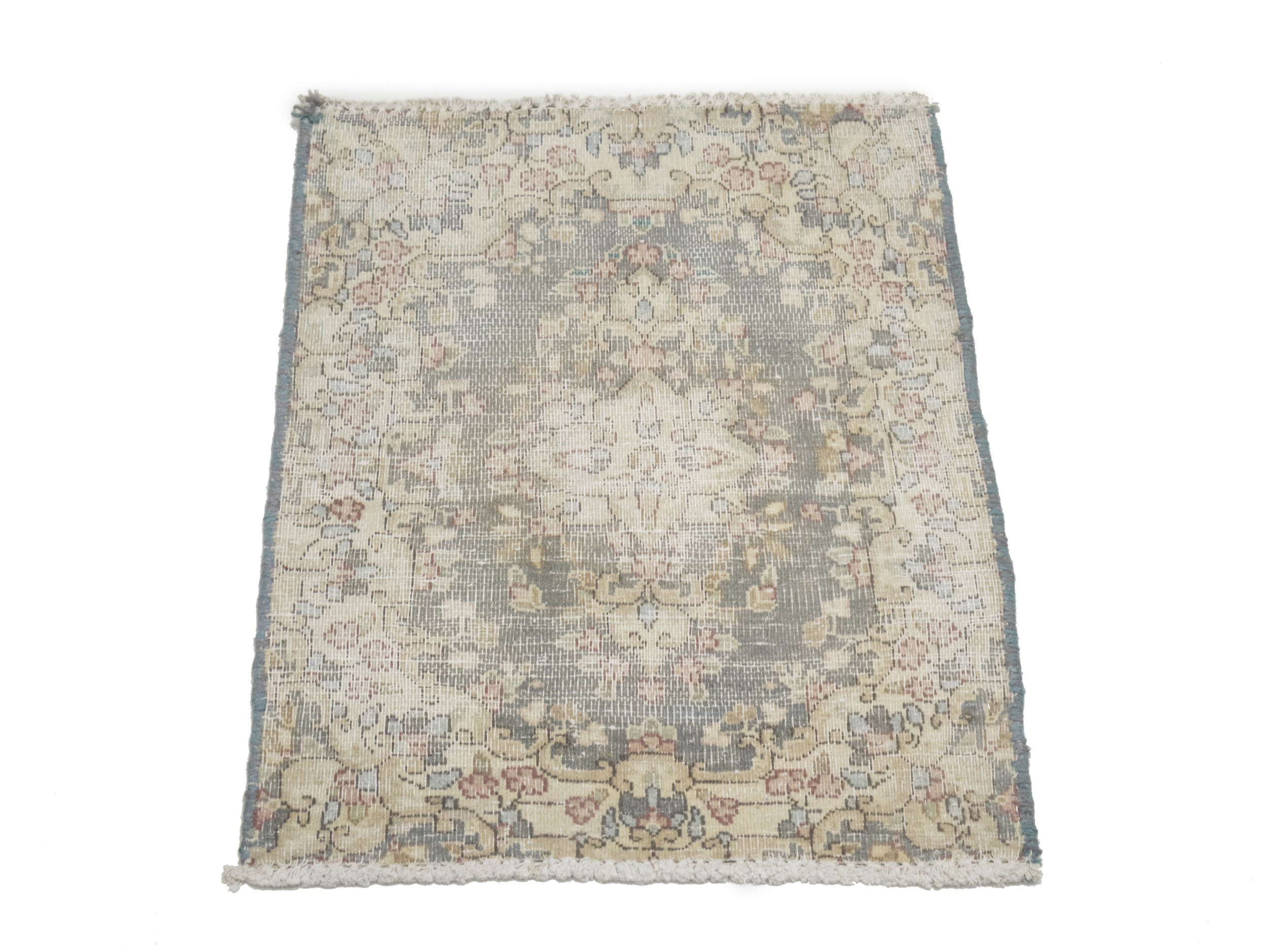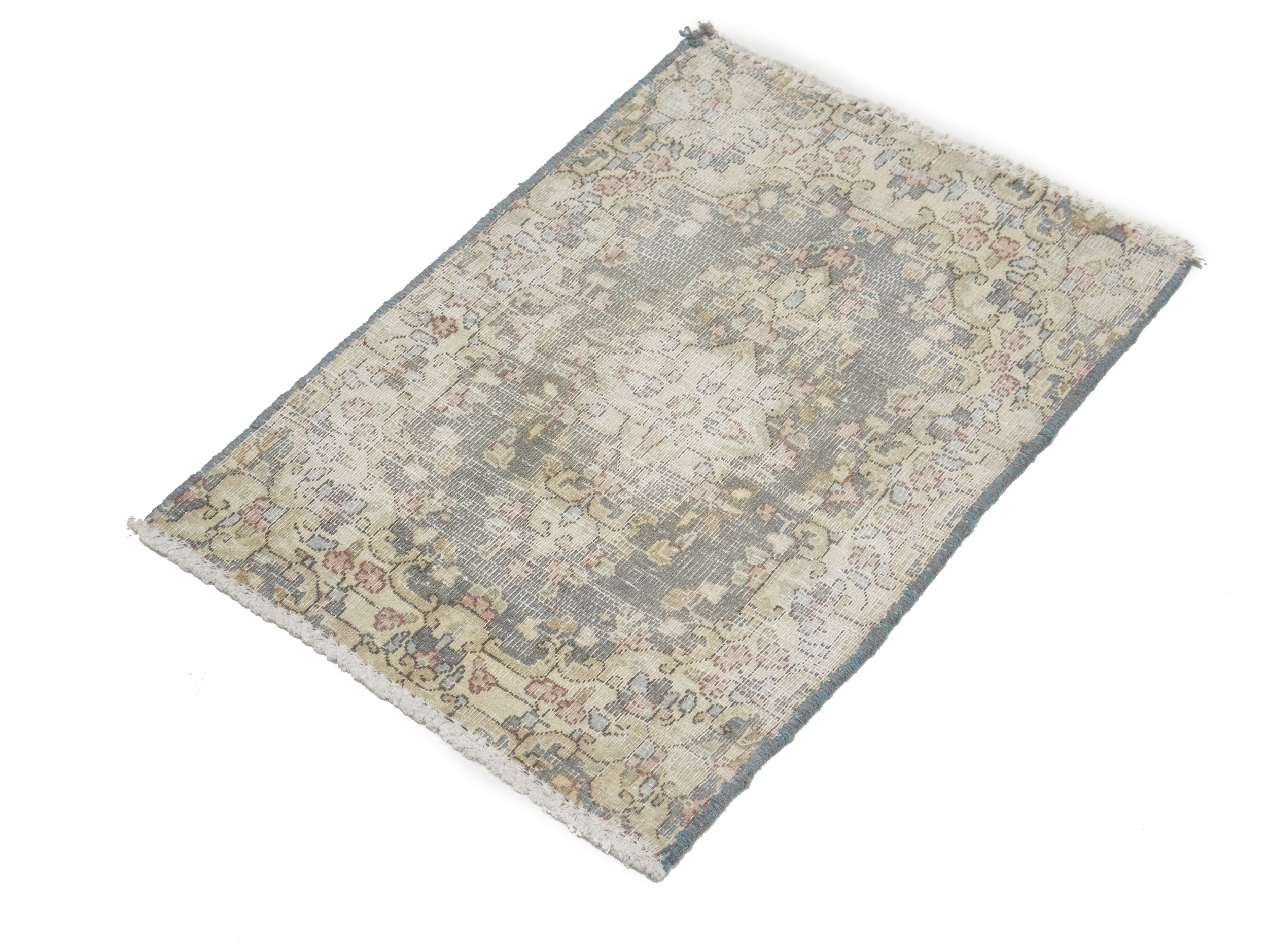 Antique Muted Taupe Floral 1'6X2'0 Distressed Vintage Oriental Rug