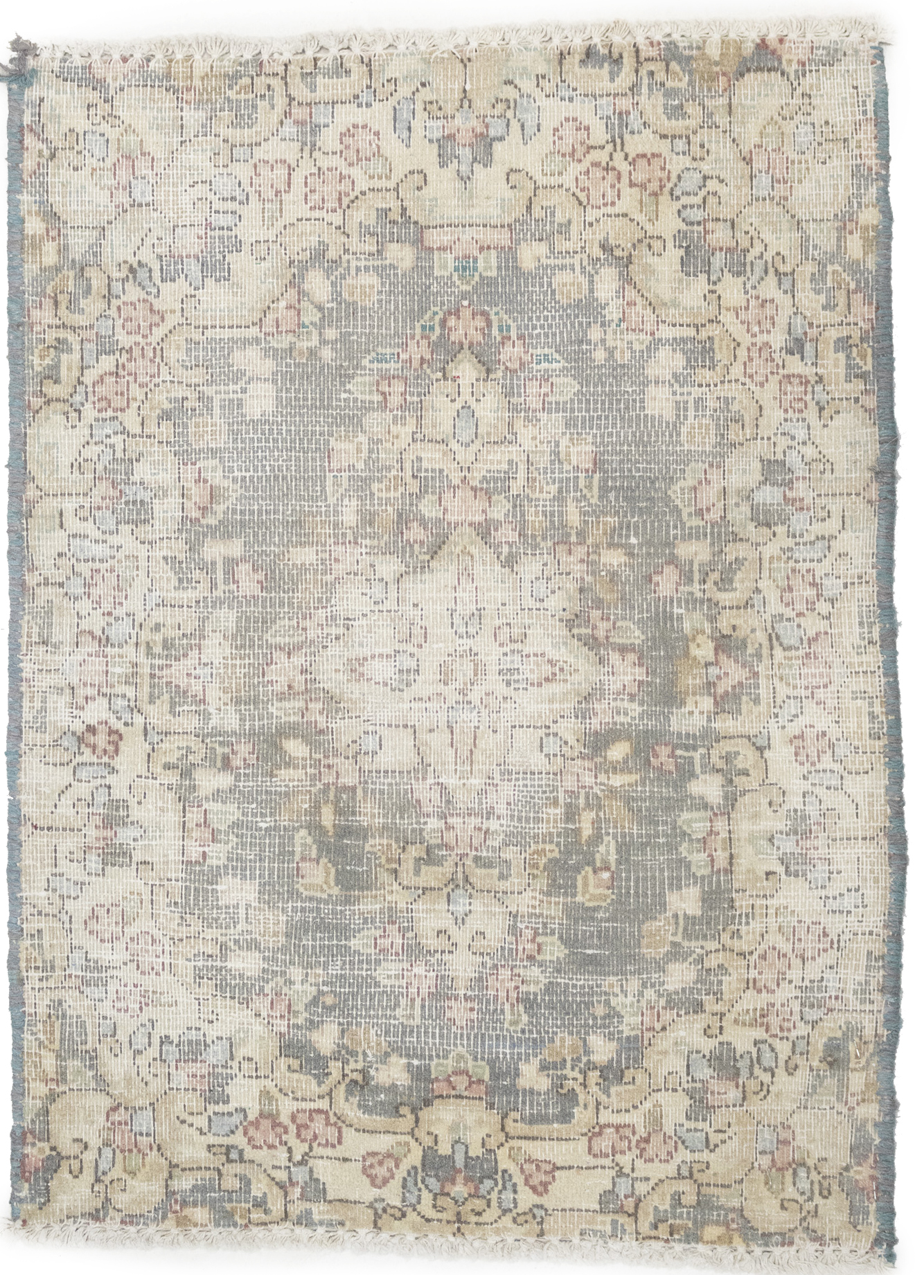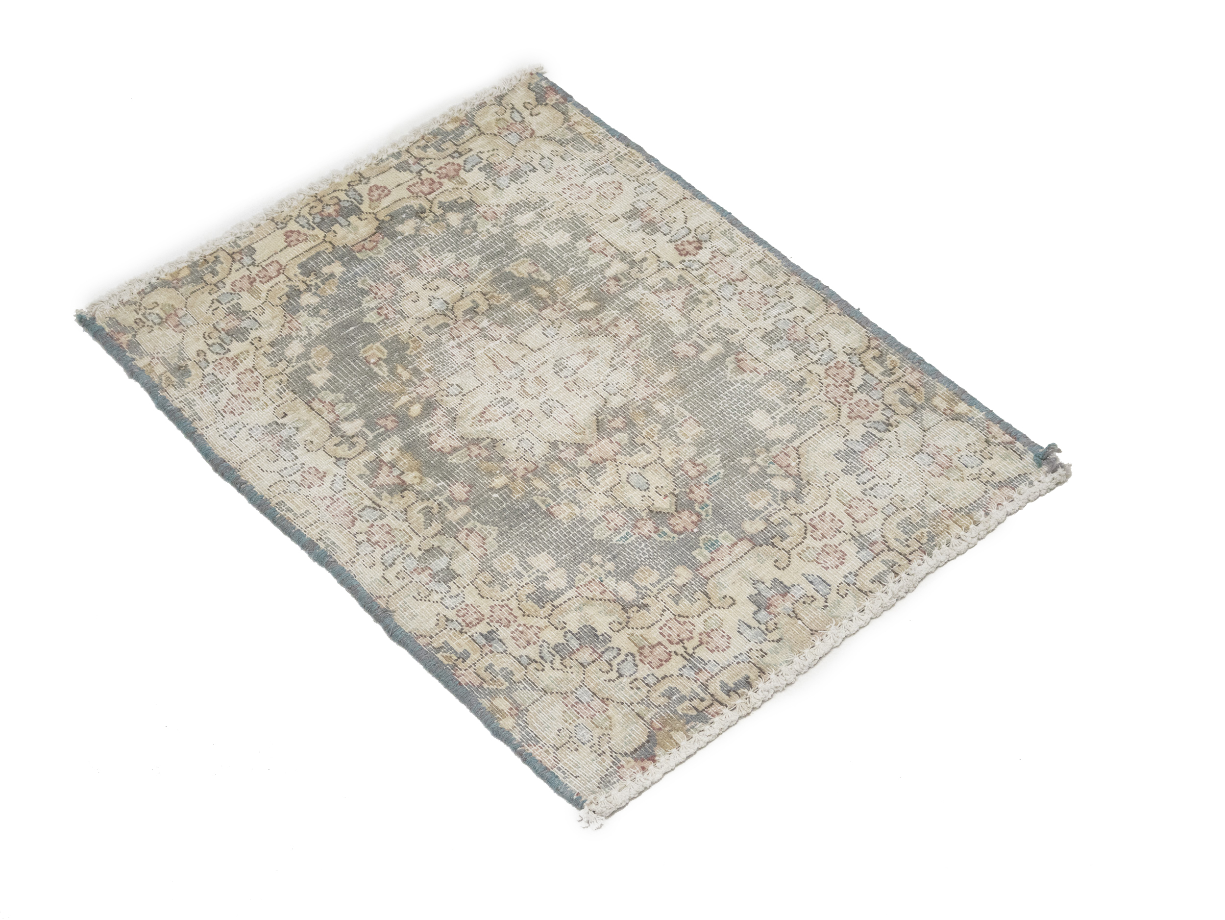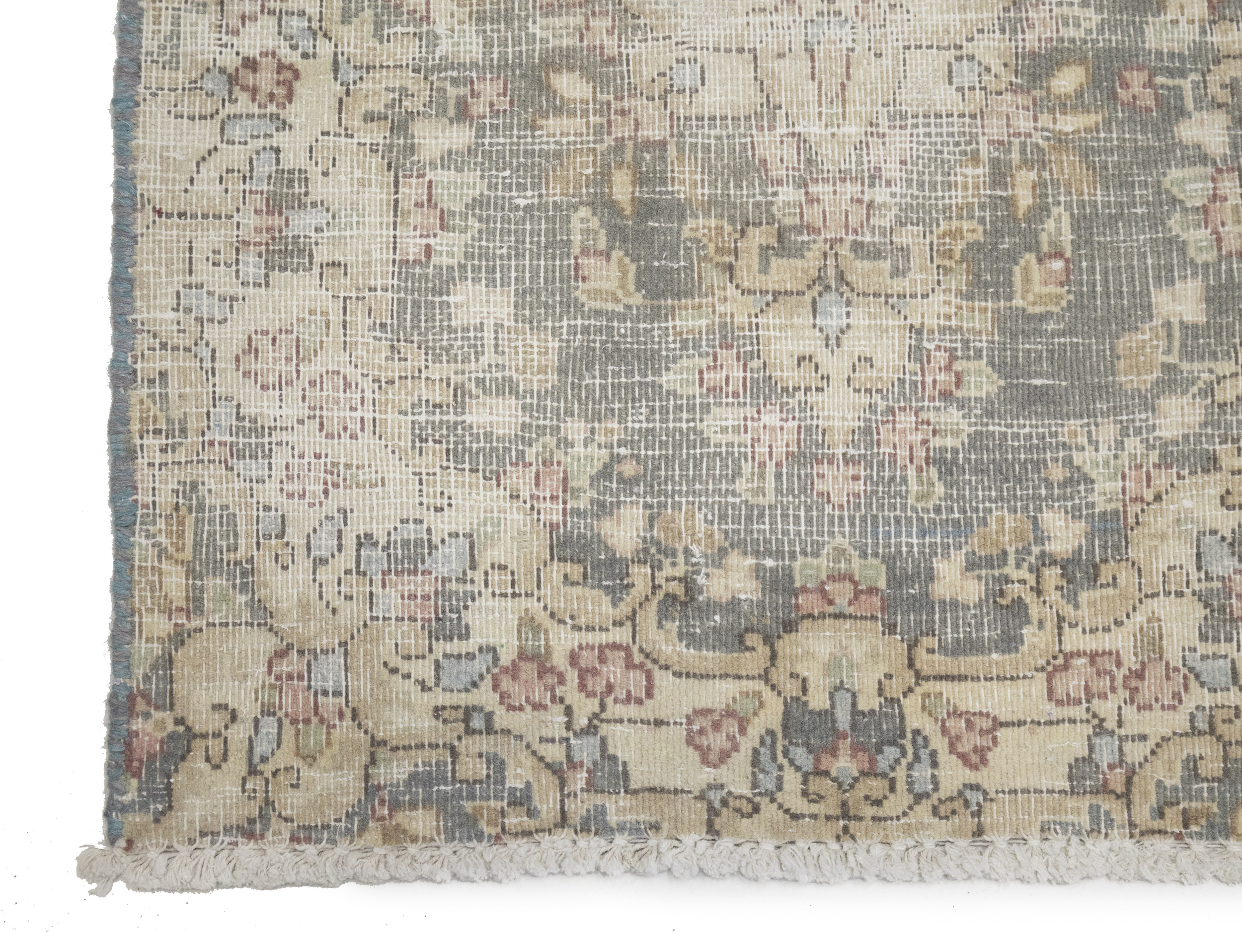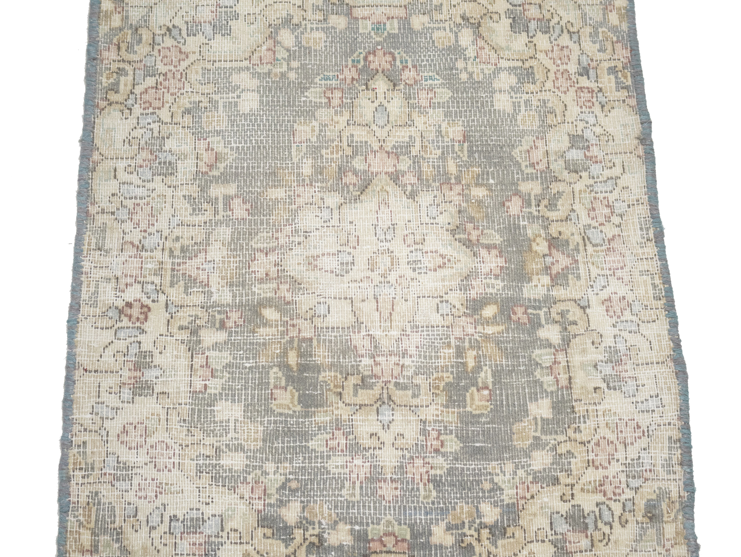 Antique Muted Taupe Floral 1'6X2'0 Distressed Vintage Oriental Rug