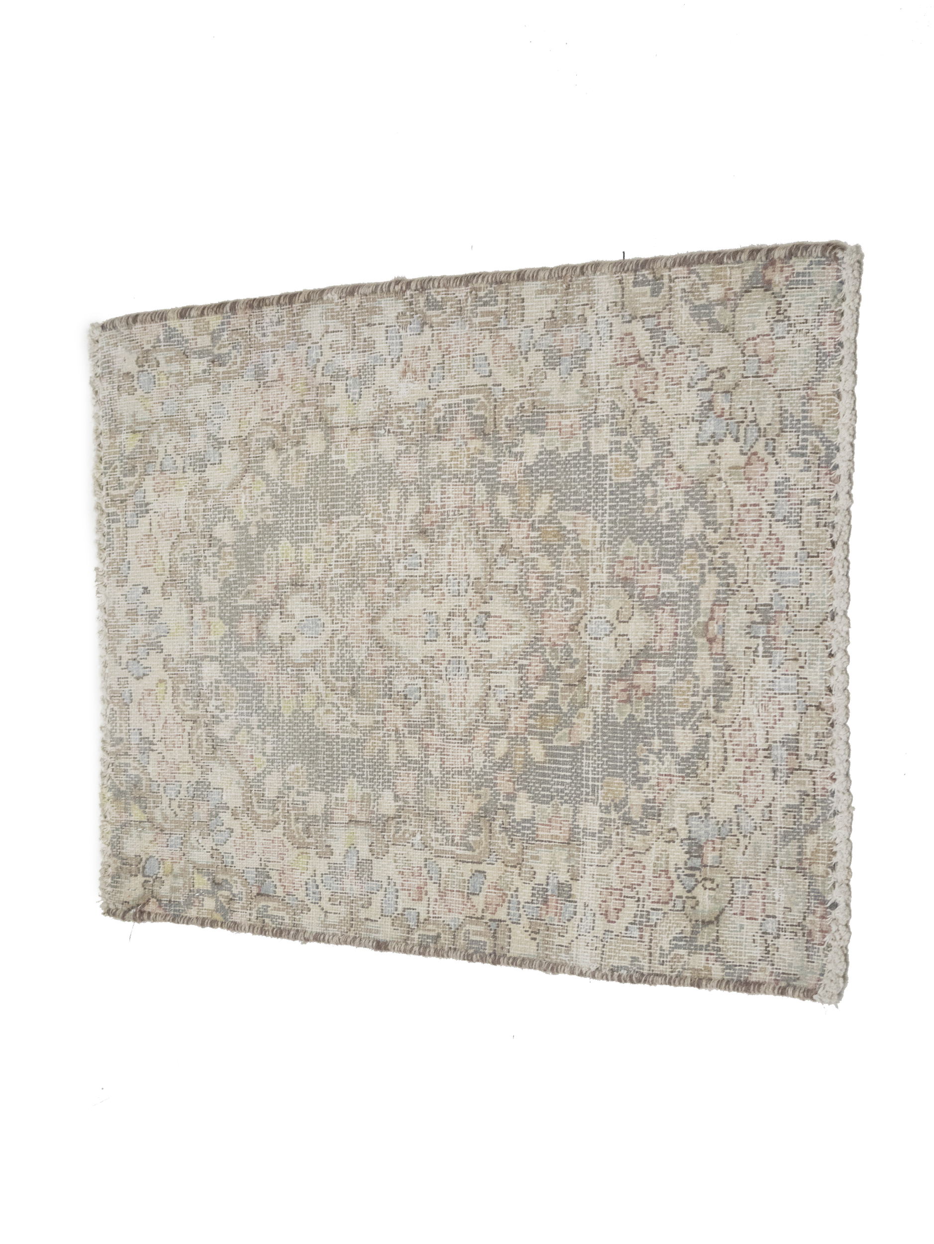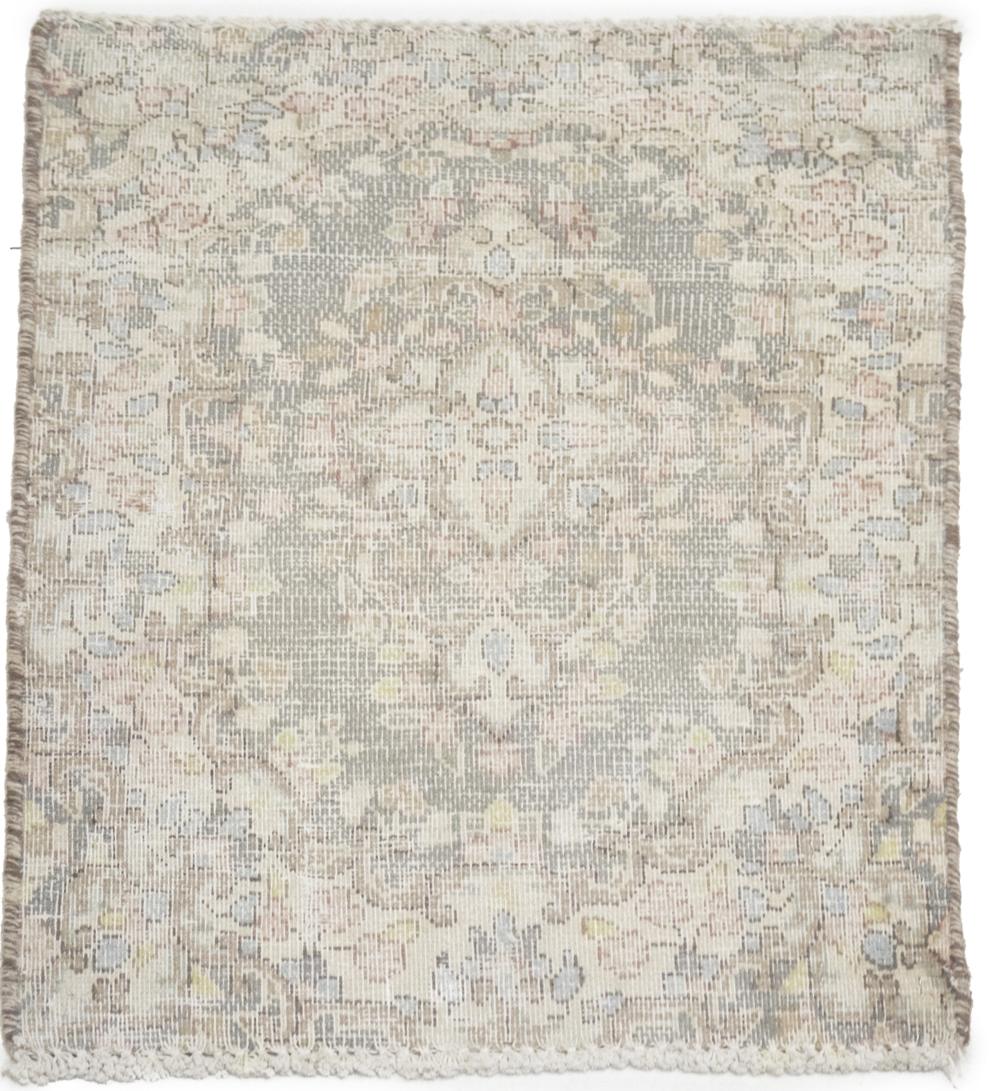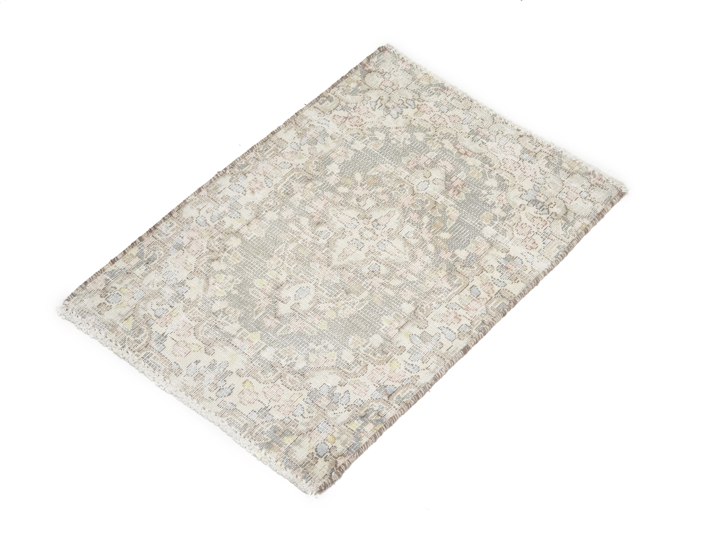 Antique Muted Taupe Floral 1'7X2'2 Distressed Vintage Oriental Rug