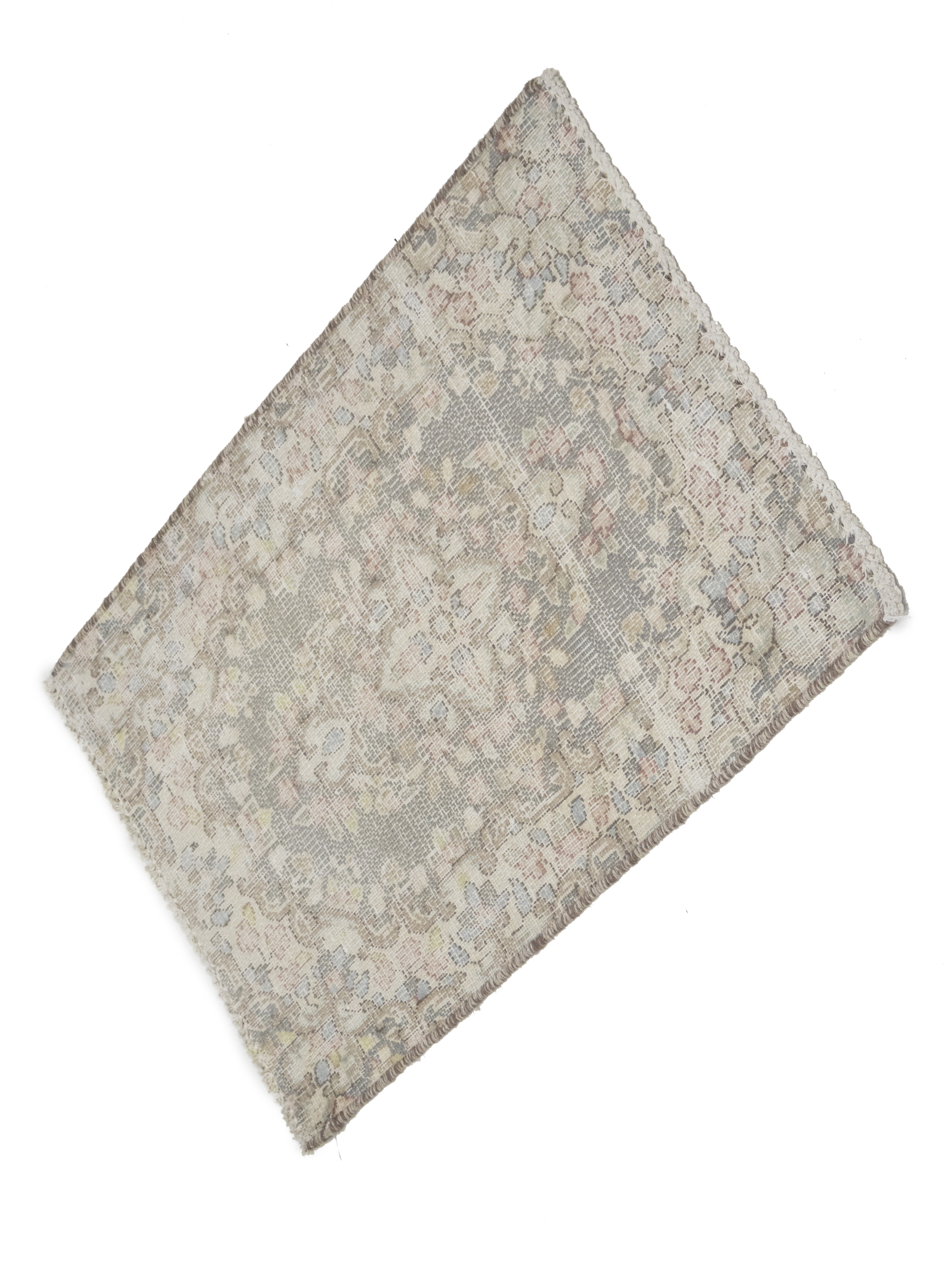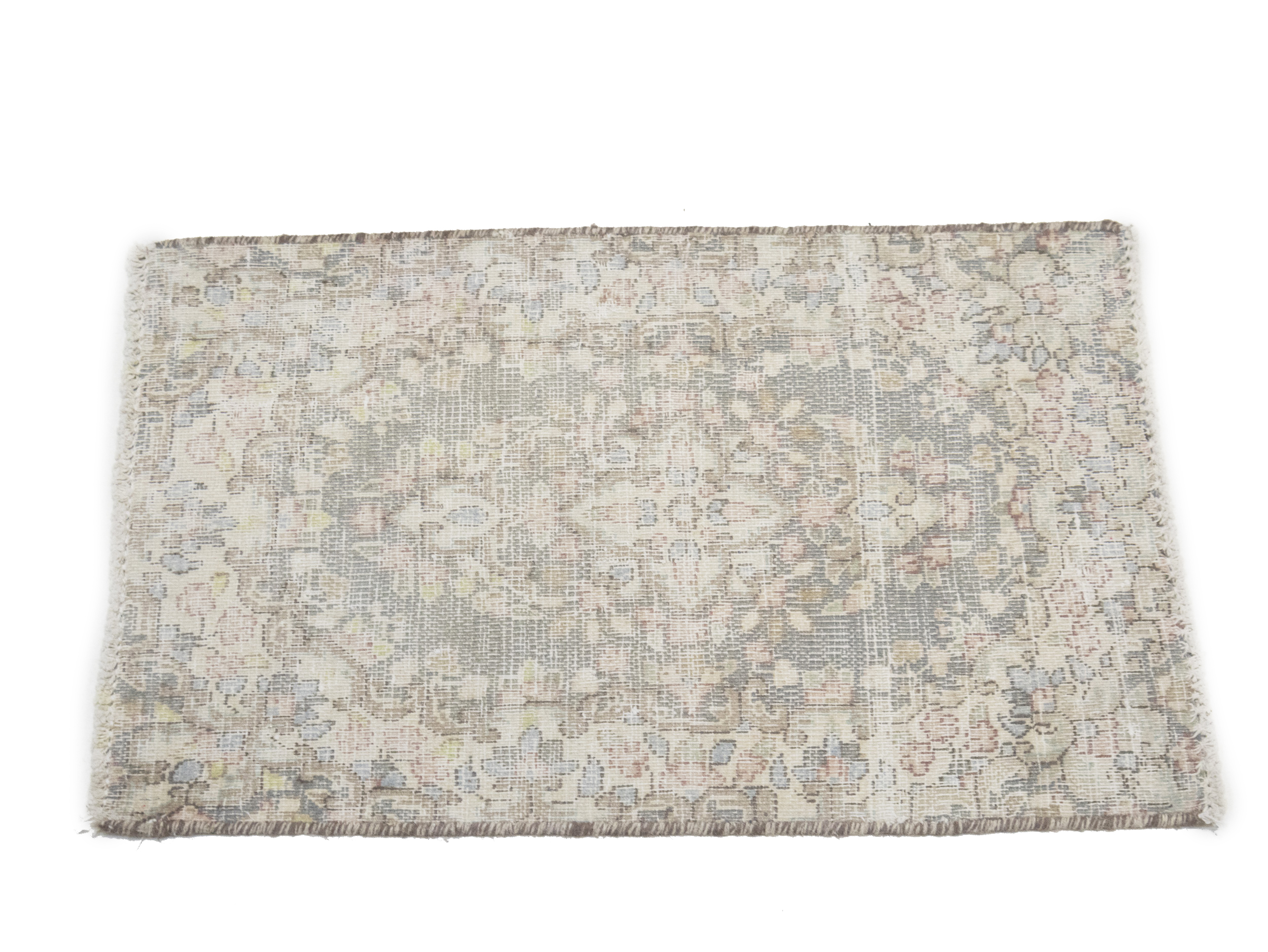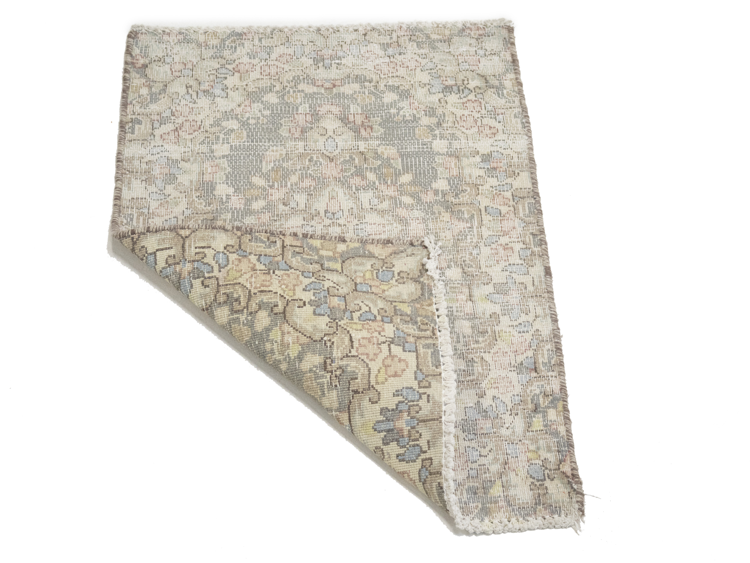 Antique Muted Taupe Floral 1'7X2'2 Distressed Vintage Oriental Rug