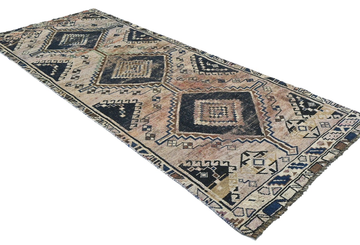 Antique Muted Tribal 4X9 Distressed Vintage Oriental Runner Rug