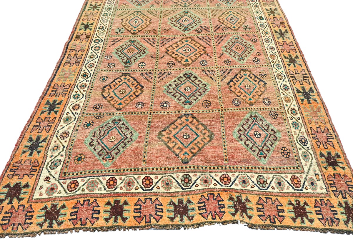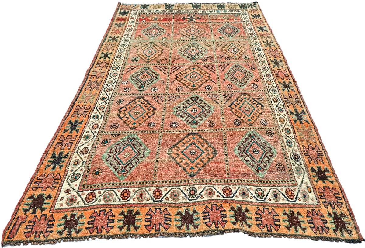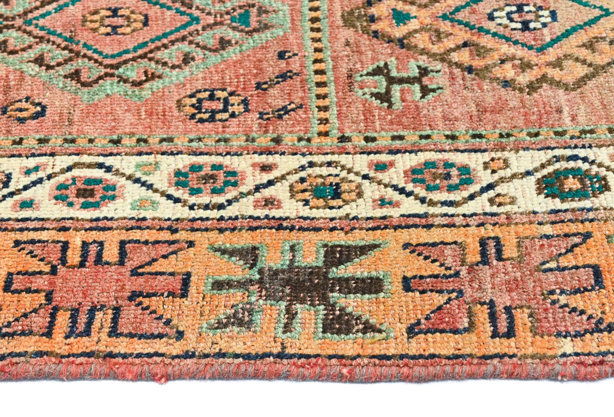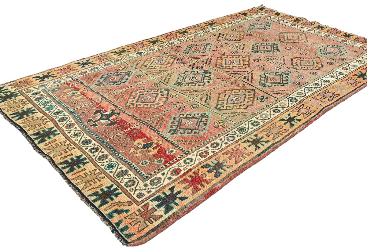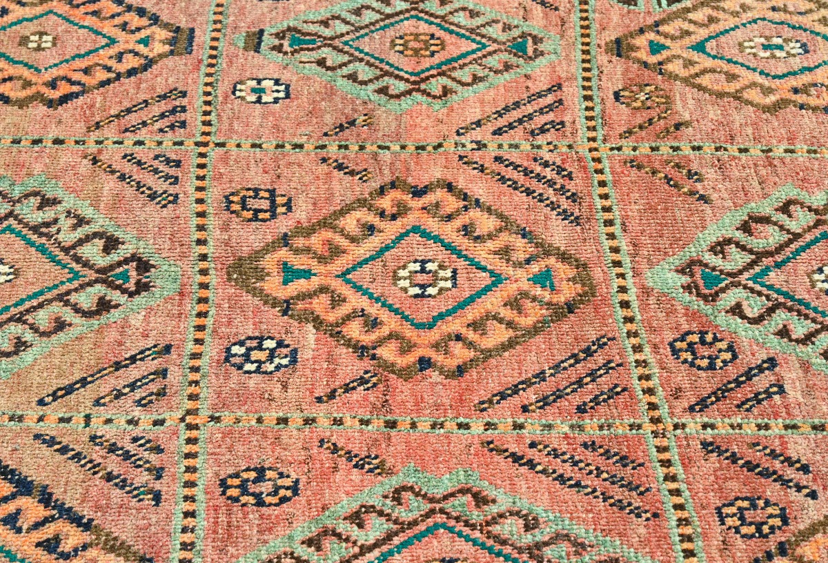 - Hand-knotted antique rug crafted in Pakistan, blending traditional methods with character