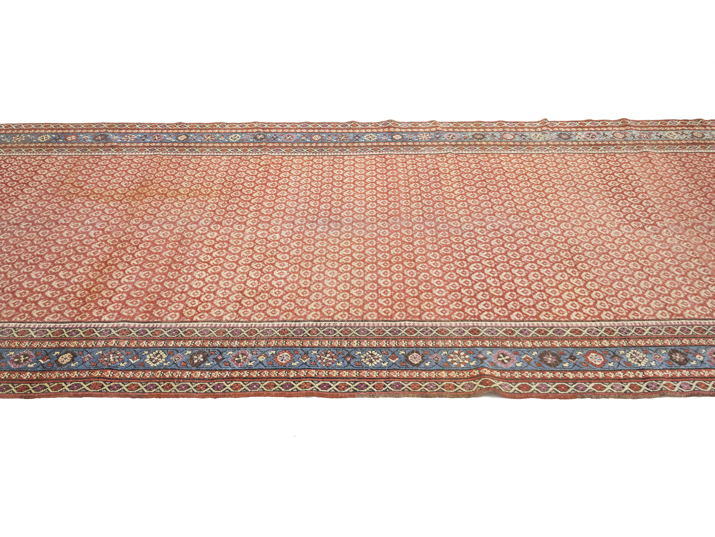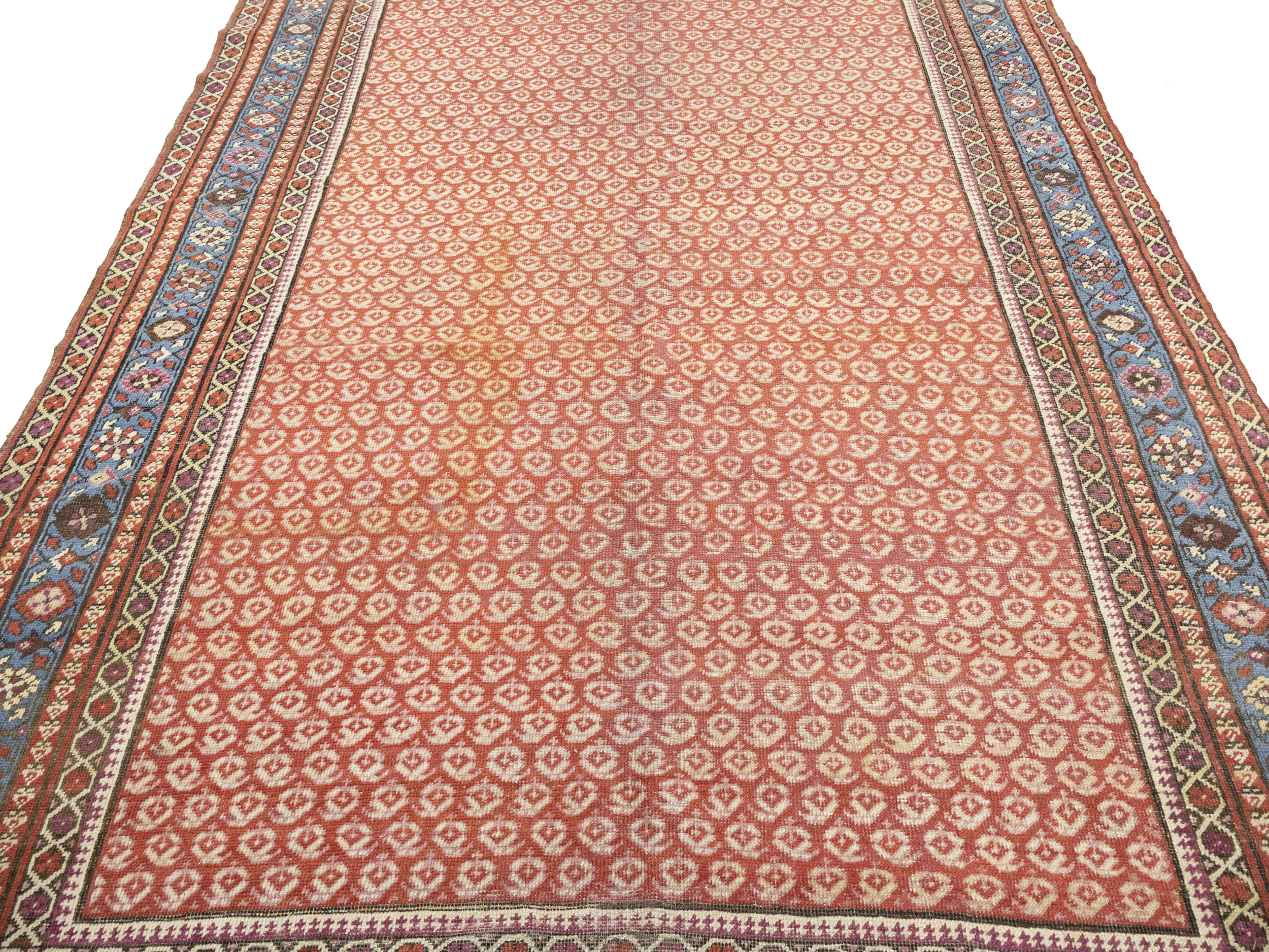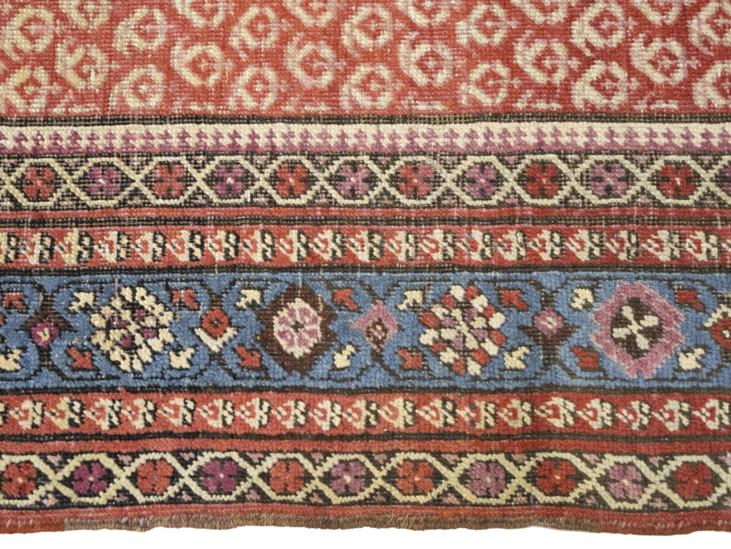 Hand Knotted antique 6X14 red rug made with vegetable dyes (fine wool pile and cotton foundation), exceptional knot count, and appealing ancient designs. This Oriental rug never will go out of style and would be among your most valuable treasures.