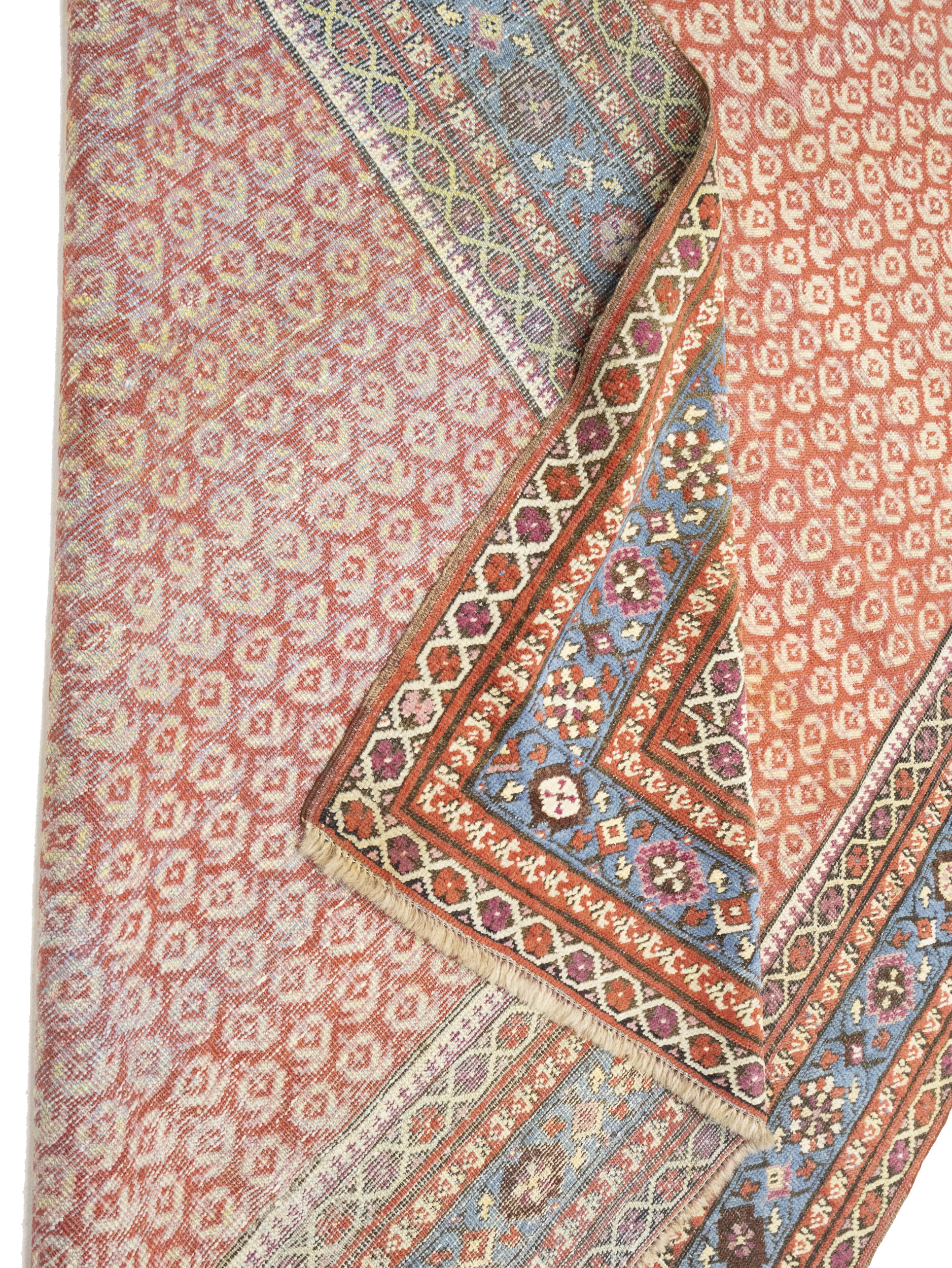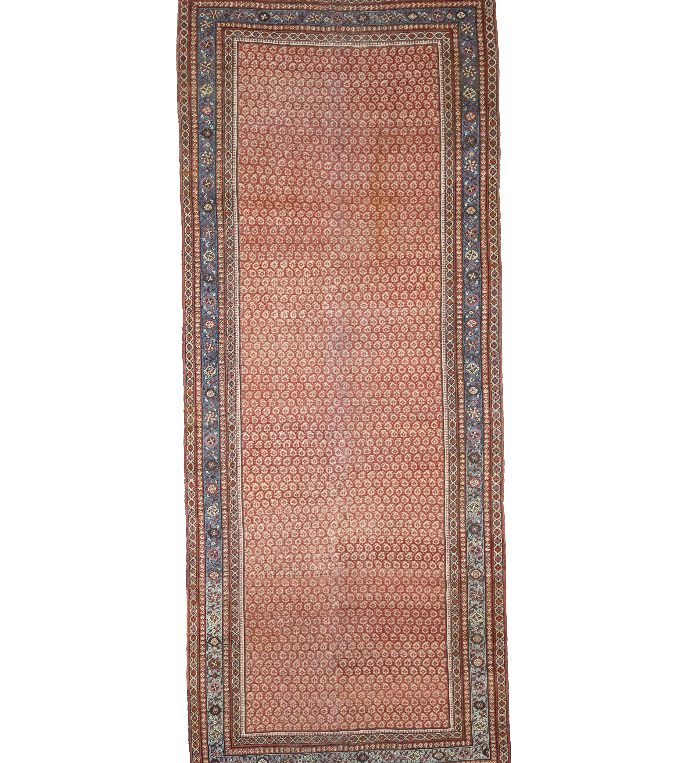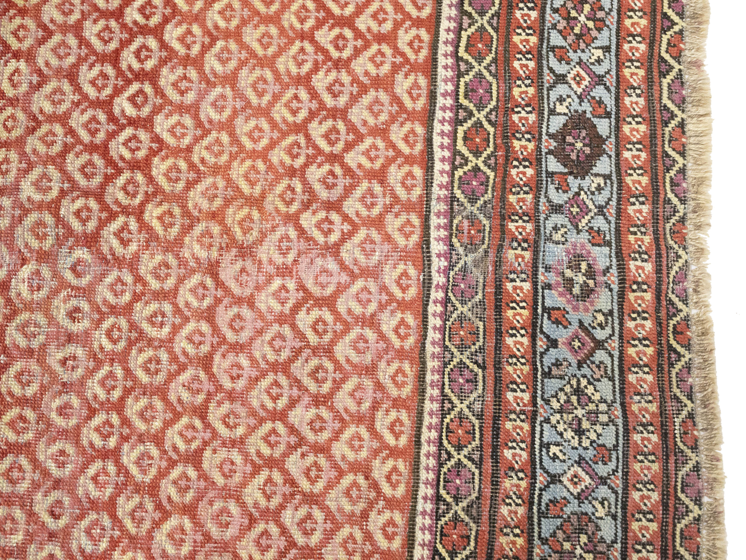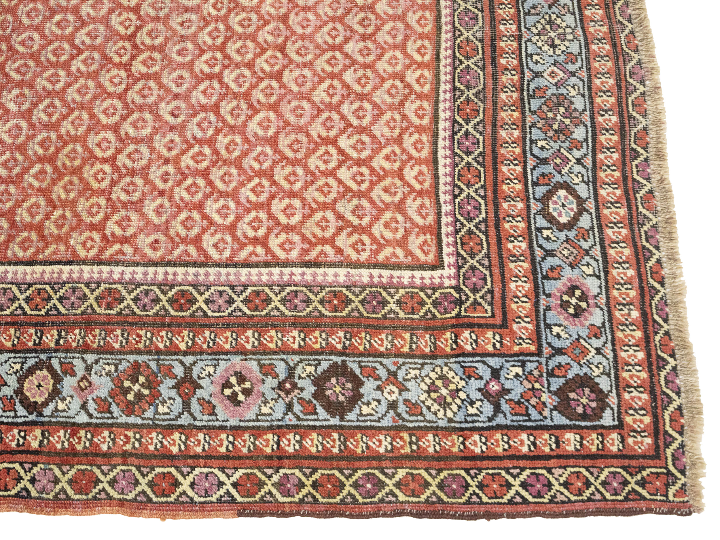 Hand Knotted antique 6X14 red rug made with vegetable dyes (fine wool pile and cotton foundation), exceptional knot count, and appealing ancient designs. This Oriental rug never will go out of style and would be among your most valuable treasures.