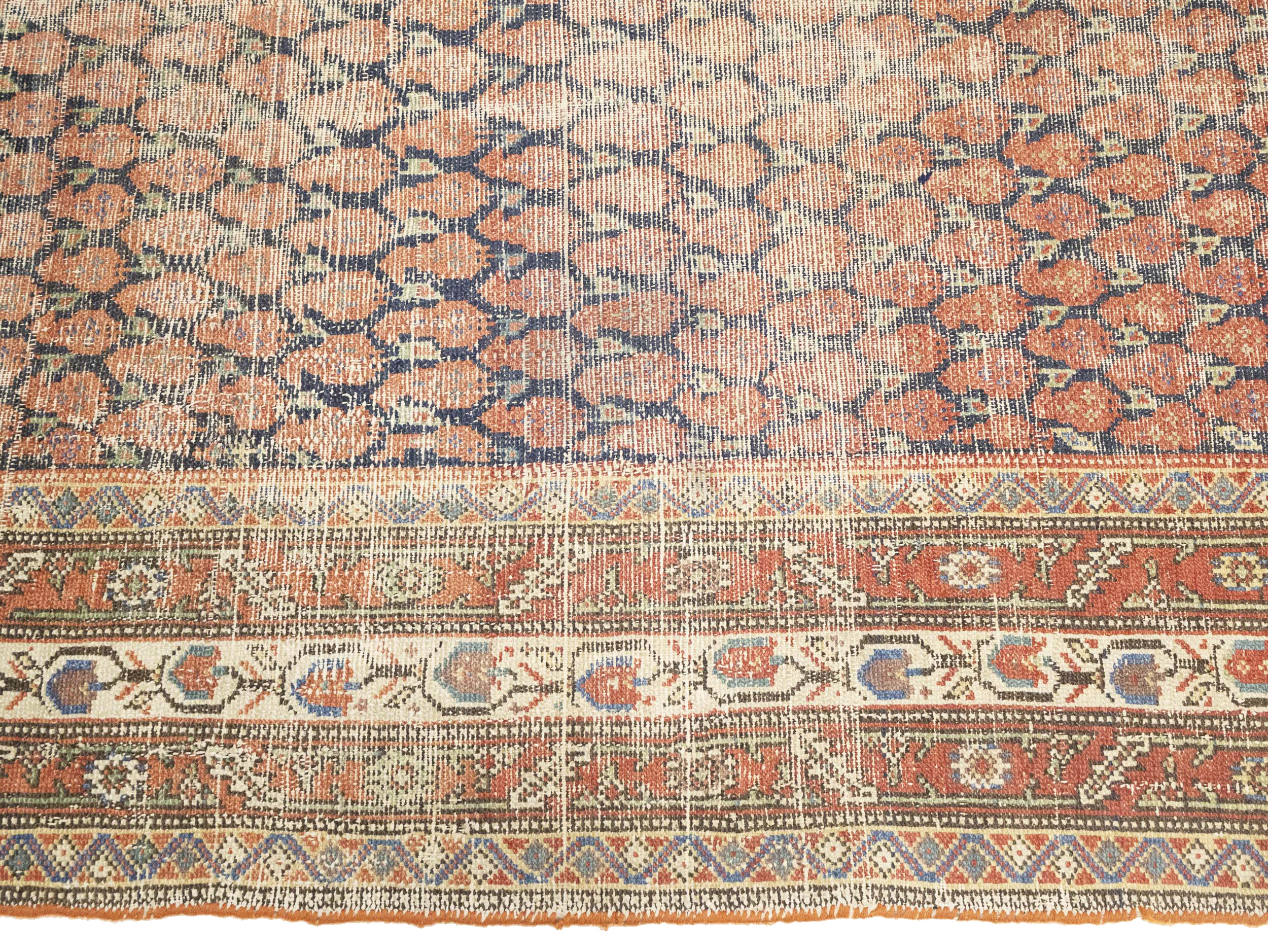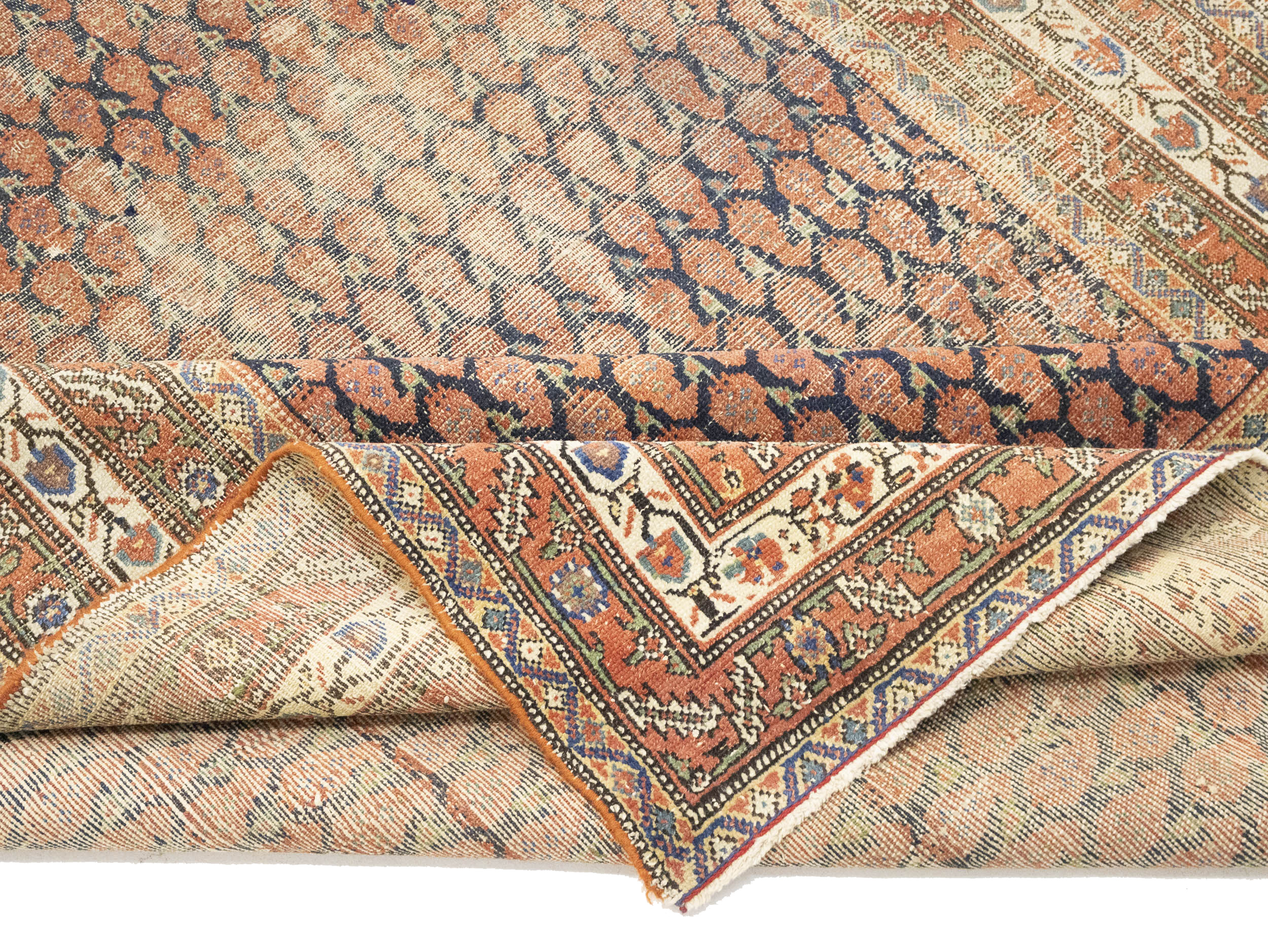 Hand Knotted antique 5X9'7 orange-red runner made with vegetable dyes (fine wool pile and cotton foundation), exceptional knot count, and appealing ancient designs. This Oriental runner never will go out of style and would be among your most valuable treasures.