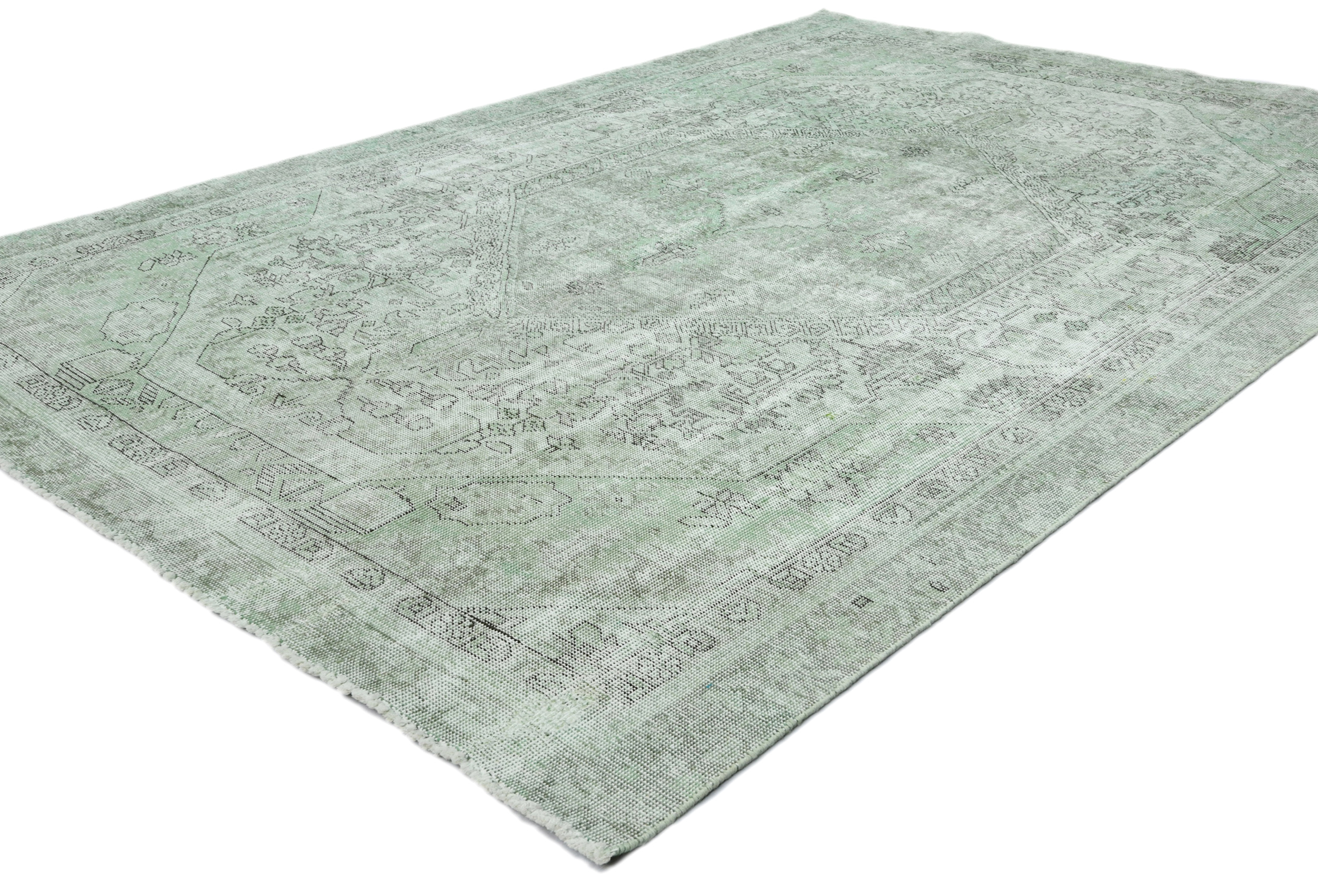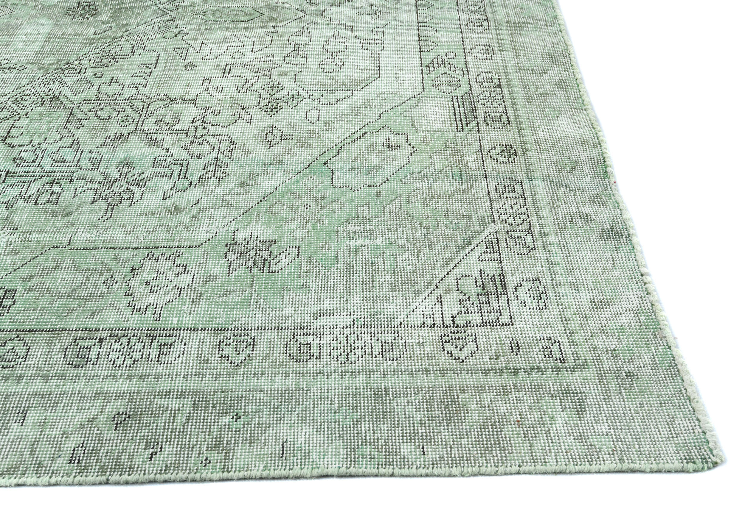 This authentic 5'8X8'4 green new Oriental rug was crafted by the hands of skilled weavers enthused by a variety of lovely artistic designs, to recreate the aged look of the unique piece with a richness of color and beautifully elaborated background field. What set this vintage style Oriental area rug from the others are the material and dye used (wool pile and cotton foundation), knot count, ancient designs, fantastic grades, and its regional historical connection: it has deep roots, from the story of the people who produced it to the meaning of the symbols and colors displayed across its canvas that have been praised for centuries. This Indian home décor carpet will be completely cozy and inviting that never will go out of style!
