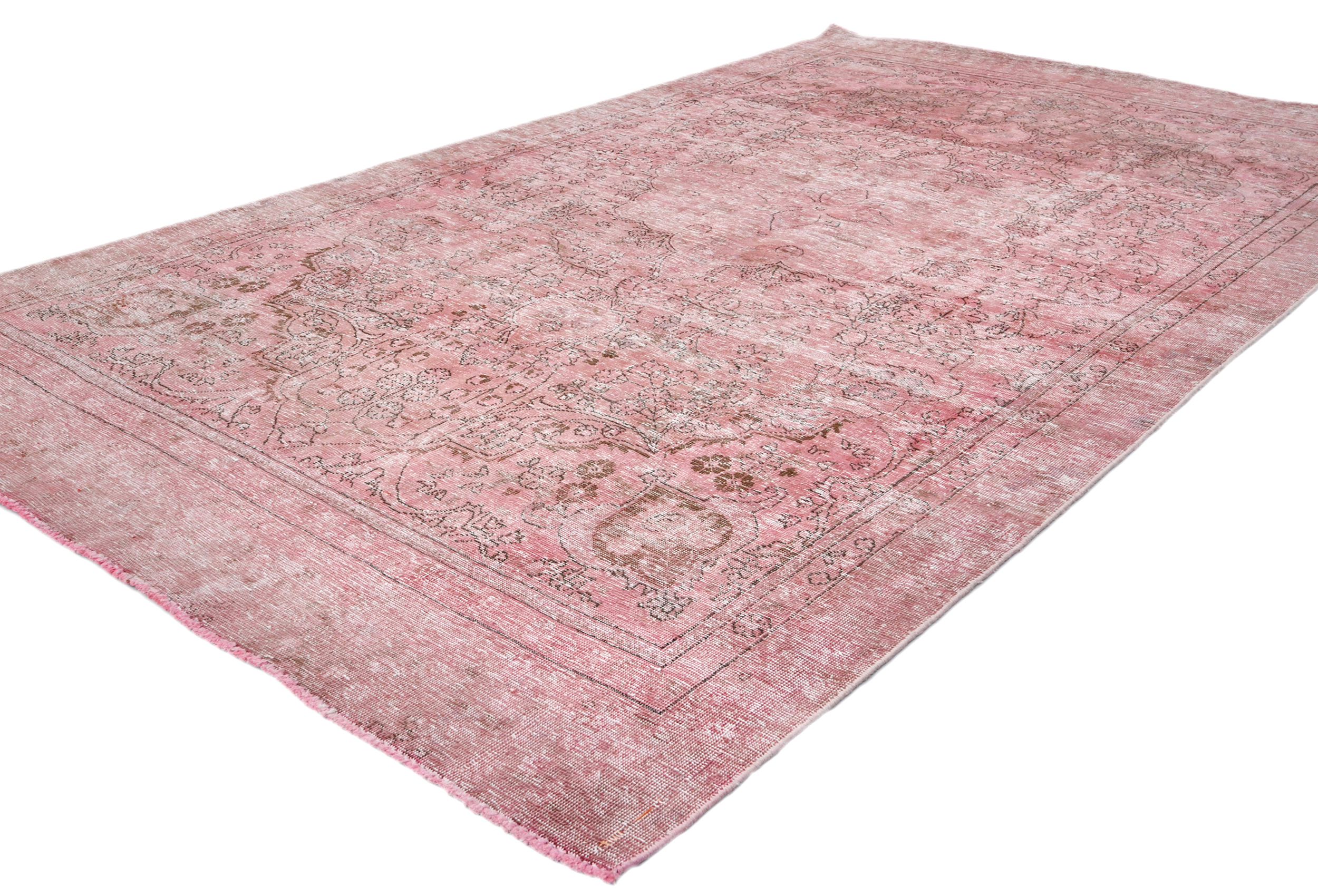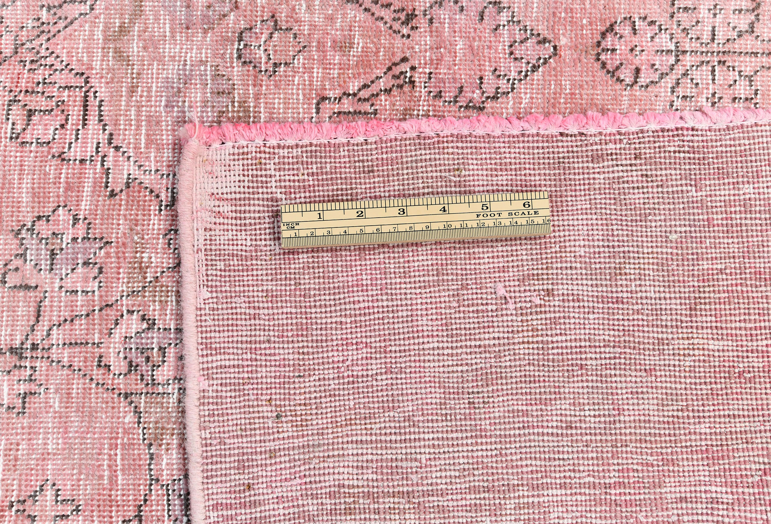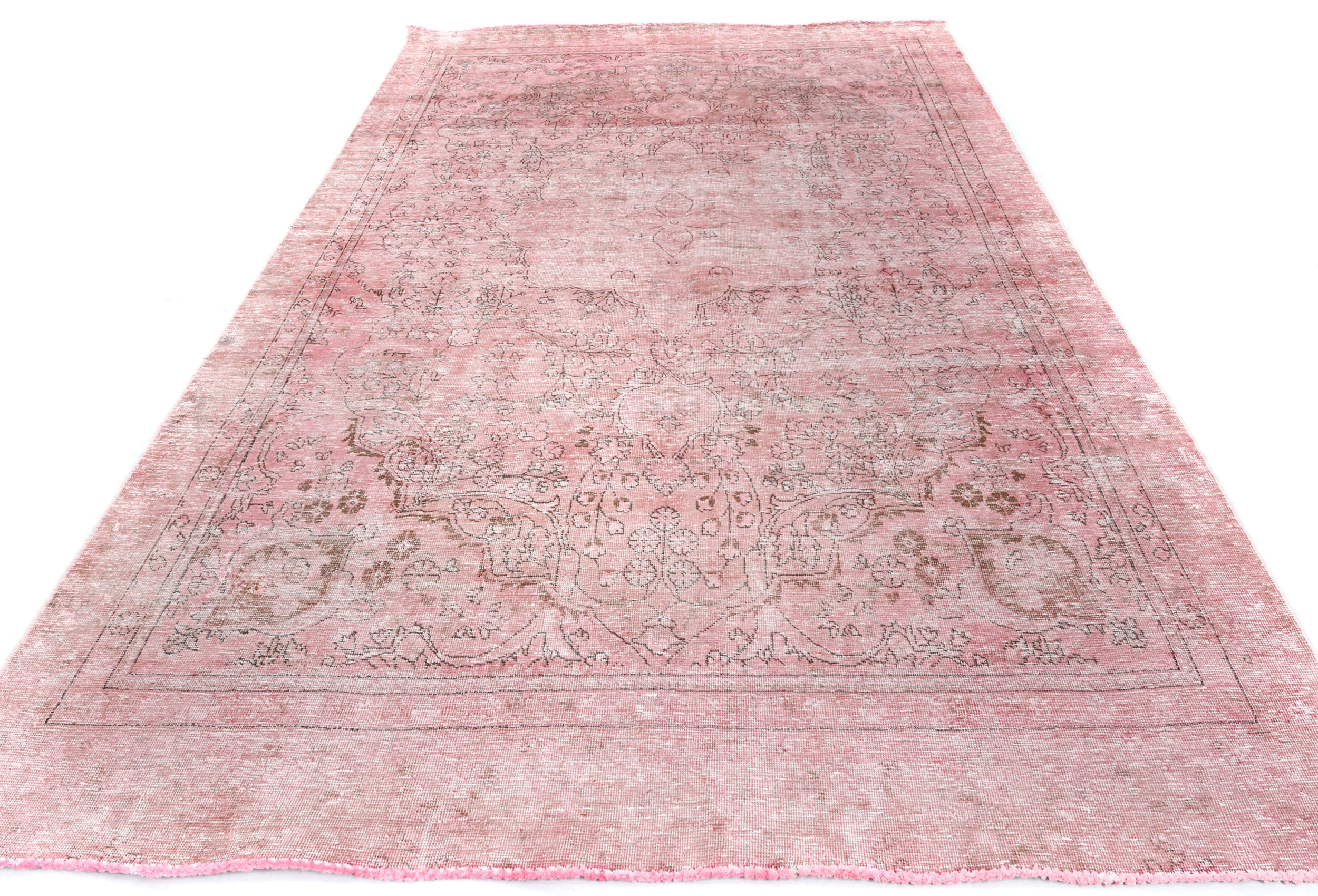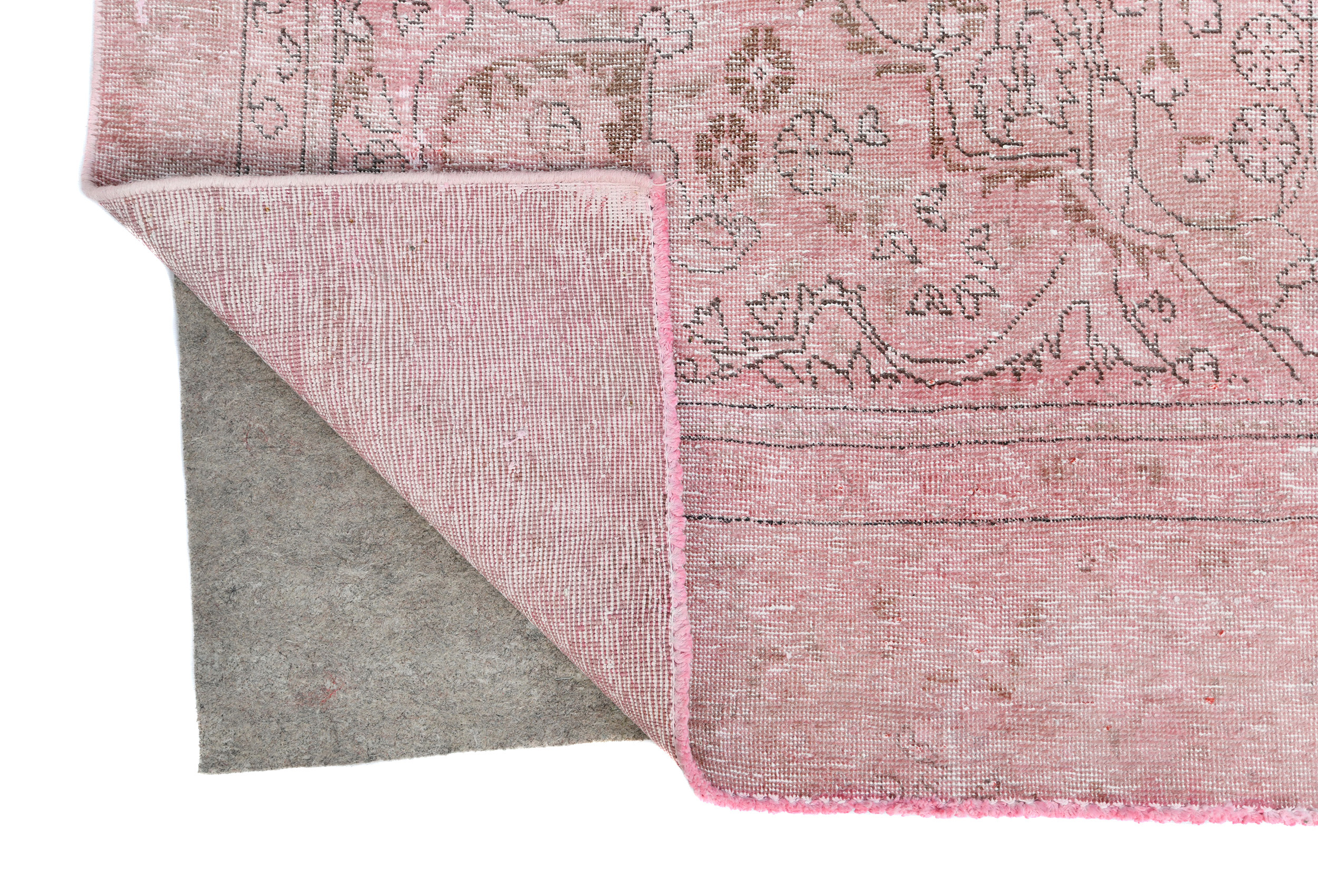 This authentic 5'7X'9'2 pink new Oriental rug was crafted by the hands of skilled weavers enthused by a variety of lovely artistic designs, to recreate the aged look of the unique piece with a richness of color and beautifully elaborated background field. What set this vintage style Oriental area rug from the others are the material and dye used (wool pile and cotton foundation), knot count, ancient designs, fantastic grades, and its regional historical connection: it has deep roots, from the story of the people who produced it to the meaning of the symbols and colors displayed across its canvas that have been praised for centuries. This Indian home décor carpet will be completely cozy and inviting that never will go out of style!