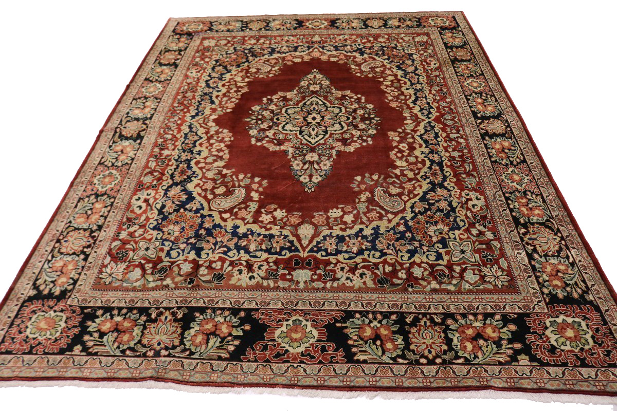 Handmade Antique Persian rug made with vegetable dyes (fine wool pile and cotton foundation), exceptional knot count, and alluring ancient designs. This Oriental rug never will go out of style and would be among your most valuable treasures.