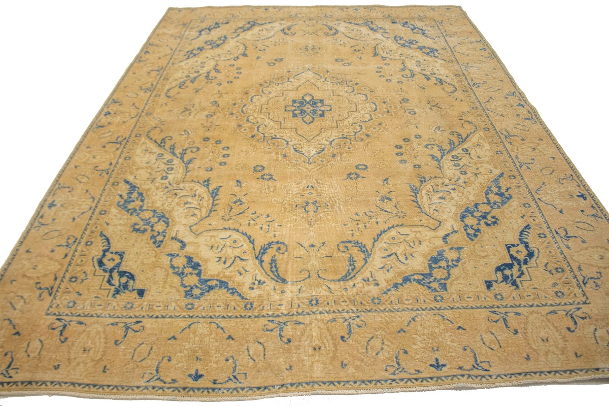 This authentic 9X12 beige vintage Persian rug was finely knotted by the hands of weavers influenced by a variety of amazing artistic designs, to recreate the aged look of the exceptional piece with a richness of color and embellished floral background field. What set this traditional Oriental area rug from the others are the material and dye used (wool pile and cotton foundation), knot count, antique designs, fantastic grades, and its regional historical connection: it has deep roots, from the story of the people who produced it to the meaning of the symbols and colors displayed across its canvas that have been praised for centuries. This classic home décor carpet will be completely cozy and inviting that never will go out of style! Also, this Oriental rug would be among your most valuable treasures, it is a great investment that increase in value over time, and it will last a lifetime because was woven with high-quality, all-natural wool; it won’t rip, tear, or shed. Eco-friendly, opulent yet affordable; this Persian rug will give you an extra pop of character to help define your home environment with luxury and warmth that will capture the eyes and attention of your audience (homeowners, designers, decorators, family and friends). RT-1092