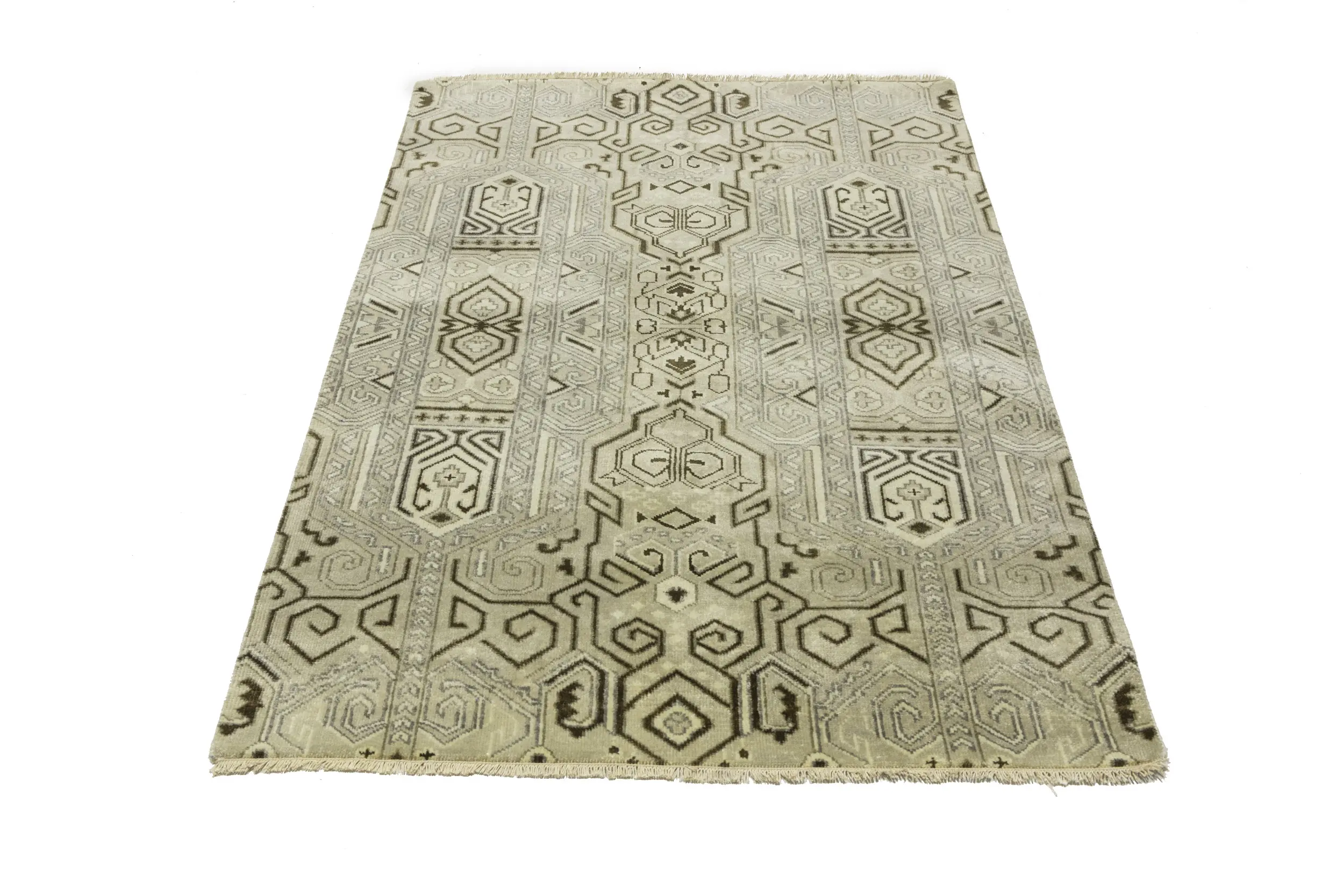 This genuine 4X6 beige new Oriental rug was made by the hands of gifted weavers inspired by a variety of spectacular artistic designs, to recreate the aged look of the original piece with a richness of color and ornately patterned background field. What set this vintage style Oriental area rug from the others are the material and dye used (wool pile and cotton foundation), knot count, ancient designs, fantastic grades, and its regional historical connection: it has deep roots, from the story of the people who produced it to the meaning of the symbols and colors displayed across its canvas that have been praised for centuries. This Indian home décor carpet will be completely cozy and inviting that never will go out of style! Also, this Oriental rug would be among your most valuable treasures, it is a great investment that accrues value over time, and it will last for generations because was woven with high-quality, all-natural wool. Environmentally friendly, opulent yet affordable; this rug will give you a thorough amount of character to help define your living space with elegance and warmth that will capture the eyes and attention of your audience (homeowners, designers, decorators, family and friends).