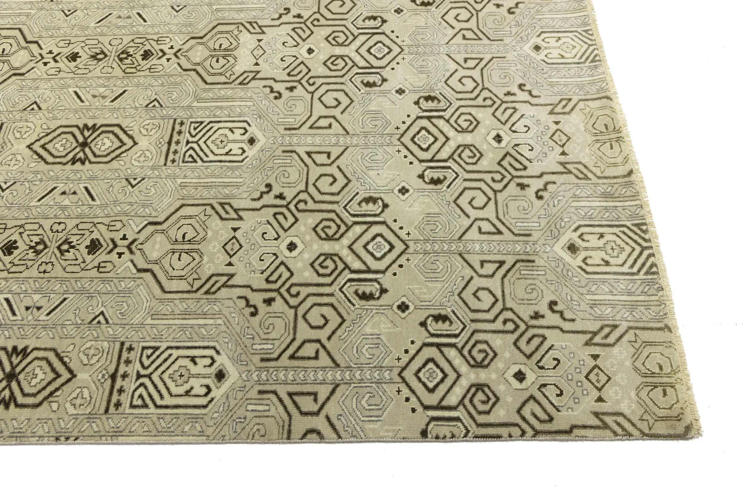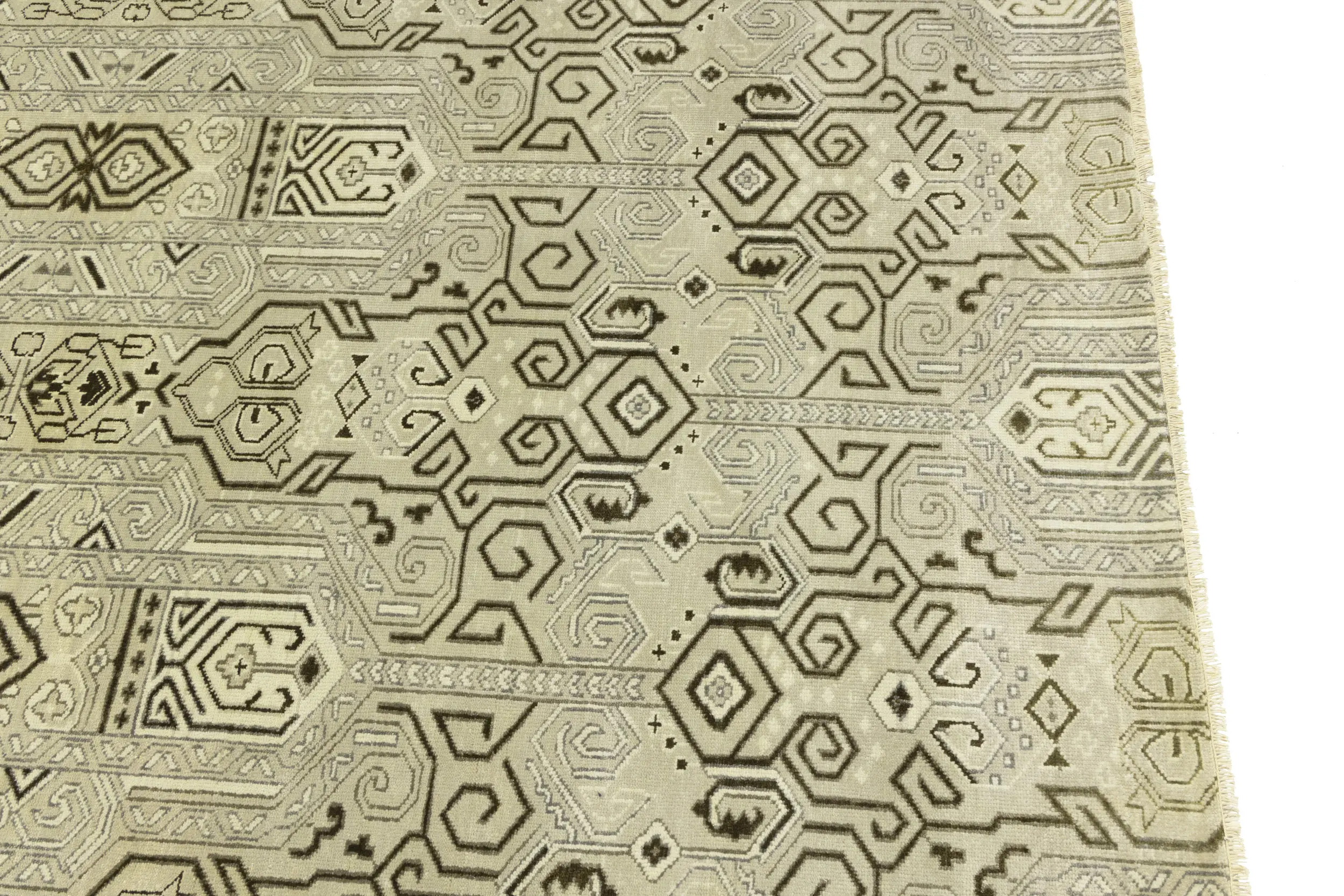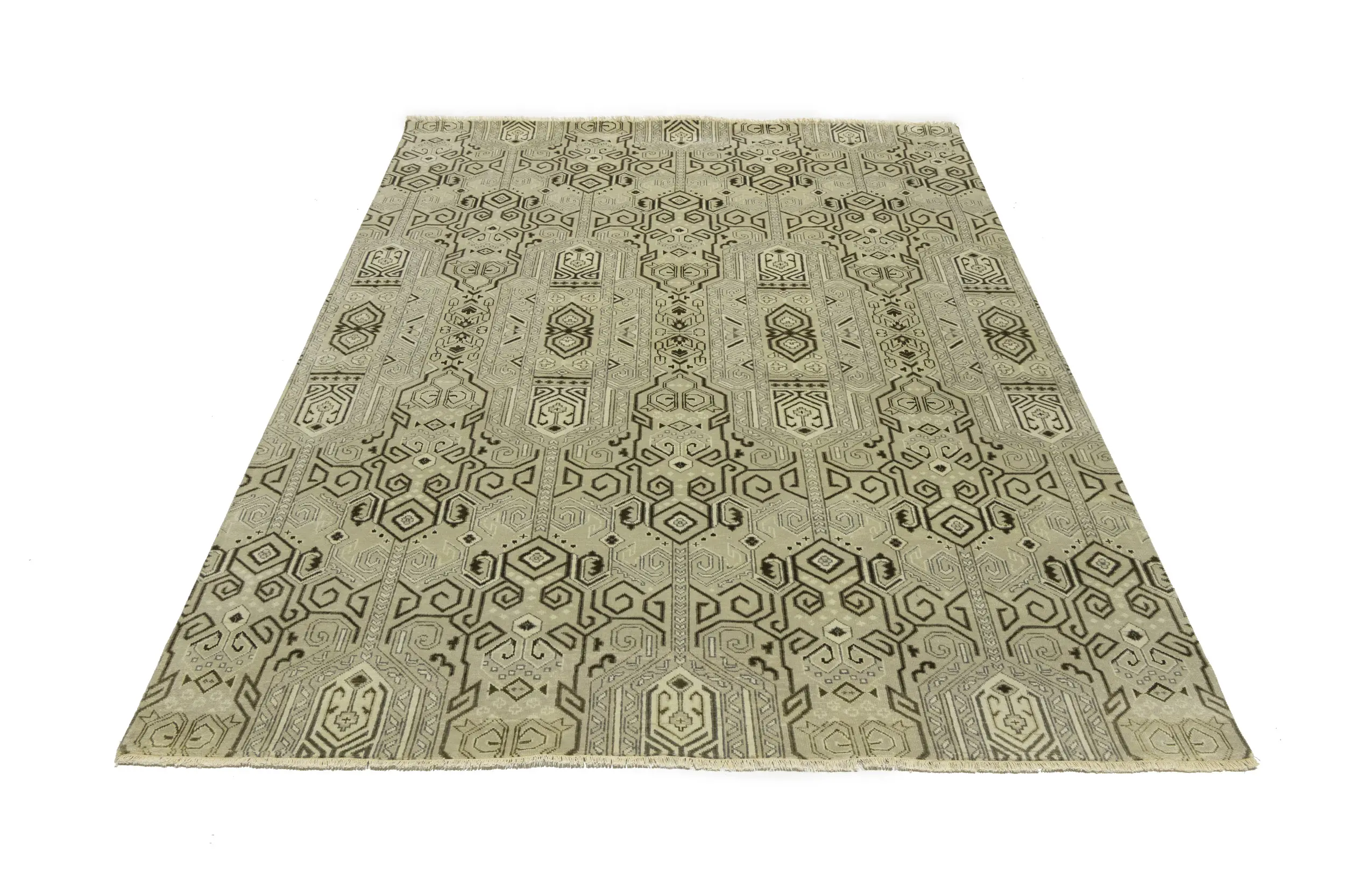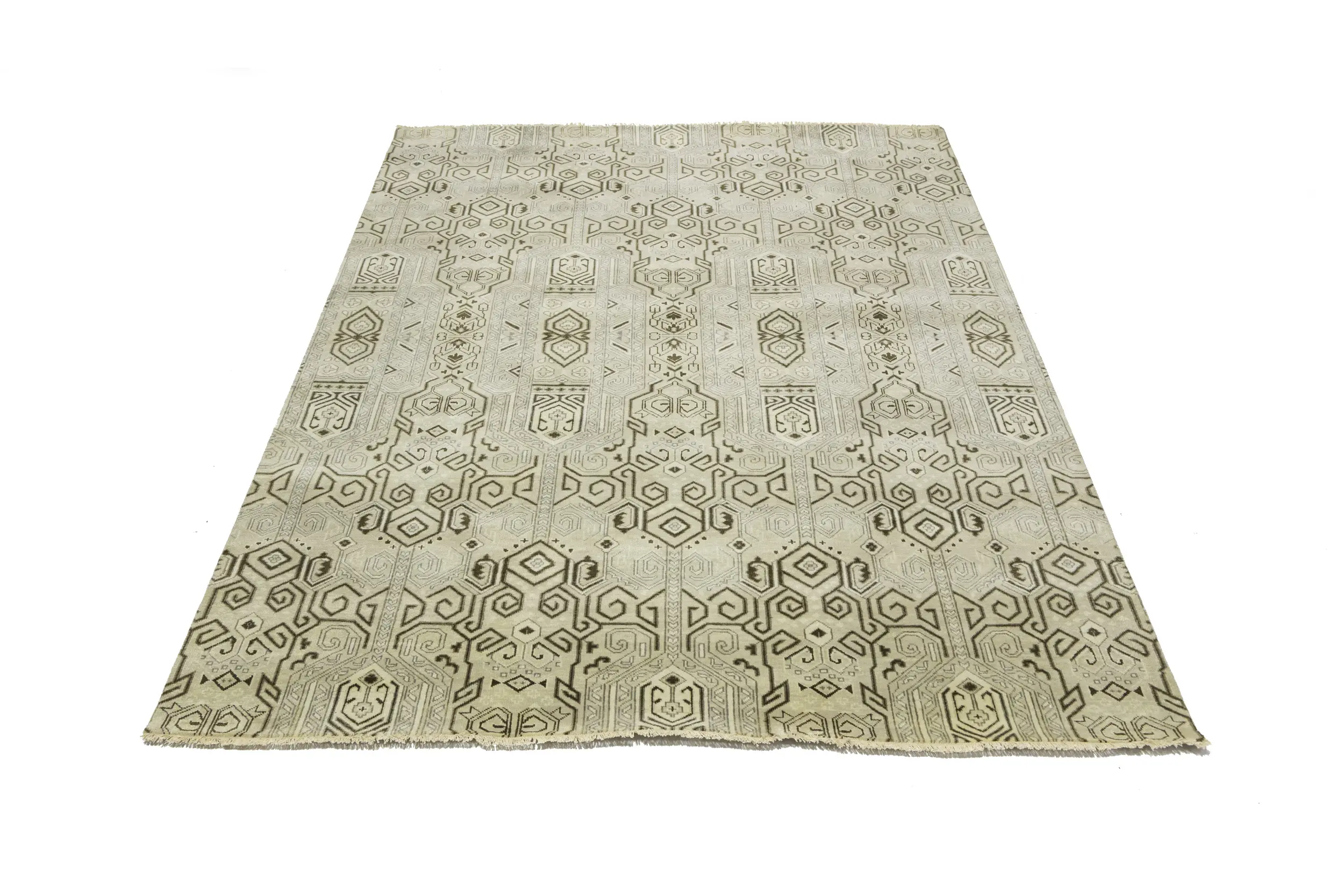 This genuine 8X10 beige new Oriental rug was made by the hands of gifted weavers inspired by a variety of spectacular artistic designs, to recreate the aged look of the original piece with a richness of color and ornately patterned background field. What set this vintage style Oriental area rug from the others are the material and dye used (wool pile and cotton foundation), knot count, ancient designs, fantastic grades, and its regional historical connection: it has deep roots, from the story of the people who produced it to the meaning of the symbols and colors displayed across its canvas that have been praised for centuries. This Indian home décor carpet will be completely cozy and inviting that never will go out of style! Also, this Oriental rug would be among your most valuable treasures, it is a great investment that accrues value over time, and it will last for generations because was woven with high-quality, all-natural wool. Environmentally friendly, opulent yet affordable; this rug will give you a thorough amount of character to help define your living space with elegance and warmth that will capture the eyes and attention of your audience (homeowners, designers, decorators, family and friends).