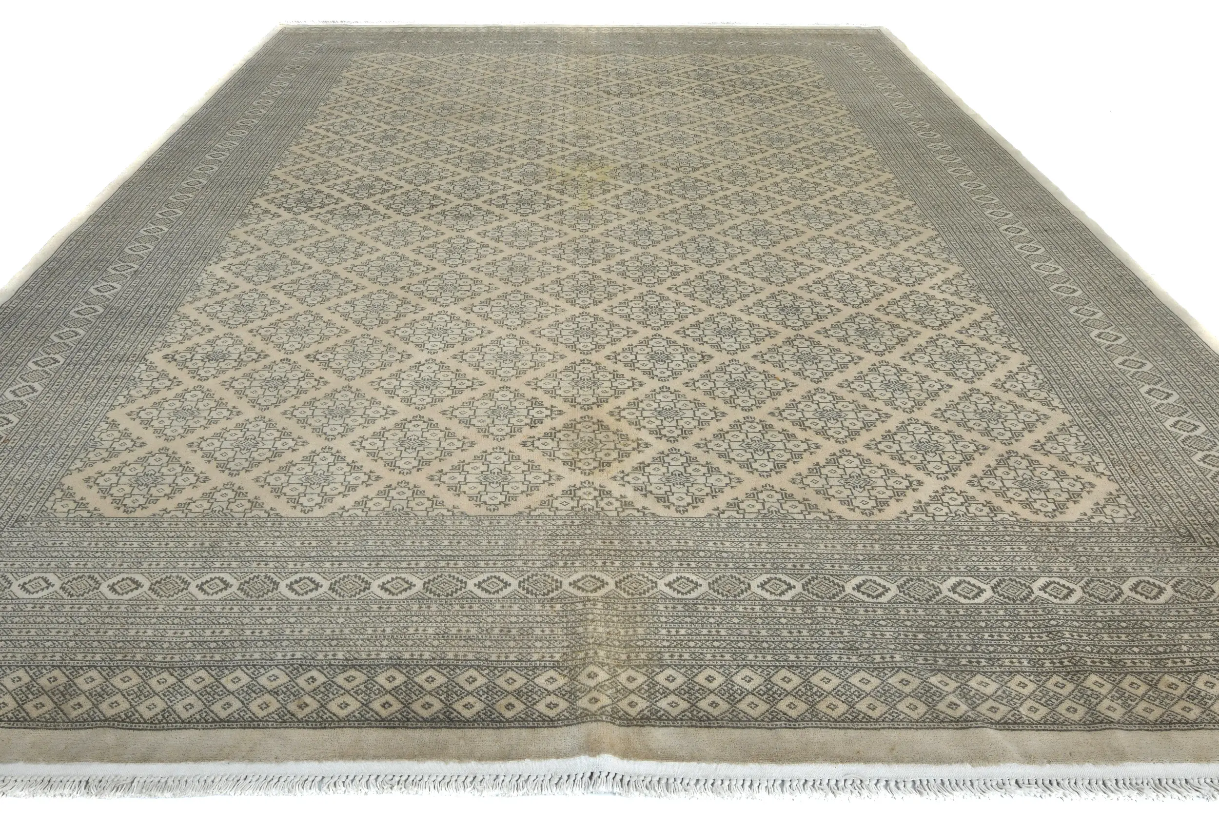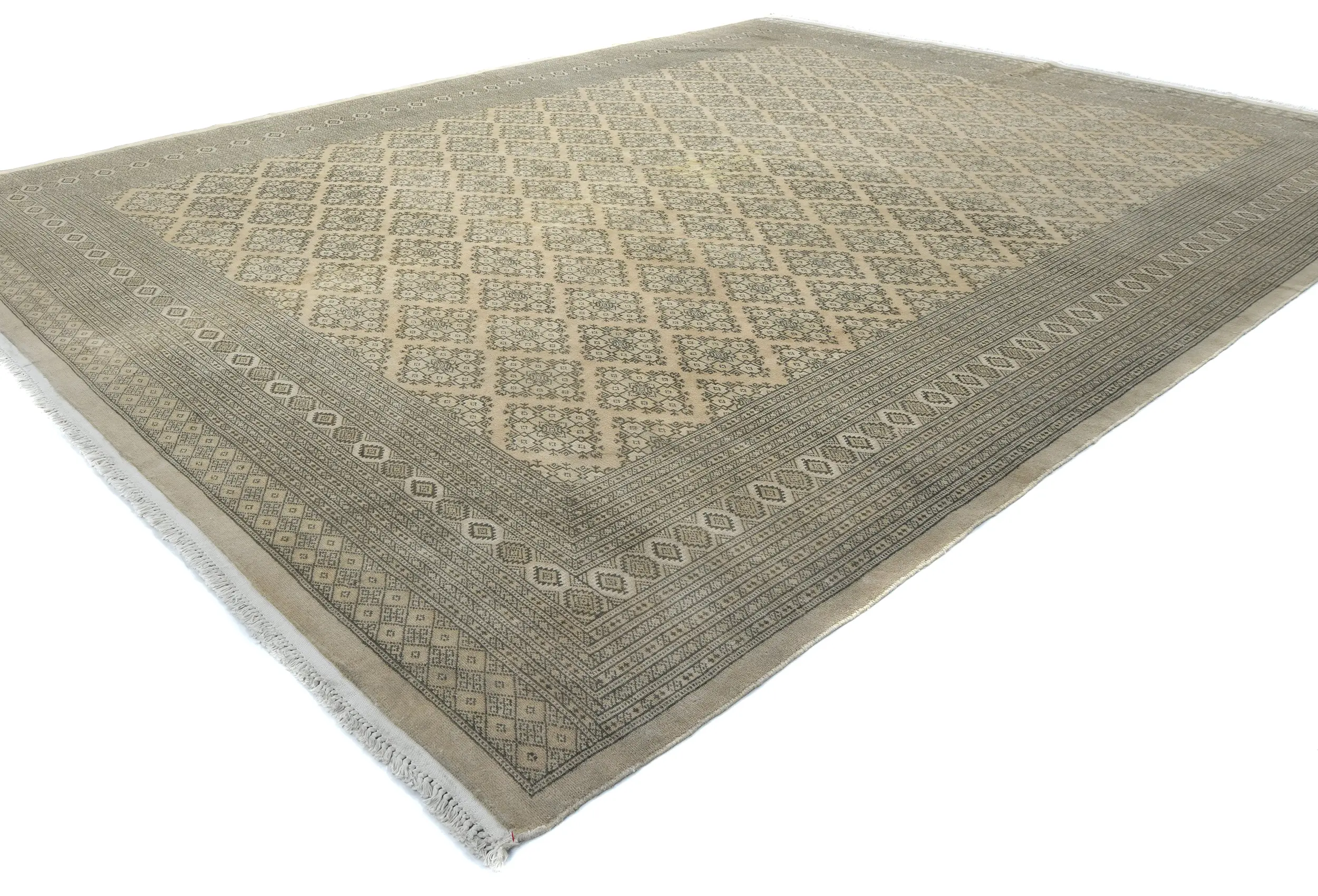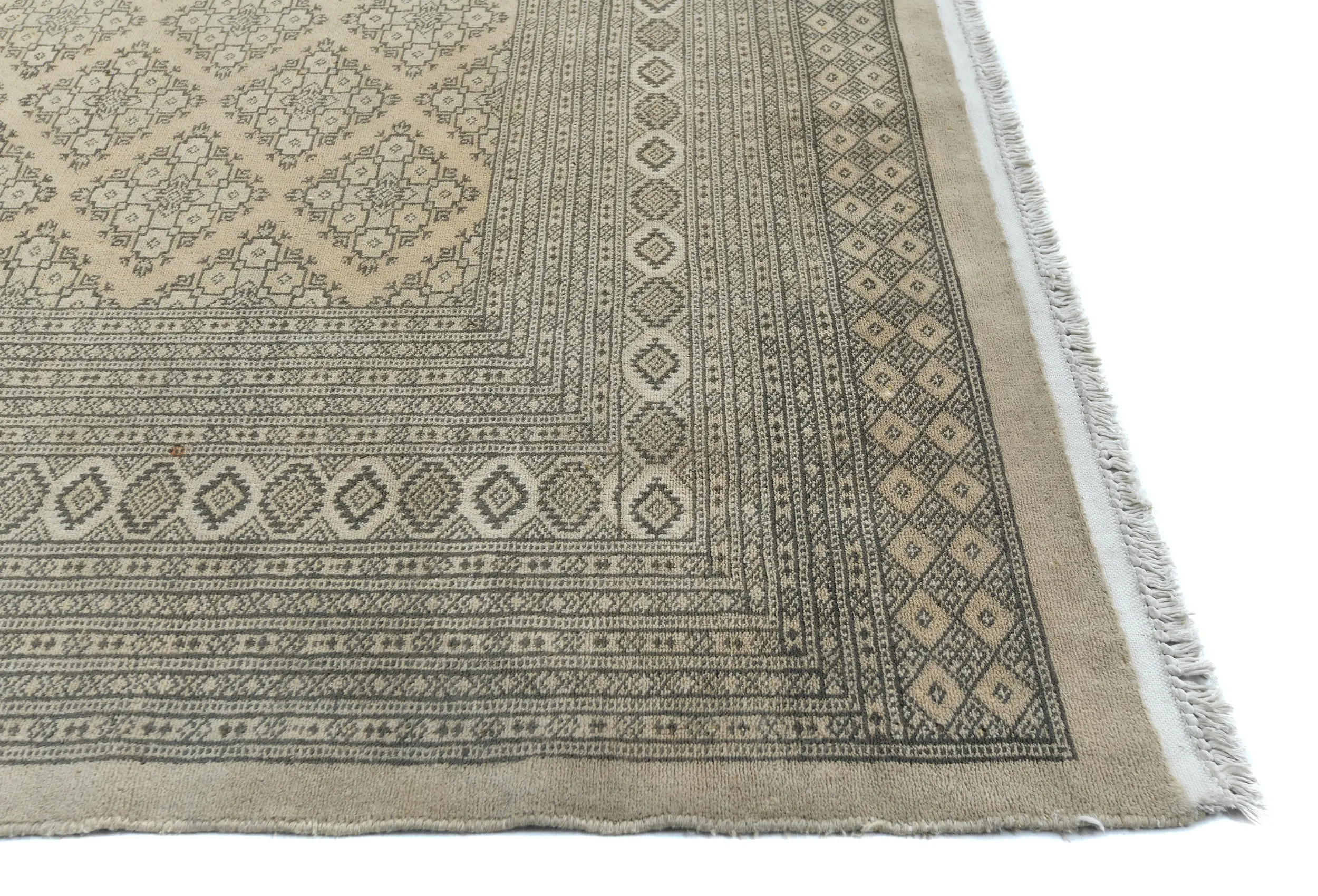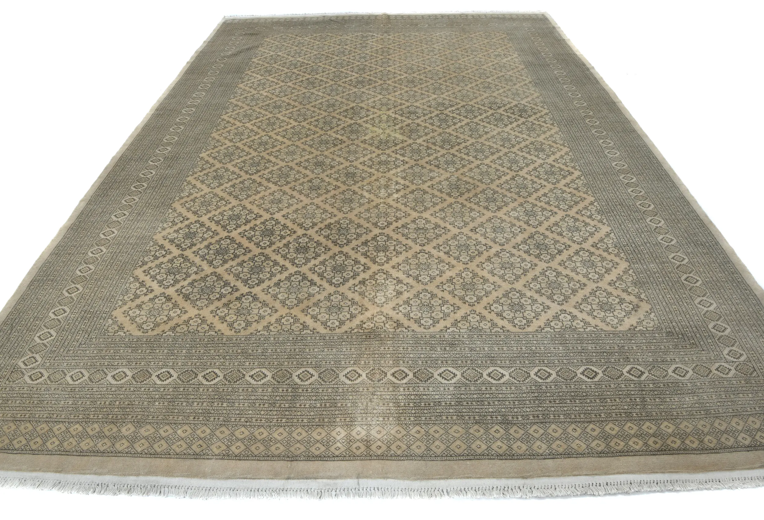 Handmade vintage 9X12 beige Oriental rug made with vegetable dyes (fine wool pile and cotton foundation), superior knot count, and alluring ancient designs. This Oriental rug never will go out of style and would be among your most valuable treasures.