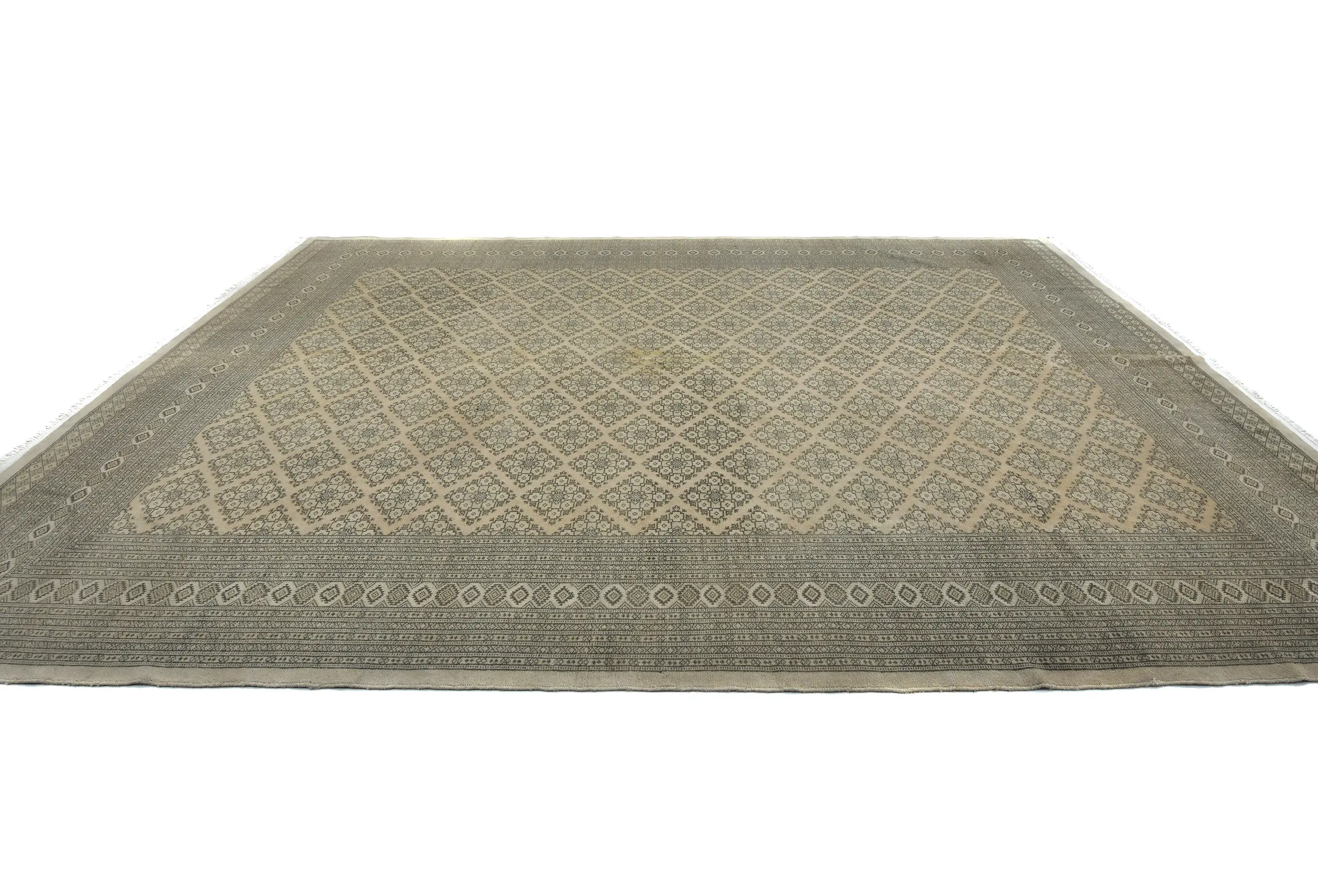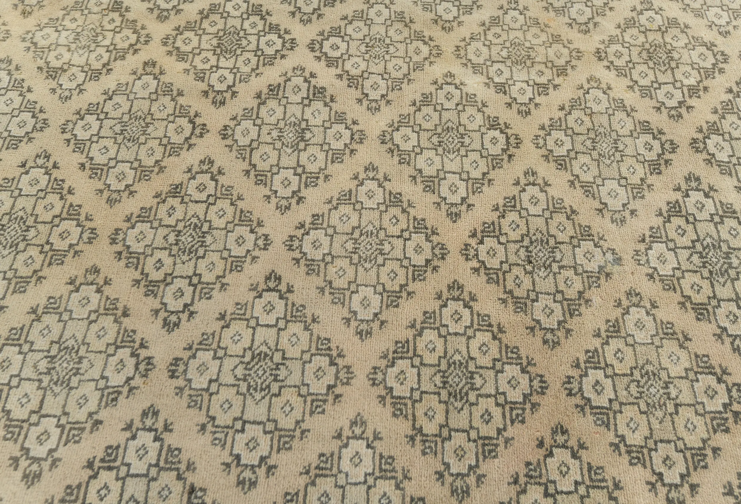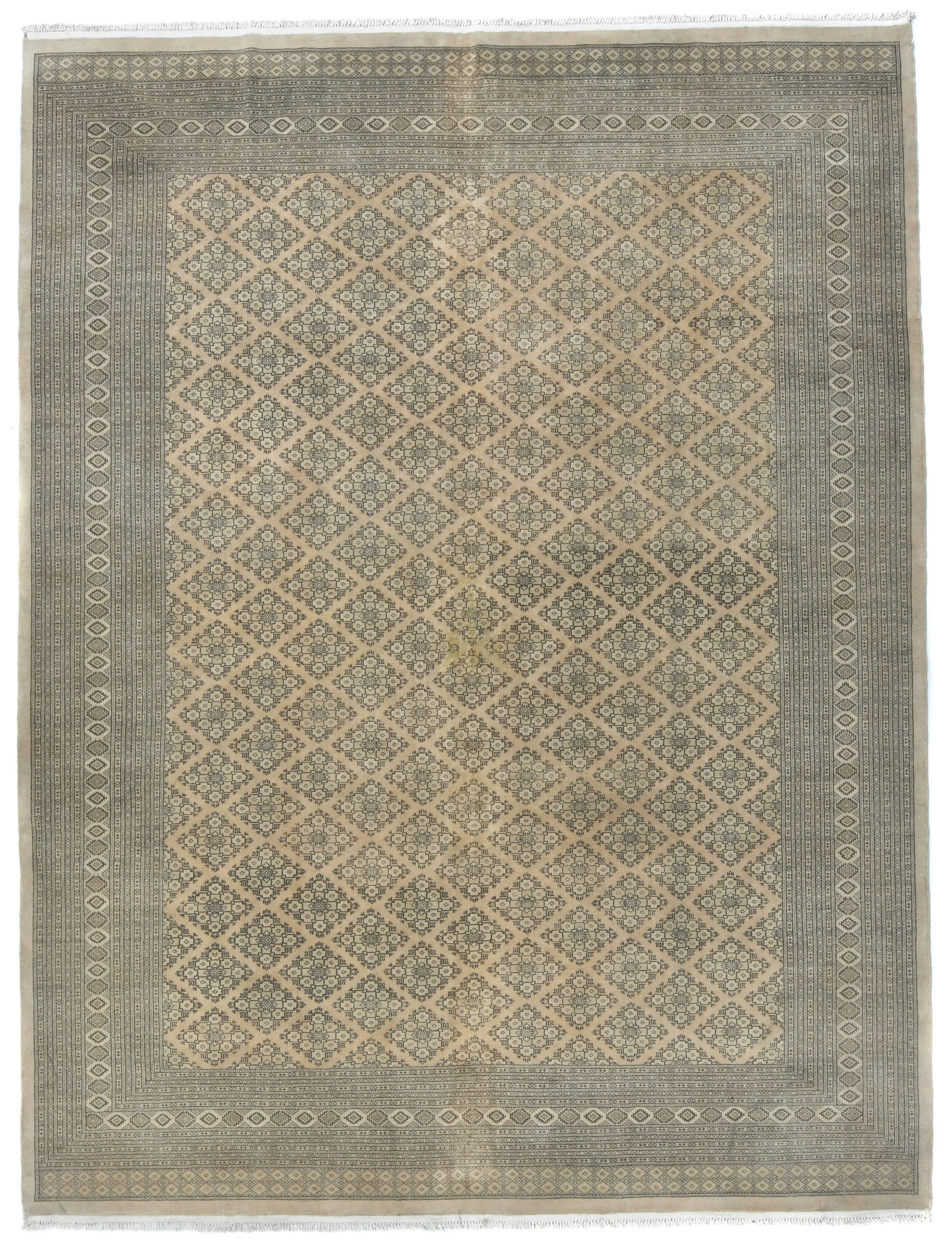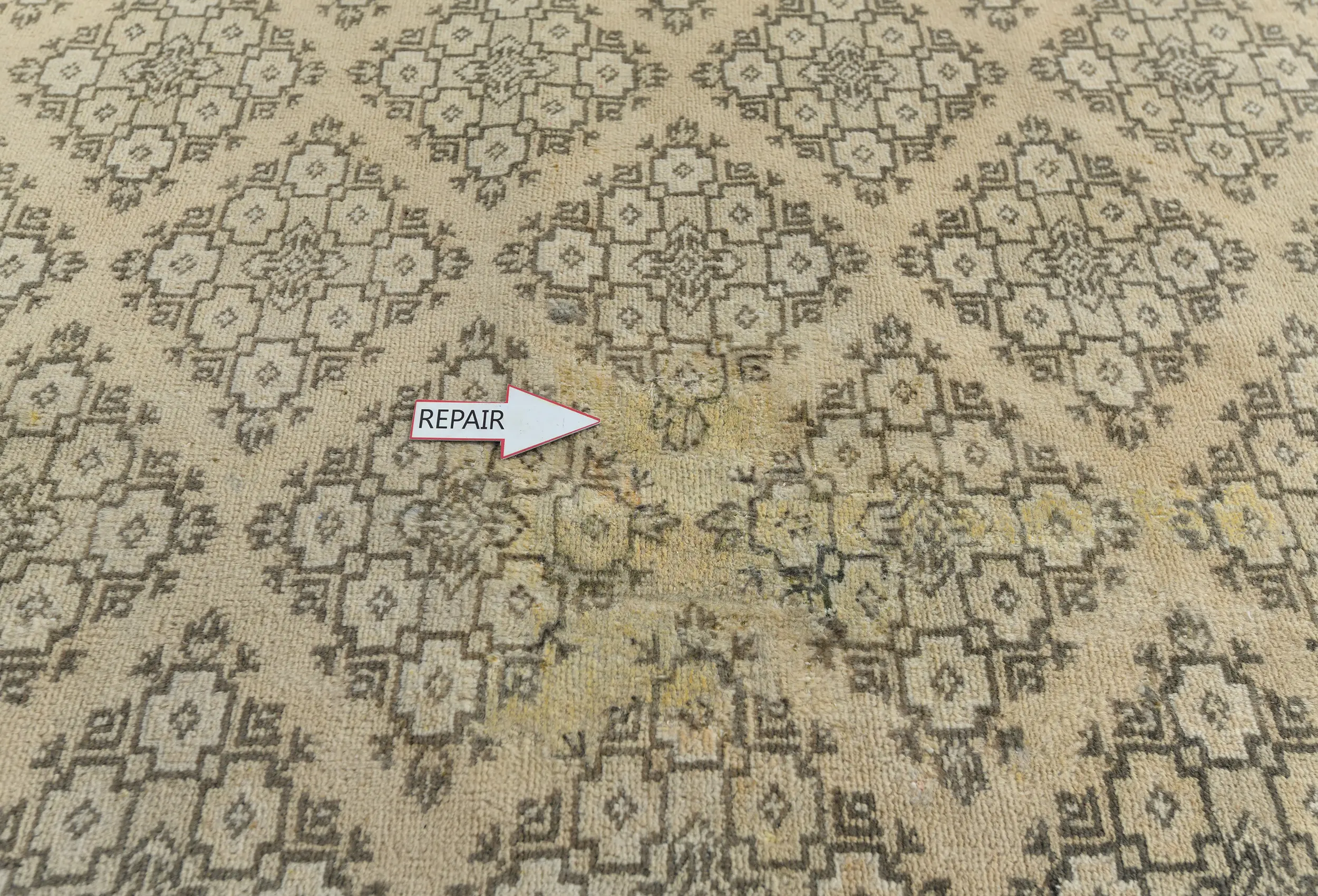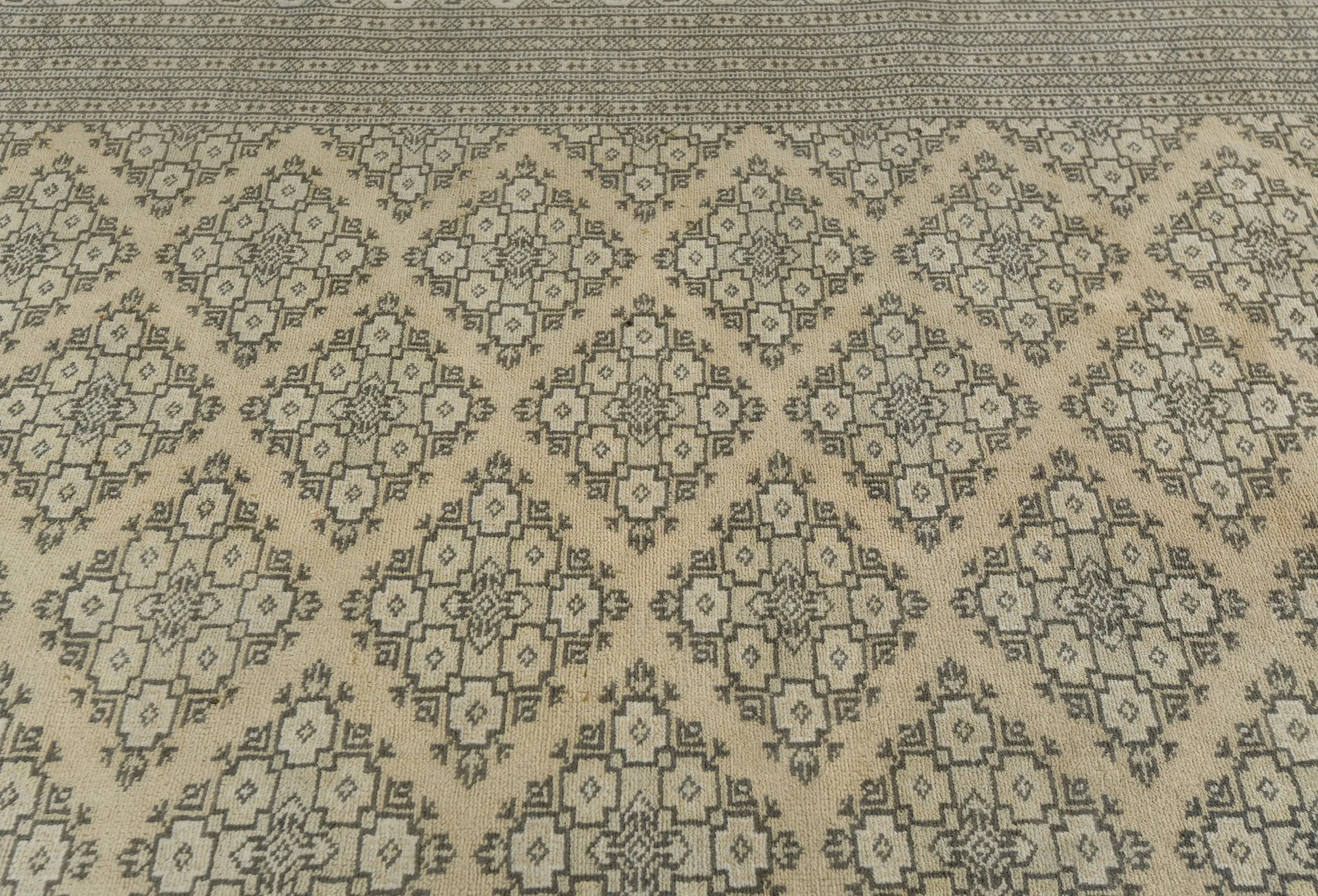 Handmade vintage 9X12 beige Oriental rug made with vegetable dyes (fine wool pile and cotton foundation), superior knot count, and alluring ancient designs. This Oriental rug never will go out of style and would be among your most valuable treasures.