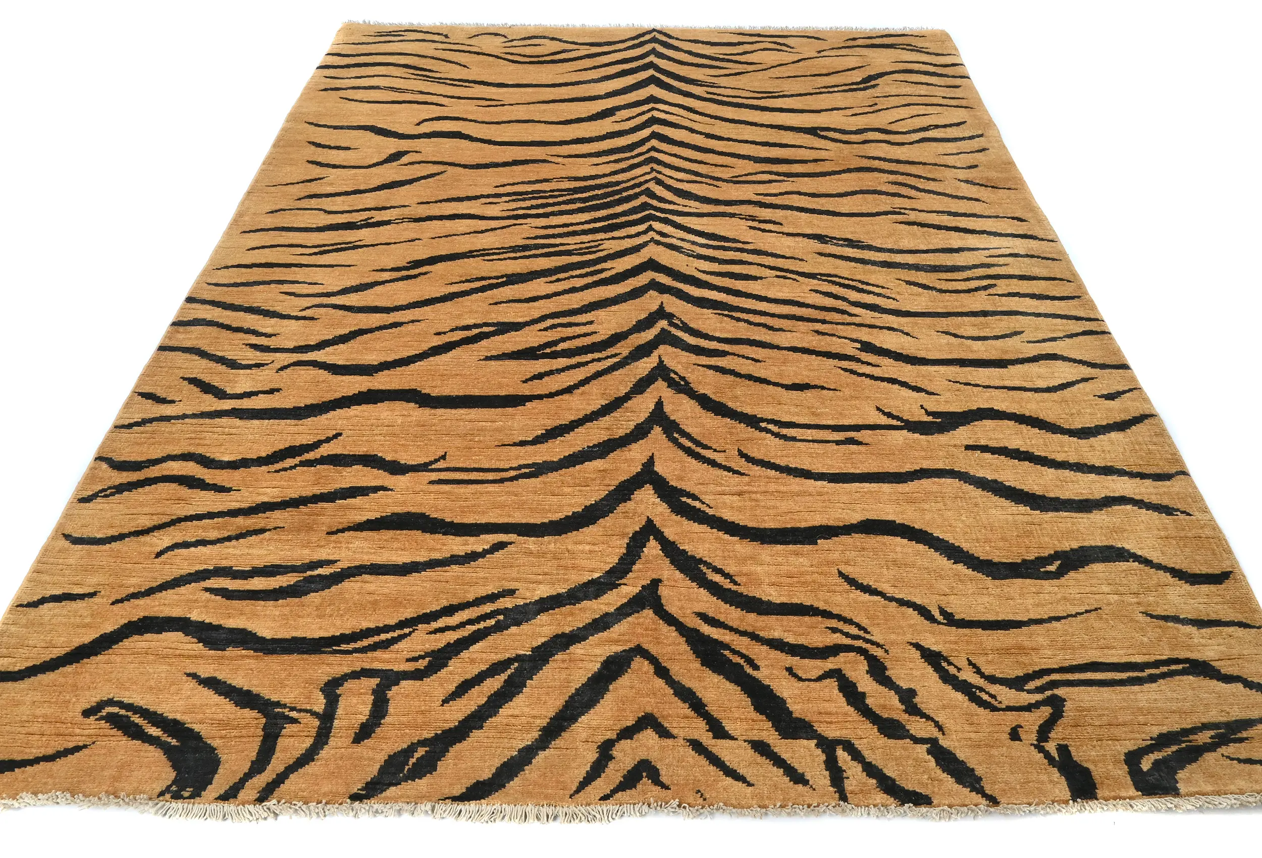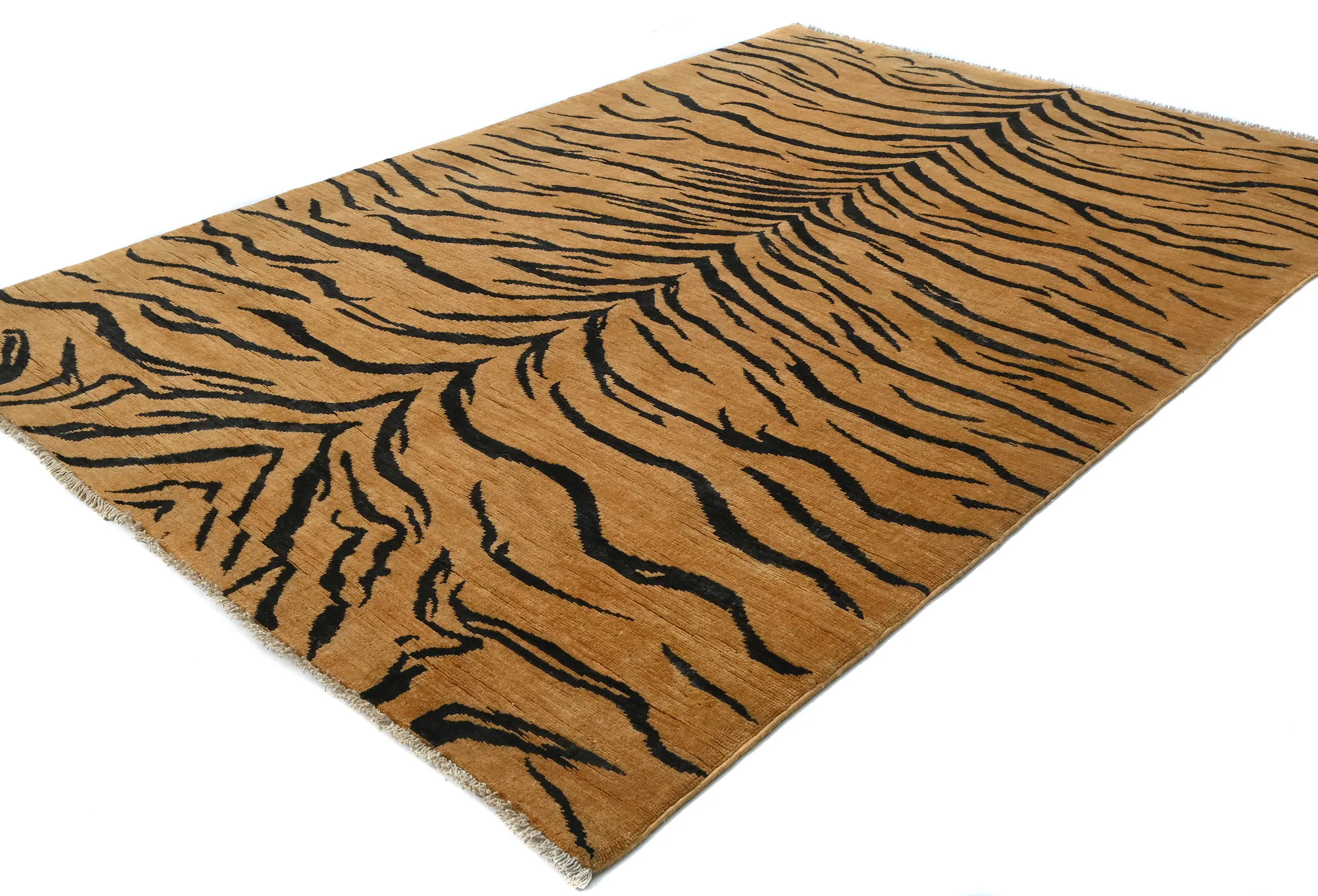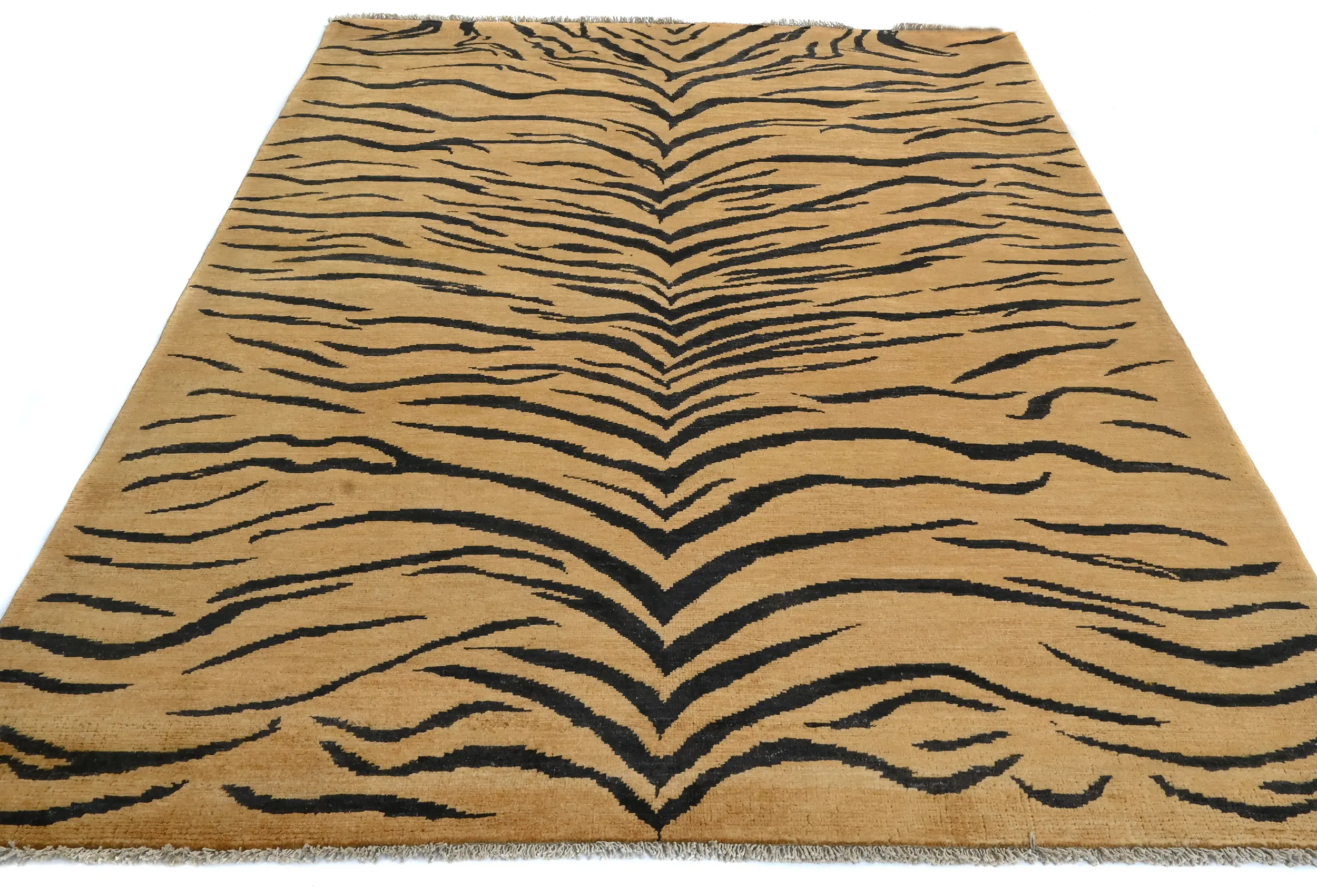 Beige & Black Abstract Modern 6X8 Kazak Pakistan Rug