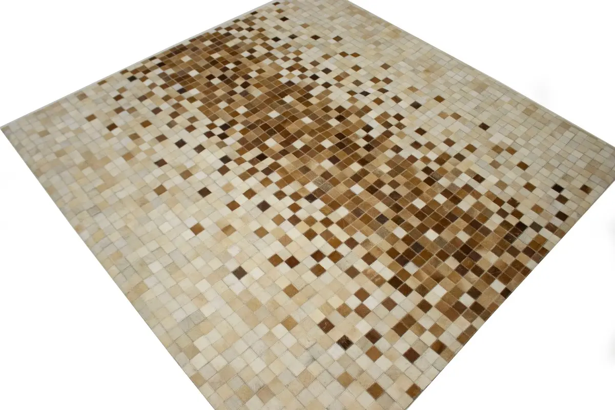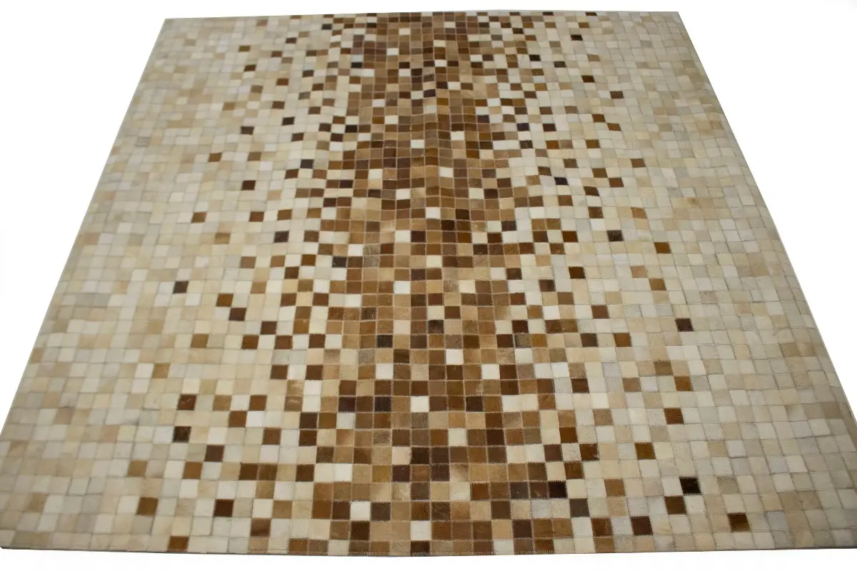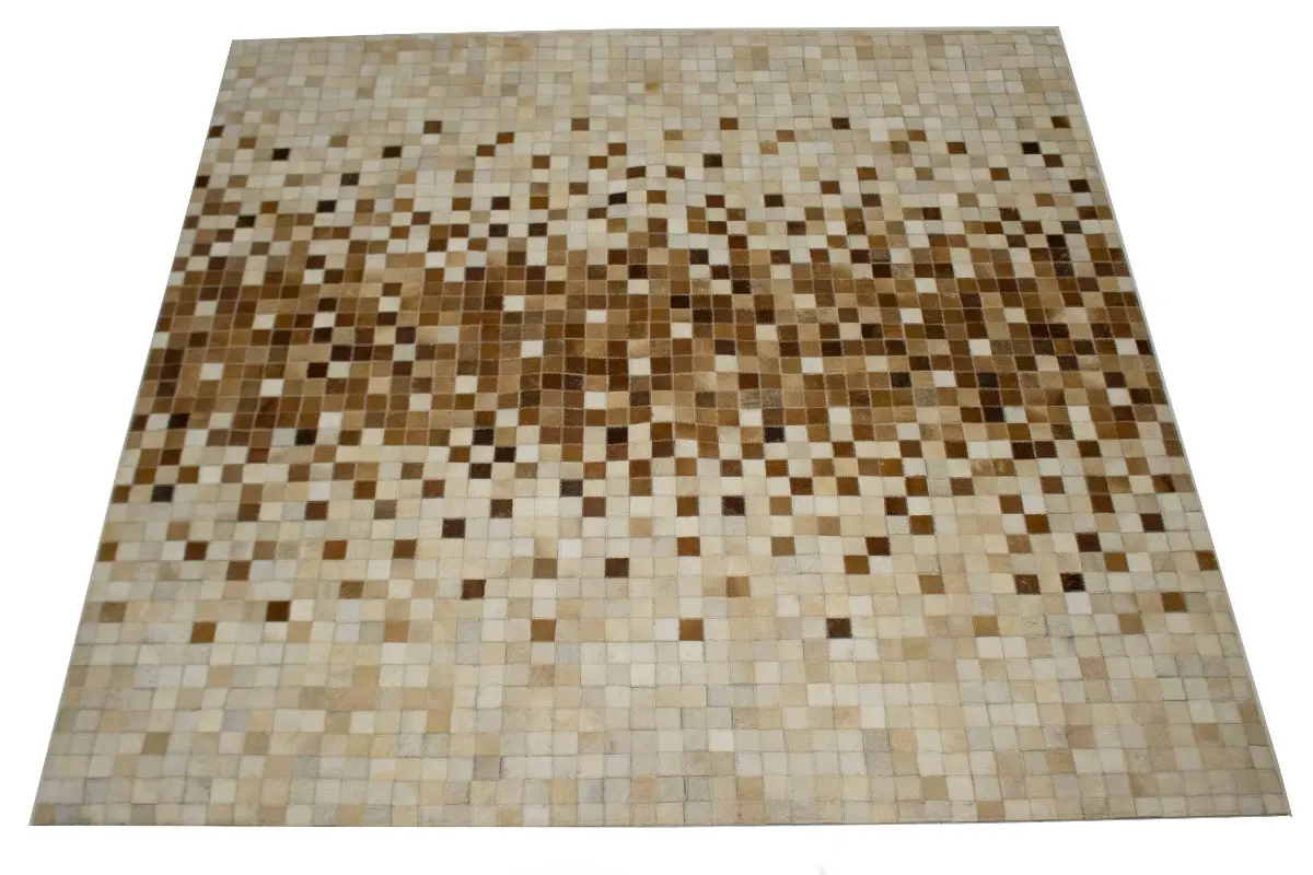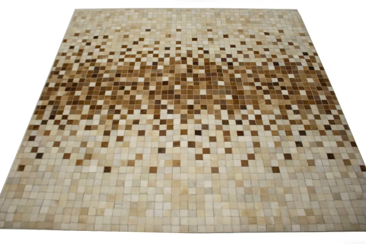 Beige Brown Cowhide 6X6 Modern Leather Square Rug
